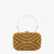 • Material: Hand-beaded faceted rondelle crystal exterior, micro rhinestone wave chain detail, slim gold-tone wire top handle, gold-tone push-lock clasp, smooth interior lining