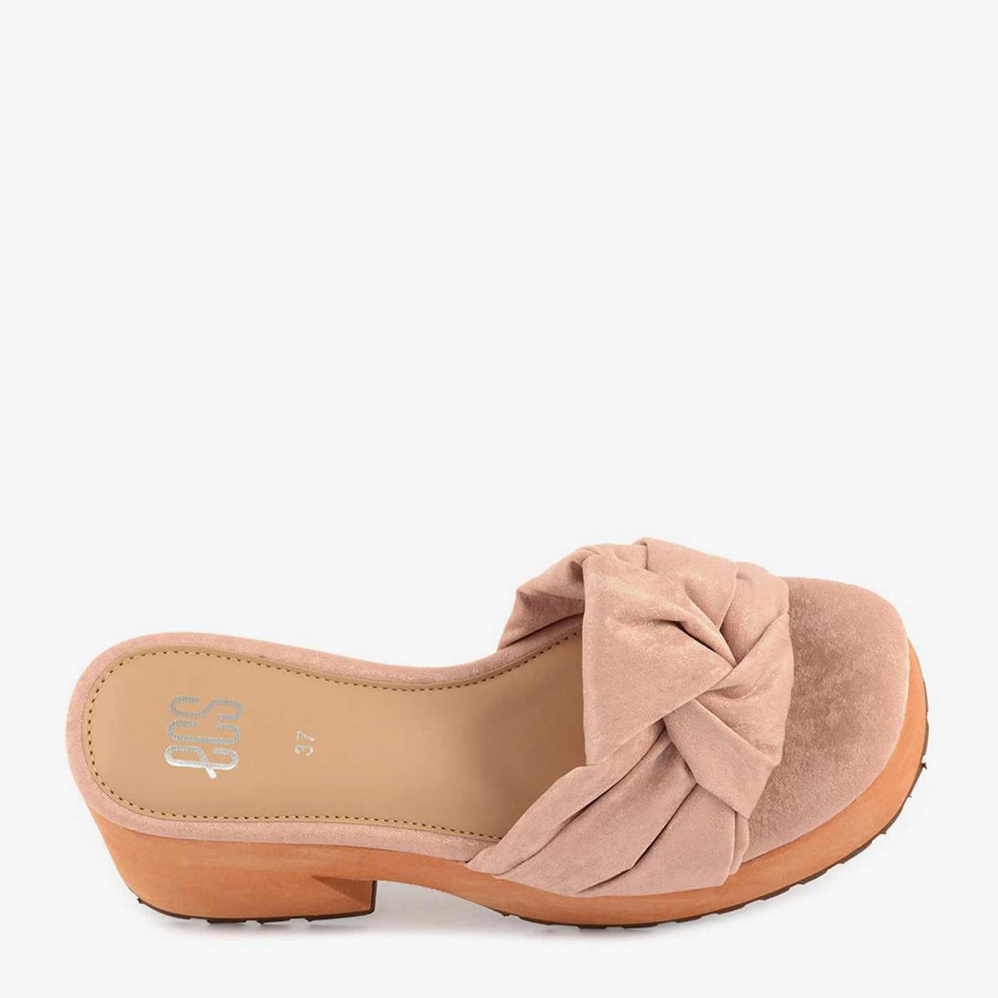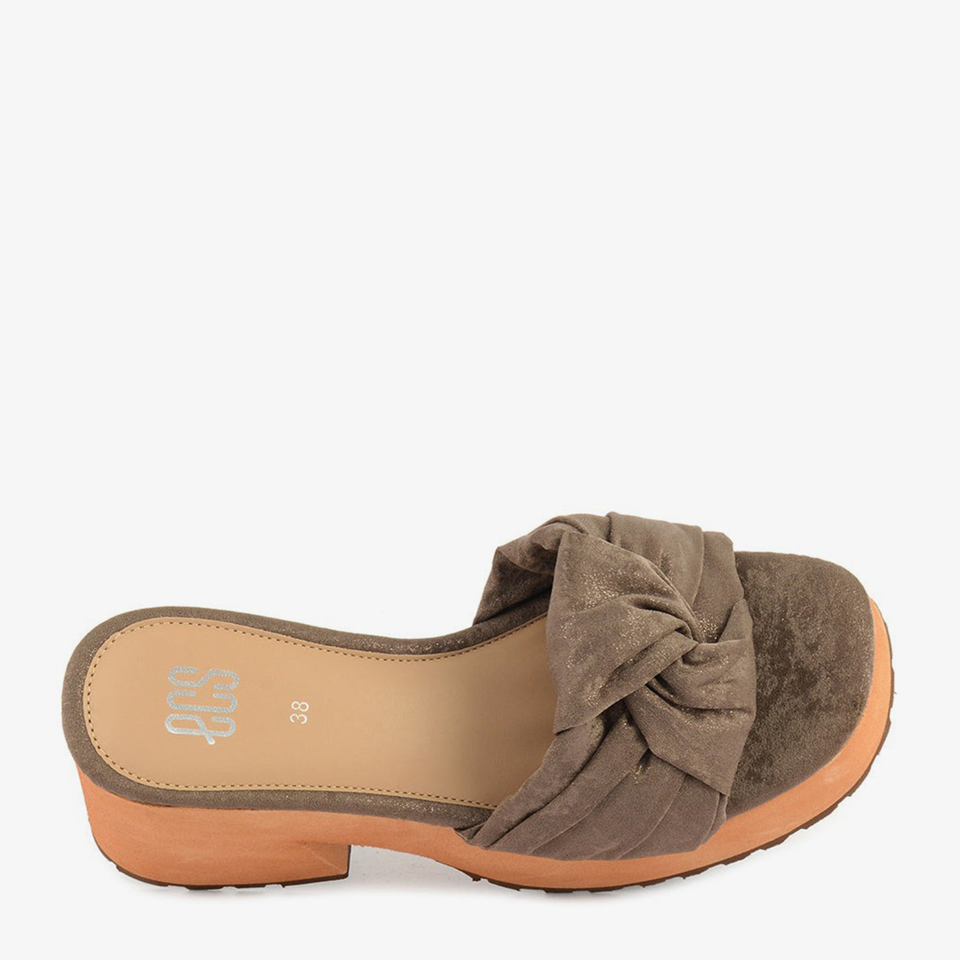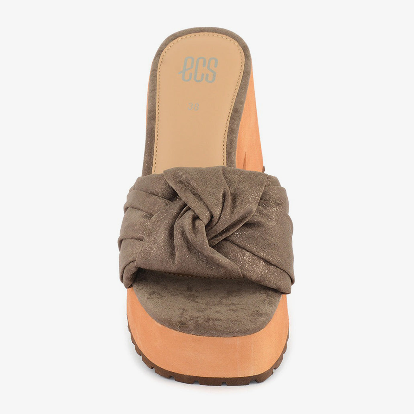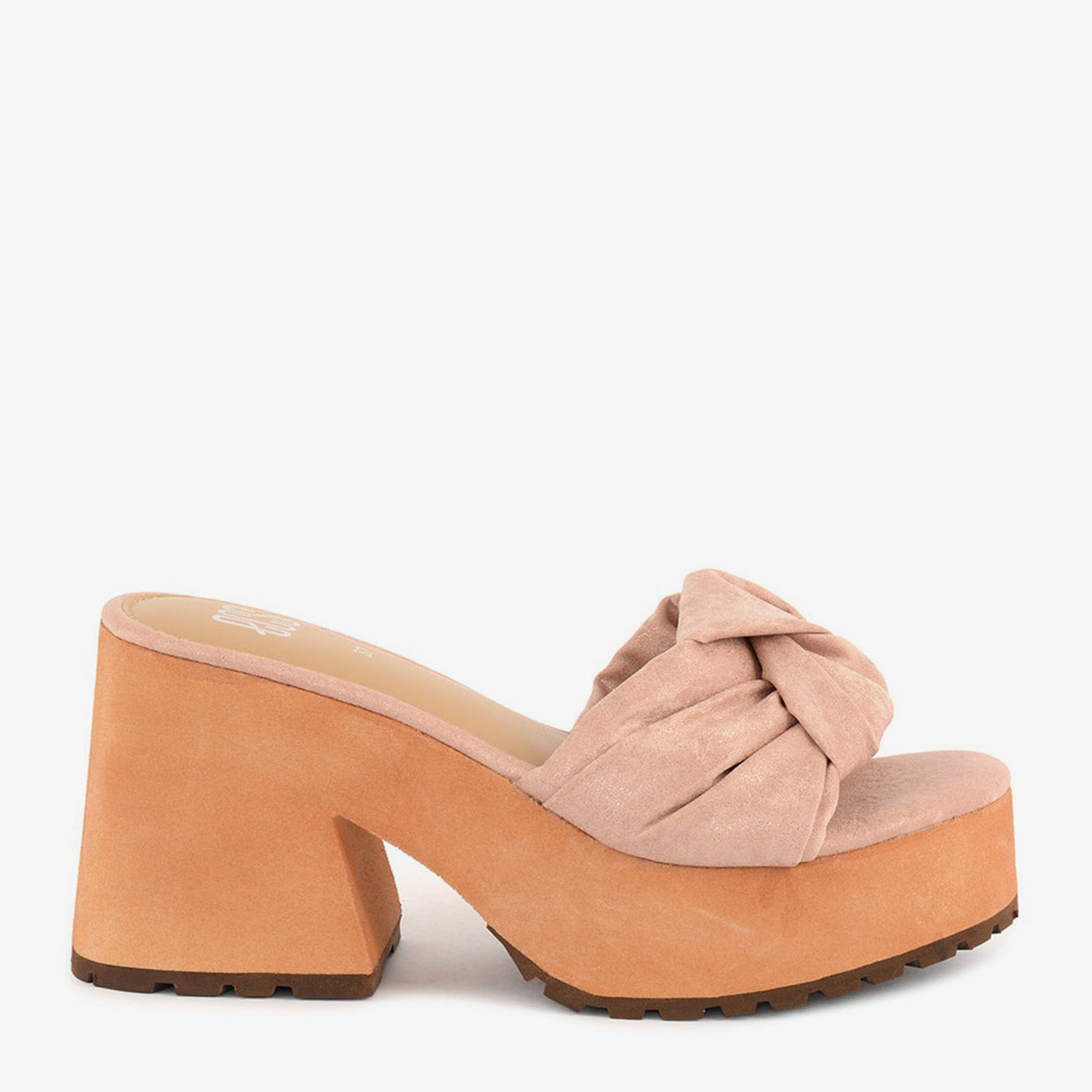 Designed for comfort, these slippers feature no specified upper or lining material. The 3-inch heel provides added height. Featuring a slip-on fastening for convenience. Clean with a damp cloth and store away from direct sunlight.