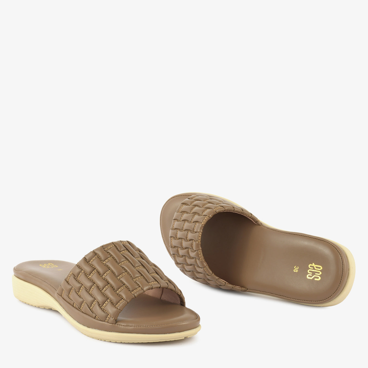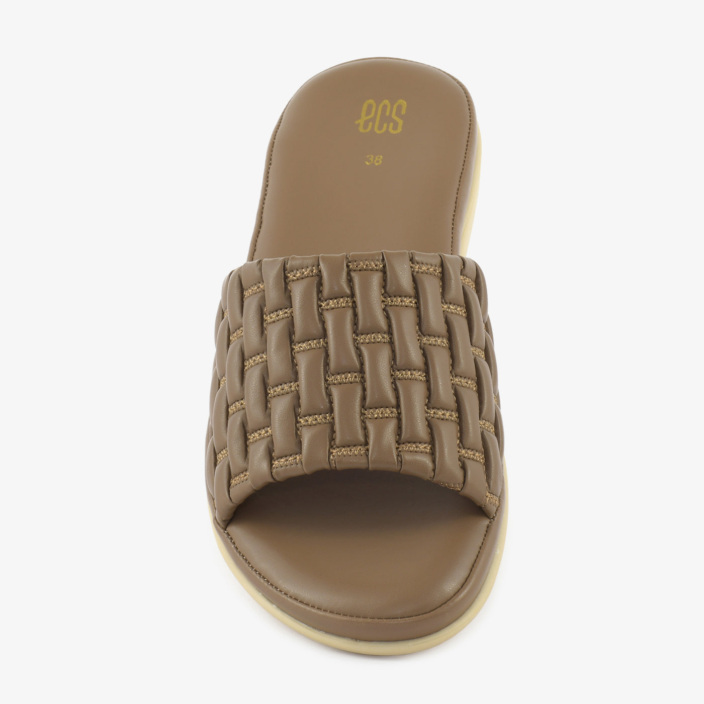 Step into relaxed style with these ECS round toe chappals. The wide strap features a comfortable woven design, perfect for your everyday ease in Lahore. The flat or low wedge sole provides comfortable support for navigating the city.