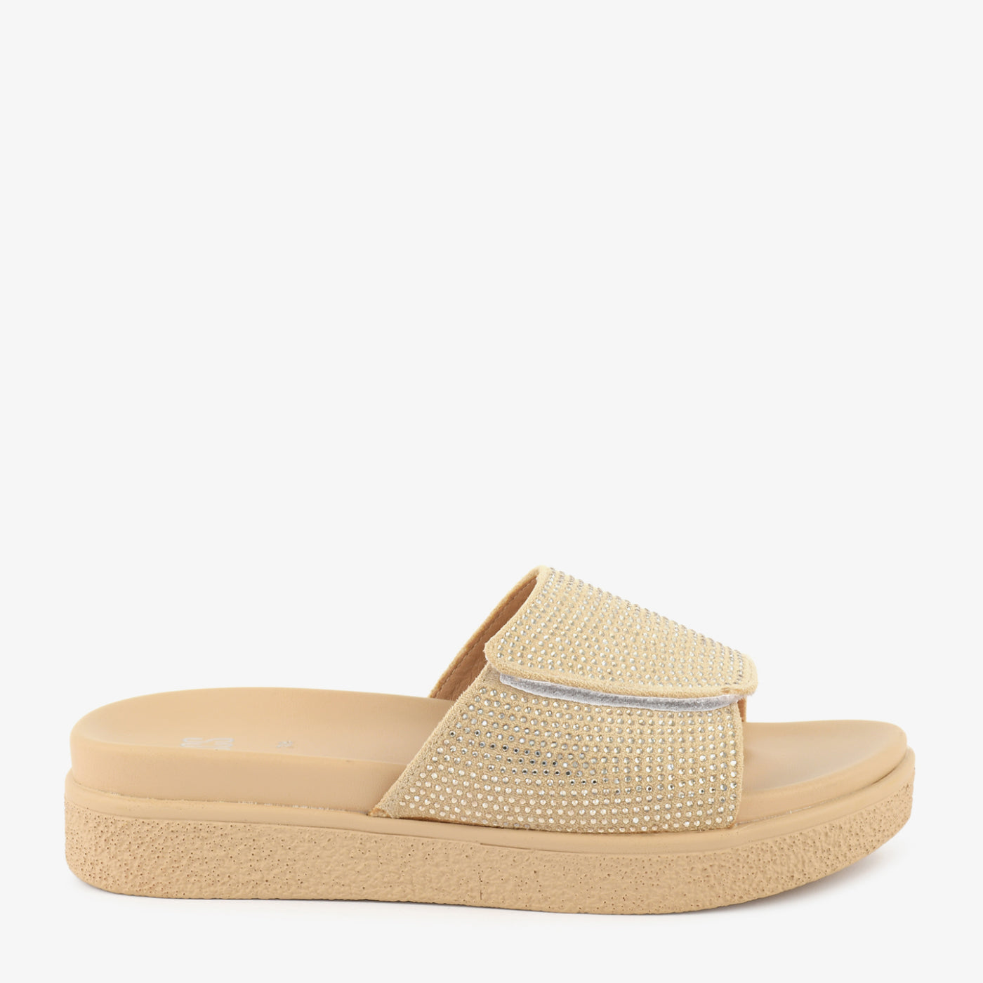 This stylish slipper features a broad, soft-textured upper with a refined finish that adds a subtle statement to everyday wear. The slip-on design ensures ease and comfort, while the slightly elevated base provides stable support for daily movement. Crafted for both style and practicality, it offers a comfortable footbed suitable for long hours of wear.