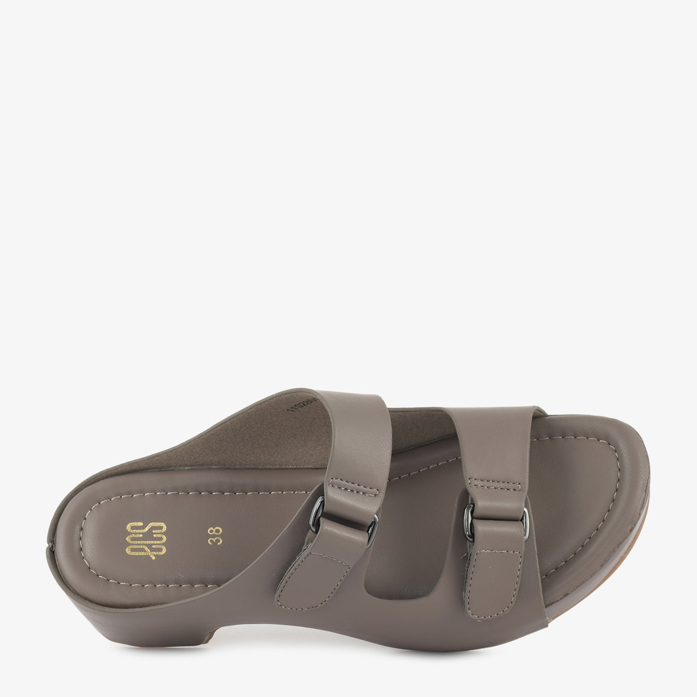 Step into effortless elegance with these smooth ivory slides. The double-strap design with subtle buckle accents offers a secure and stylish fit, elevated by a comfortable block heel.