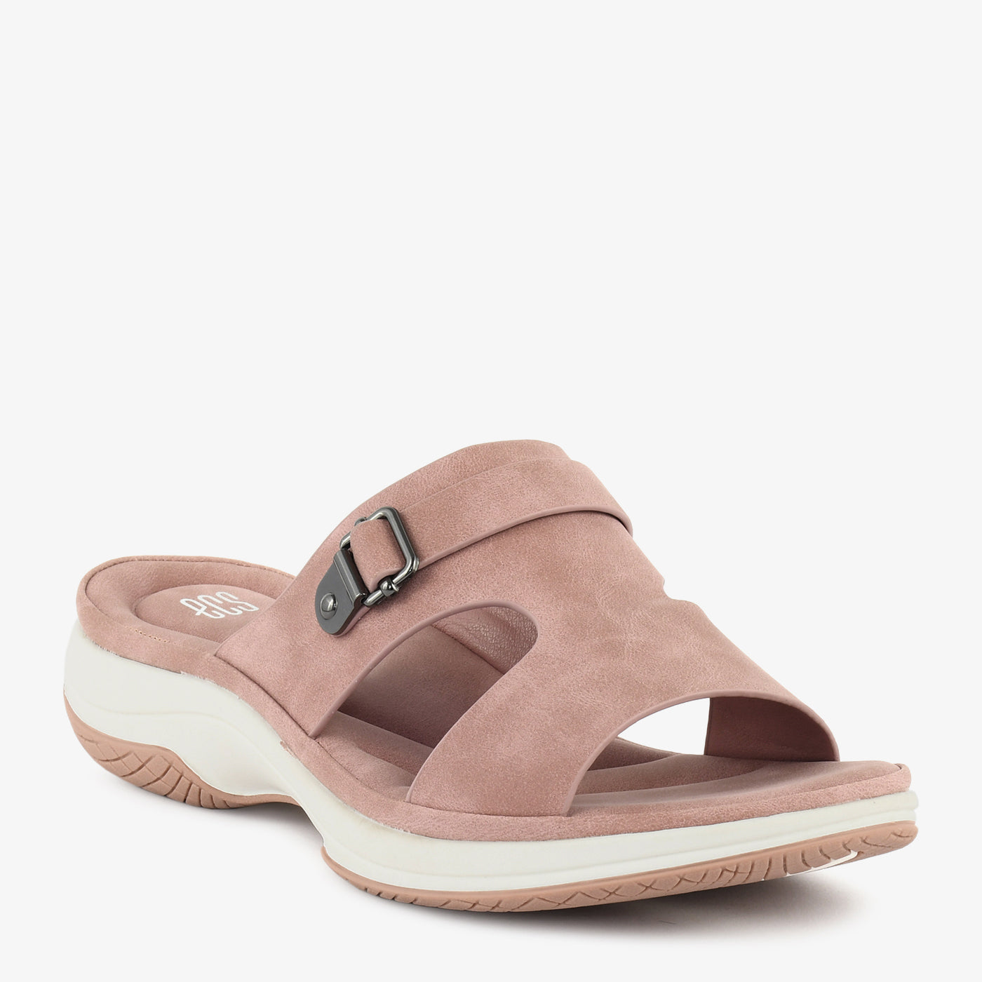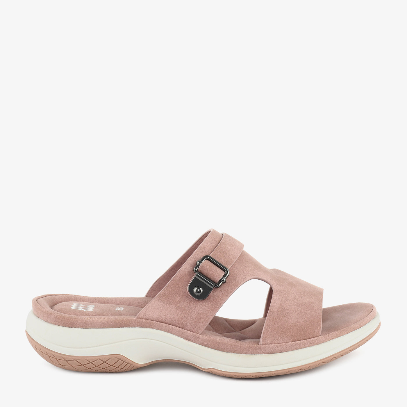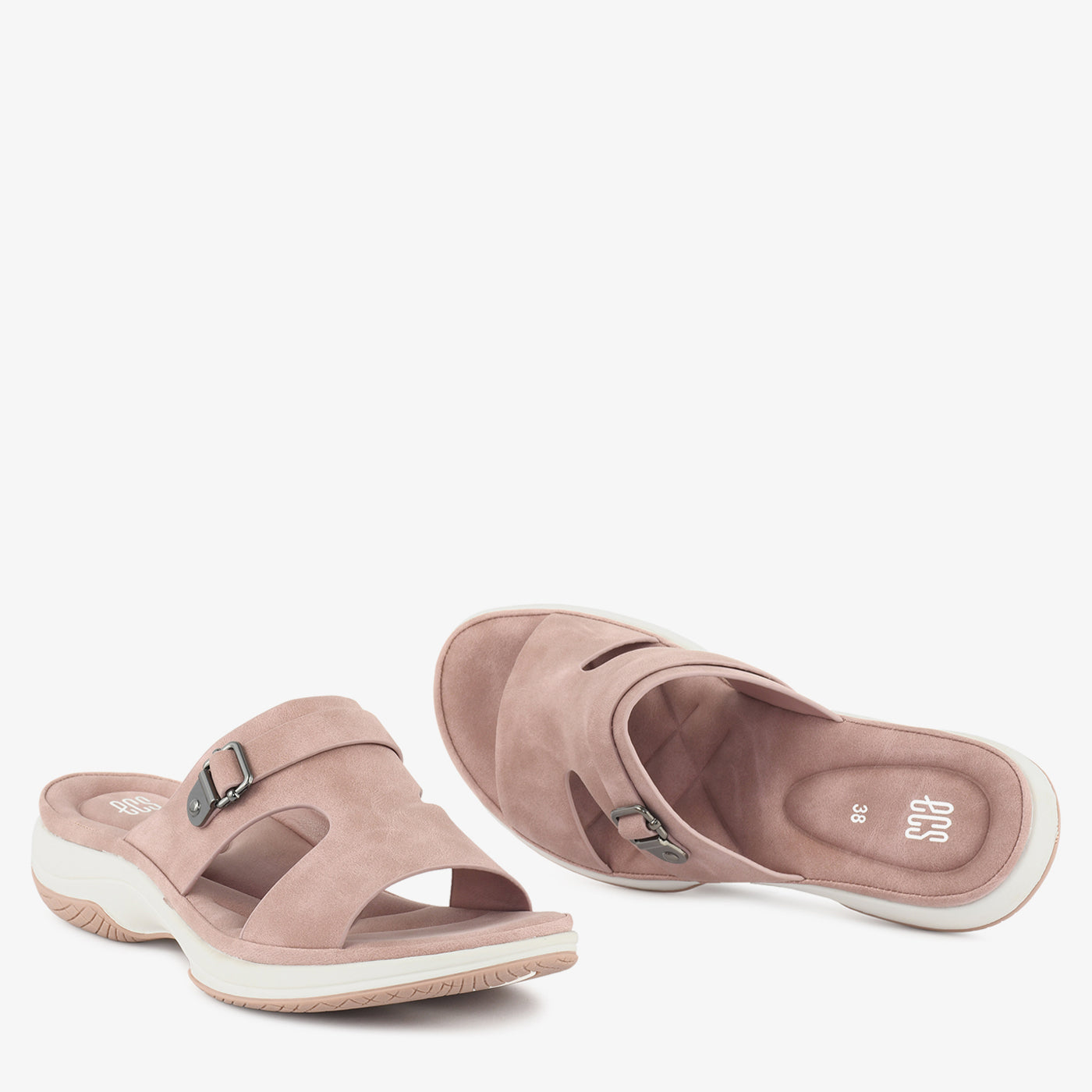 Built for everyday ease, this slipper features a generously cushioned footbed with a lightweight dual-tone sole that provides comfort and support throughout the day. The wide cut-out upper strap is fitted with a sleek metallic buckle accent, adding a clean and functional touch to the overall design. The open construction ensures a secure and well-ventilated fit, while the soft inner lining supports easy movement from morning to evening. Practical and well-crafted, this slipper is suitable for daily use, casual outings, and relaxed occasions, making it a dependable and refined addition to any footwear collection.
