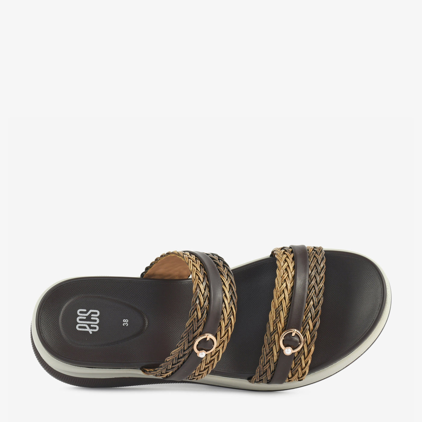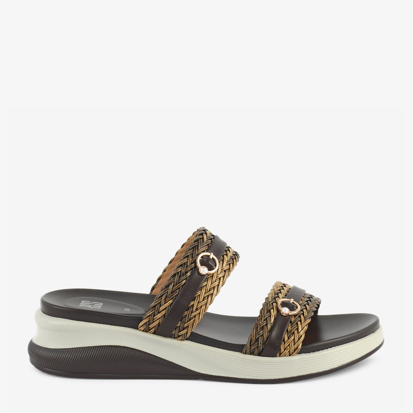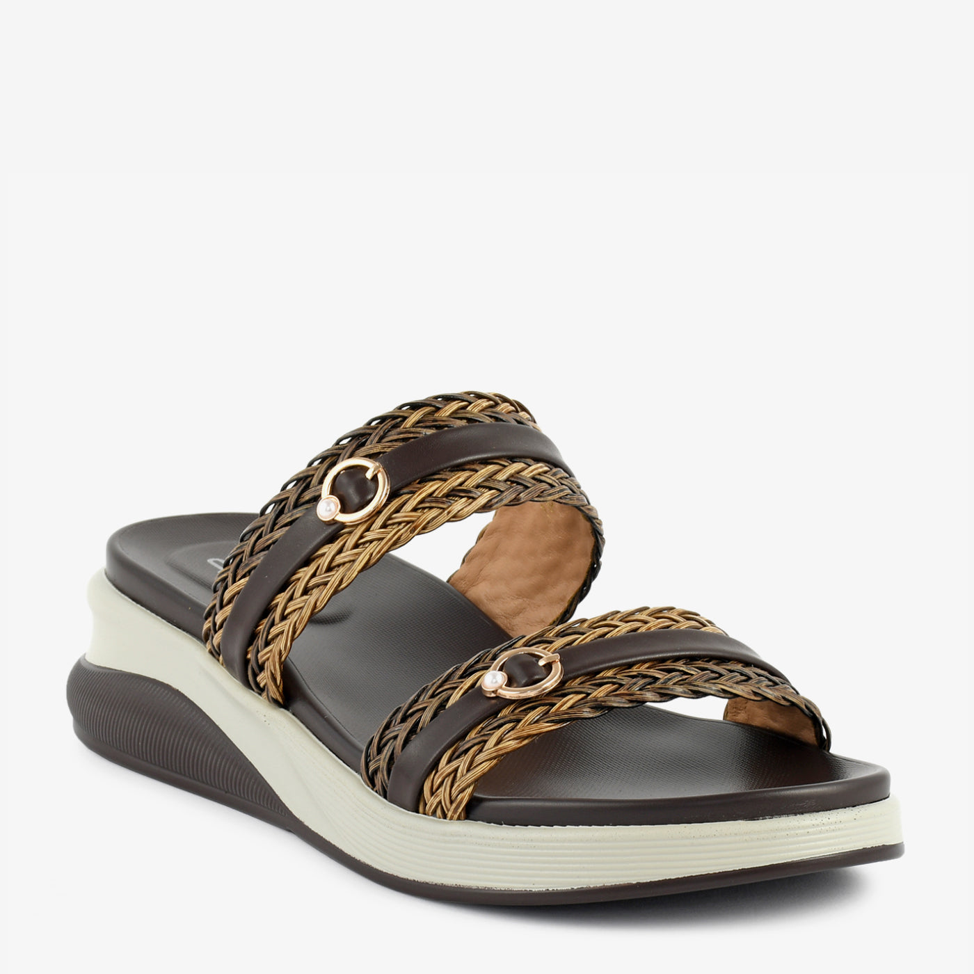 This slipper showcases a stylish blend of texture and everyday comfort. Designed with beautifully woven dual straps, it adds depth and character to the overall silhouette. Subtle metallic ring accents enhance the refined appeal without overpowering the design. The elevated platform-style sole provides gentle height while ensuring steady support throughout the day. A cushioned footbed delivers lasting comfort, making it ideal for extended wear. Its open structure allows ease of movement while maintaining a polished finish. Perfect for casual outings, travel, or relaxed gatherings, it balances fashion with practicality.