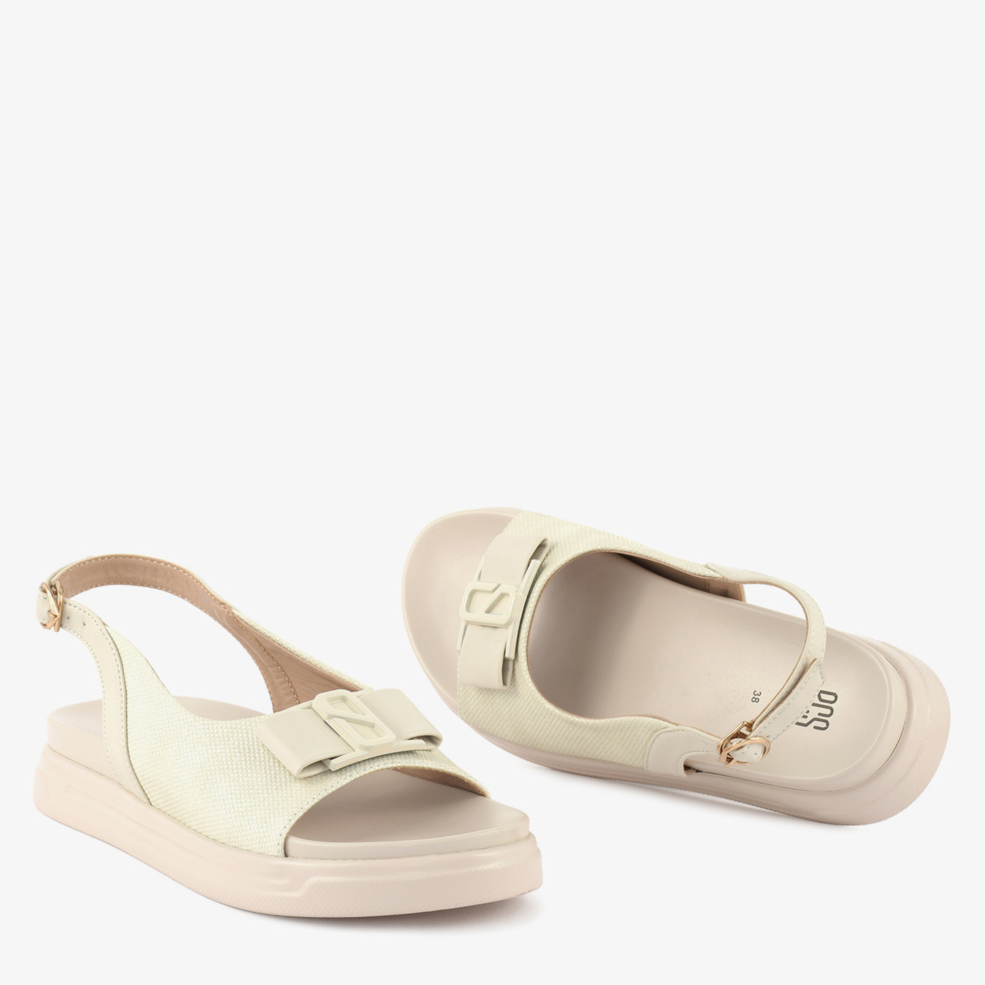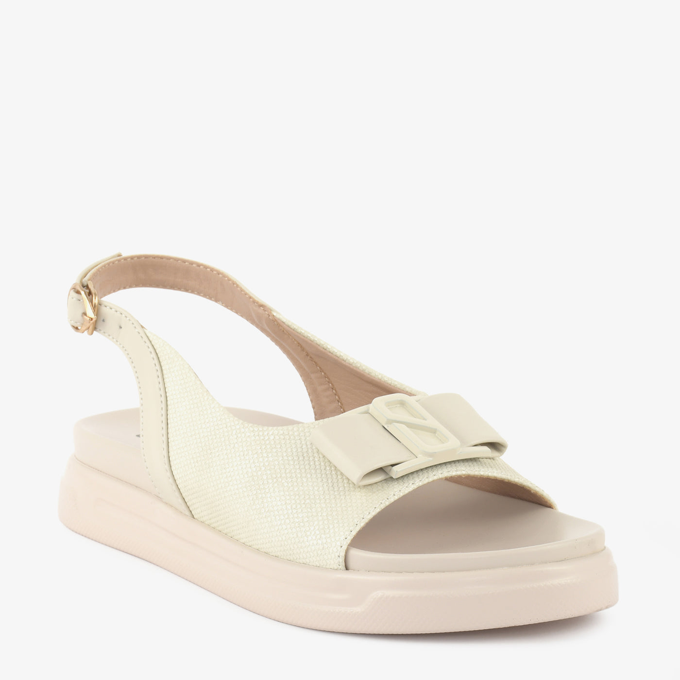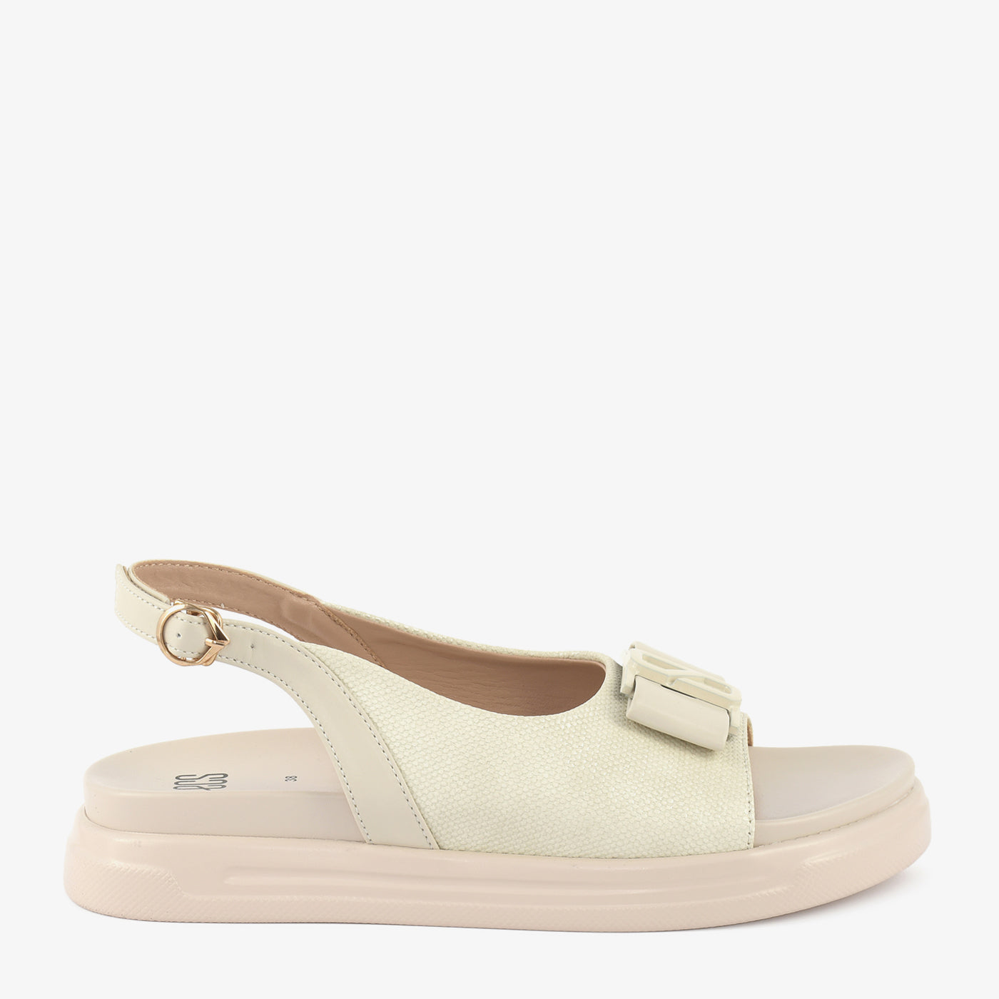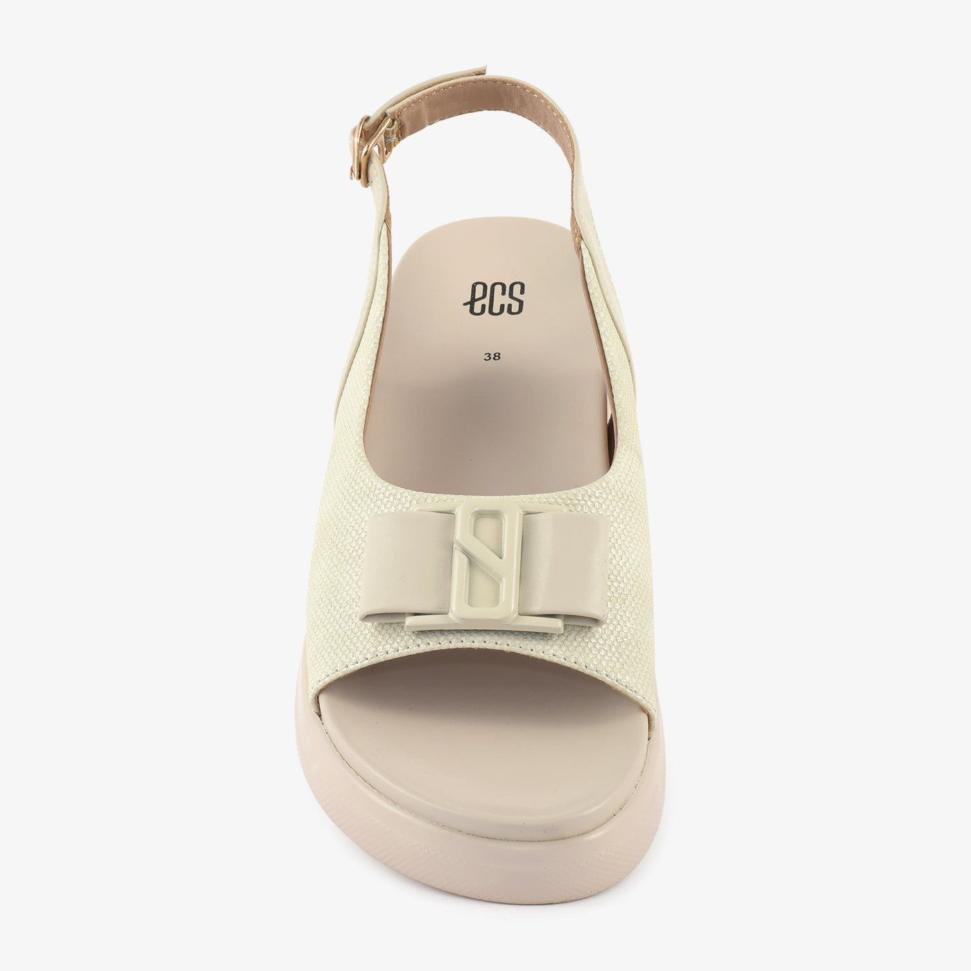 Step into charming style with these beige platform sandals. The textured strap is adorned with a sweet bow detail, adding a touch of feminine elegance to your everyday look...