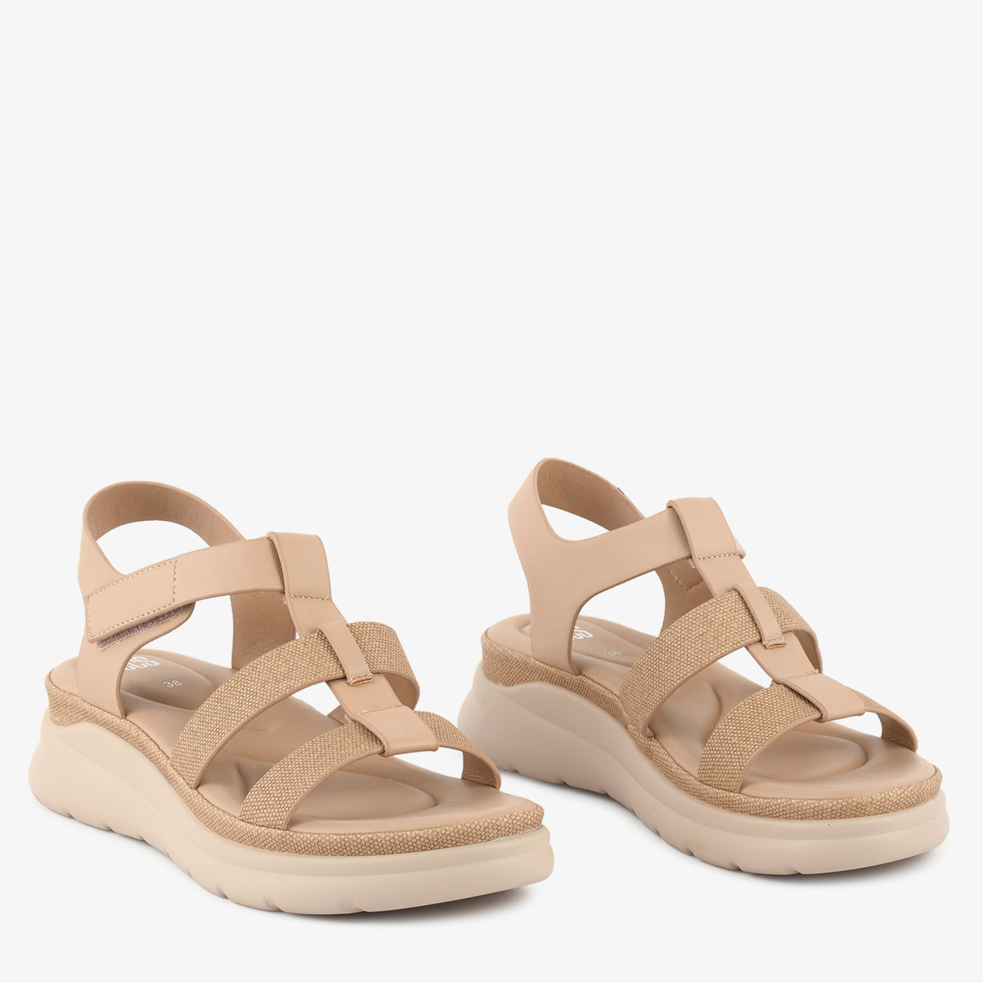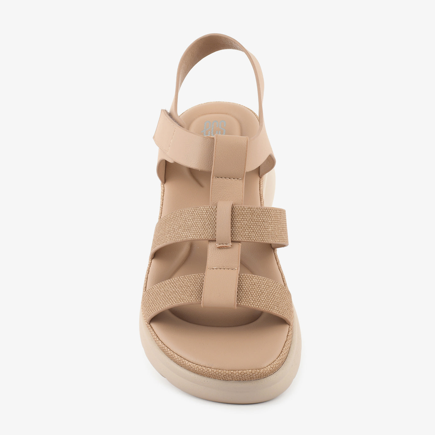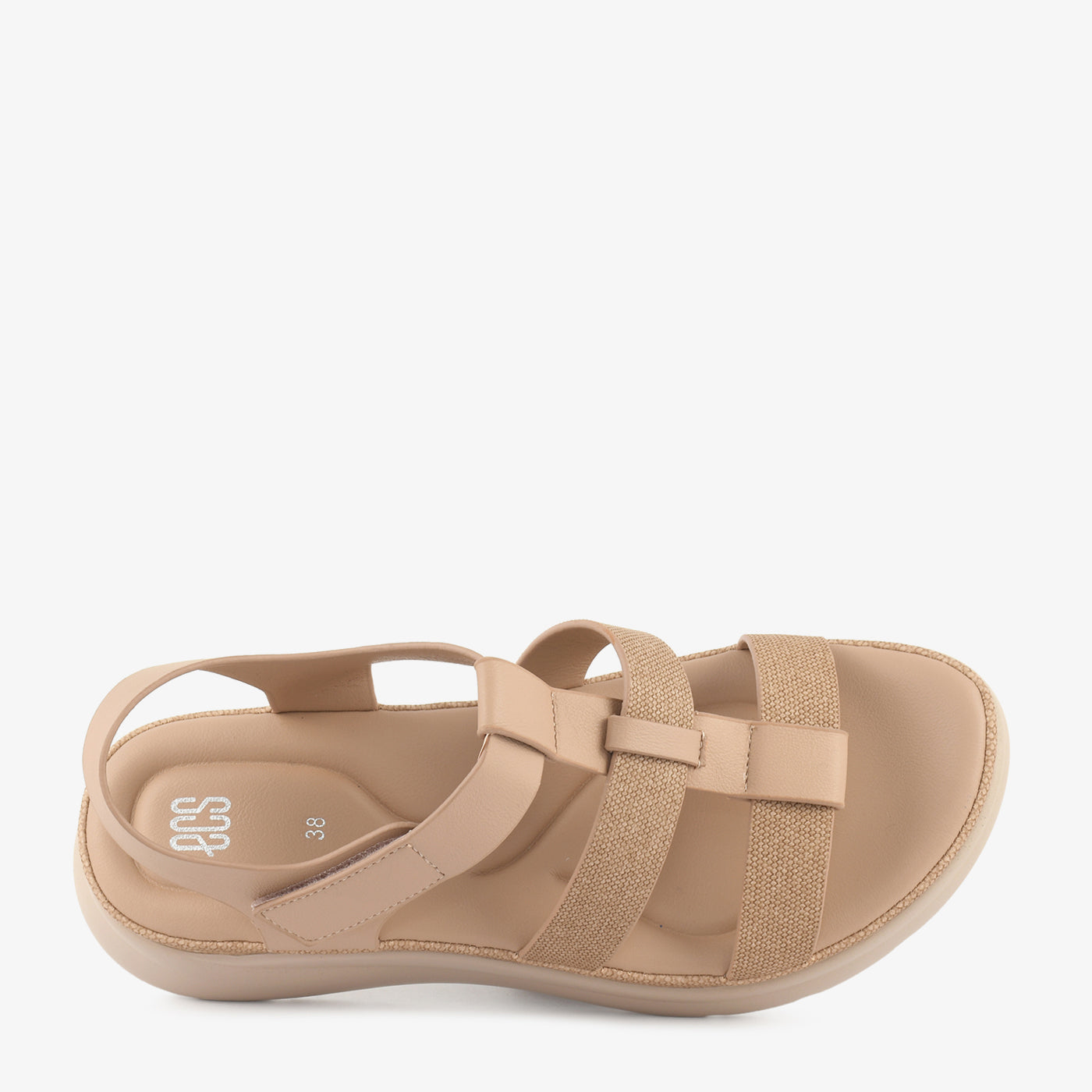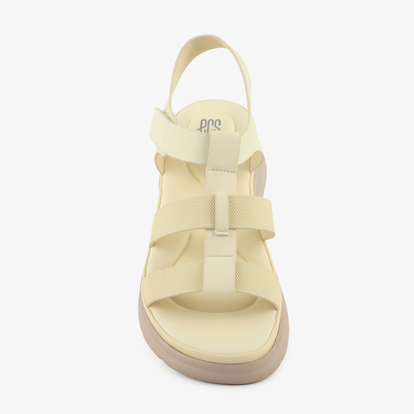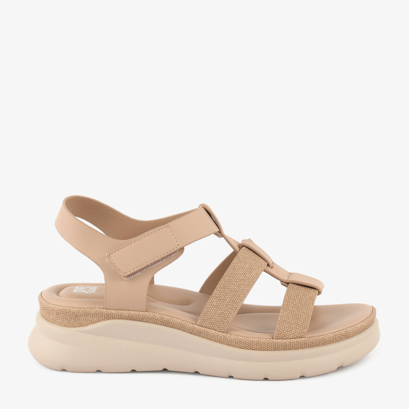 This modern sandal is crafted with a cushioned elevated sole that delivers superior comfort and everyday support. The soft cross-strap design gently holds the foot in place, while the adjustable back strap ensures a secure and personalized fit. A padded footbed reduces pressure and enhances ease during long hours of wear. The lightweight platform sole adds subtle height while maintaining balance and stability. Designed for daily use, this sandal blends relaxed style with functional comfort.