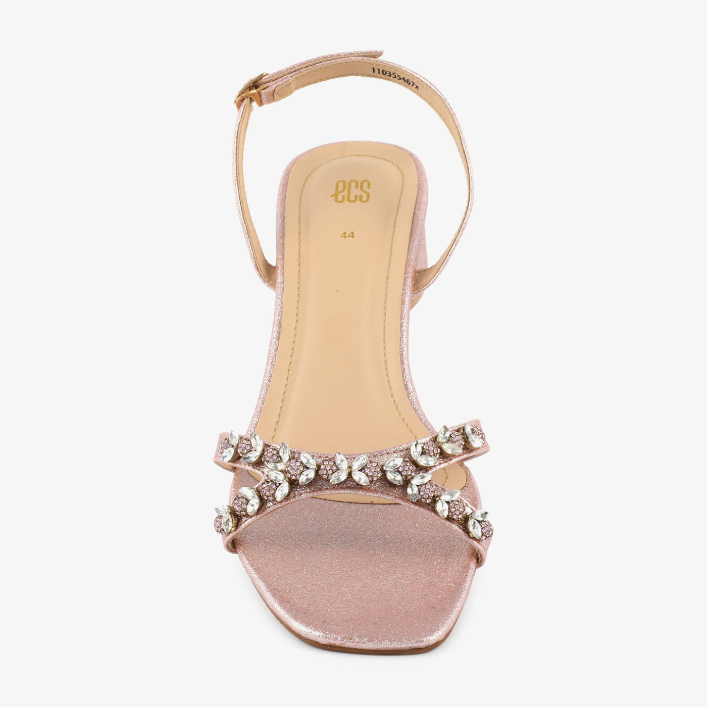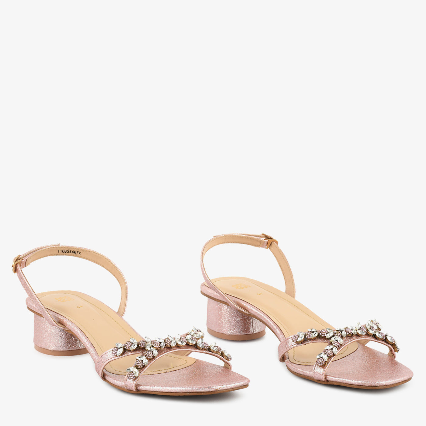 Designed with delicate stone embellishments, this stylish sandal brings refined elegance to your footwear collection. The cushioned insole provides lasting comfort for extended wear. Its secure ankle strap ensures stability and a customized fit. The balanced block heel offers gentle elevation while maintaining easy movement. Lightweight construction allows effortless walking throughout the day. Fine finishing details enhance durability and premium appeal. The slip-on design makes it convenient for quick wear. Perfect for festive occasions, parties, and special gatherings.