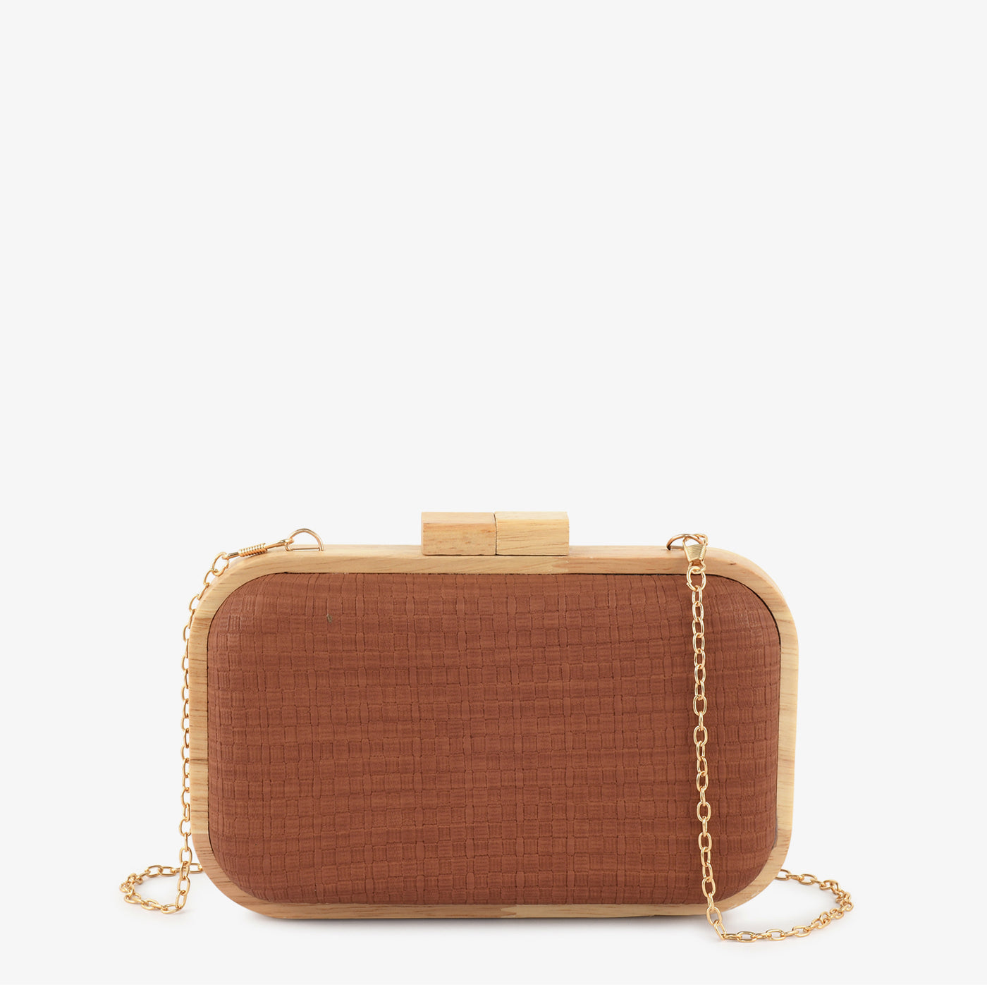 This elegant clutch features a refined textured finish that adds a natural and sophisticated touch to your festive and evening looks. The structured rectangular design offers a sleek silhouette, while the secure clasp closure keeps your essentials safe. Designed with a compact yet spacious interior, it comfortably holds your phone, cards, and small accessories. A detachable chain strap allows versatile styling as a handheld or shoulder carry. Lightweight and easy to use, it ensures comfort throughout long events. Perfect for weddings, parties, and formal gatherings, it blends classic charm with modern elegance.