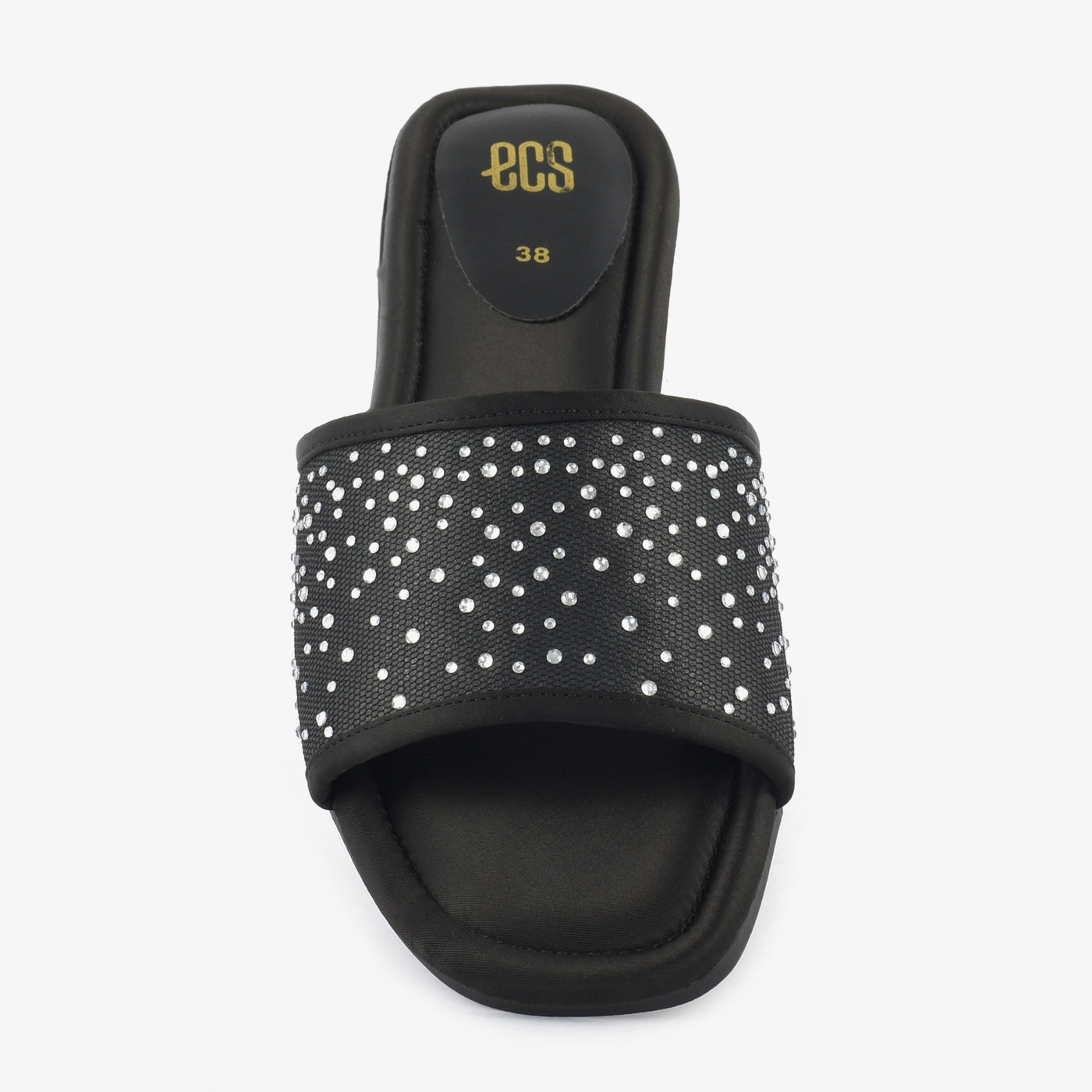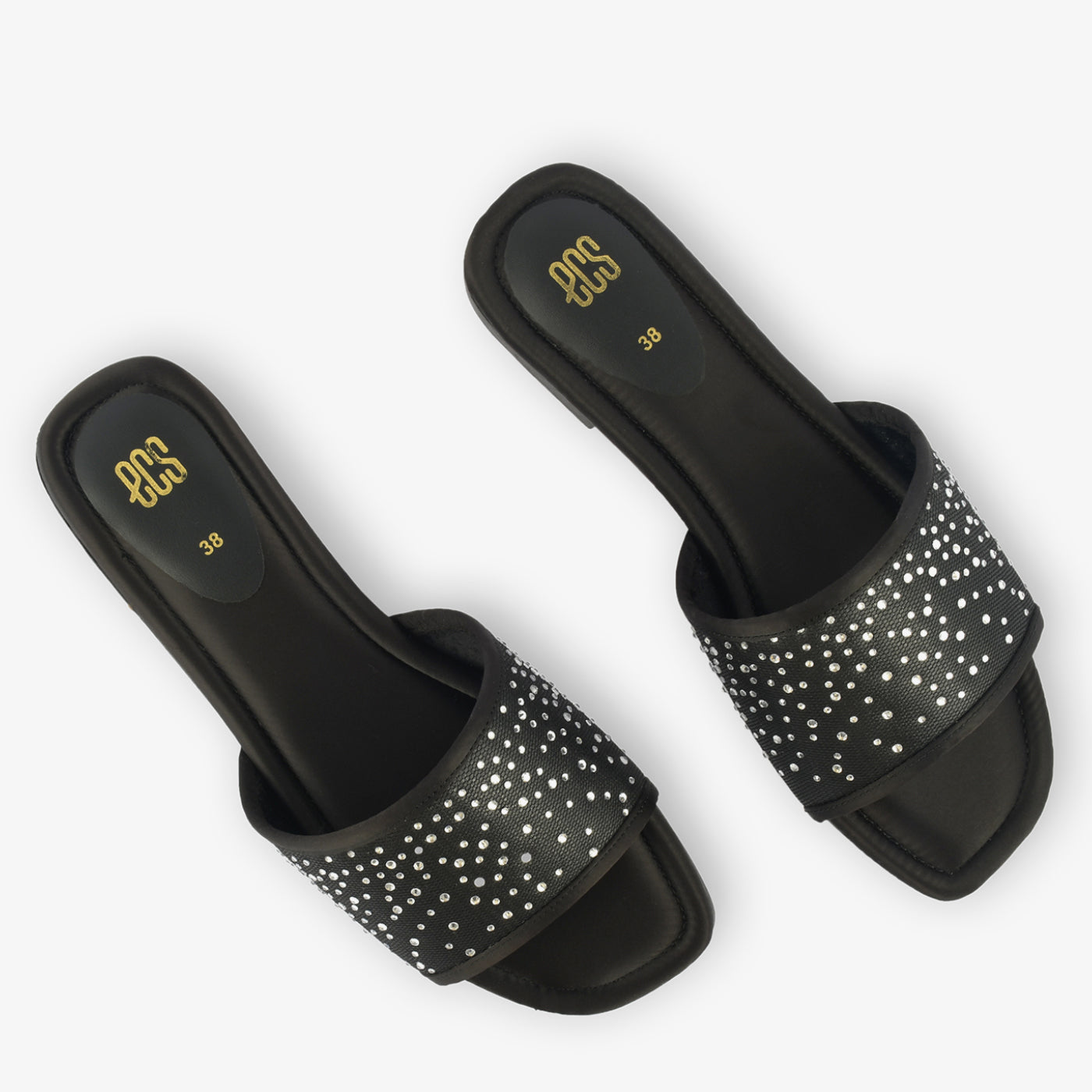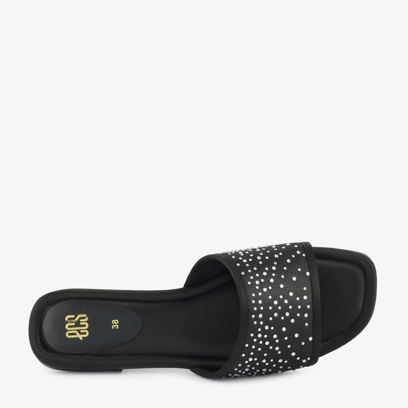 Starlight Dot presents a touch of understated sparkle with these dotted embellished slide. Featuring scattered embellishments, they add a touch of elegance to your casual look. Step into comfort and style with a hint of subtle charm.