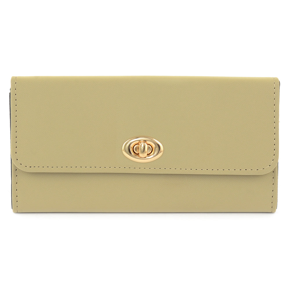 This elegant wallet features a streamlined design with a twist-lock closure for secure and stylish utility. Ideal for organizing cards and cash in a slim silhouette. A perfect blend of function and fashion.