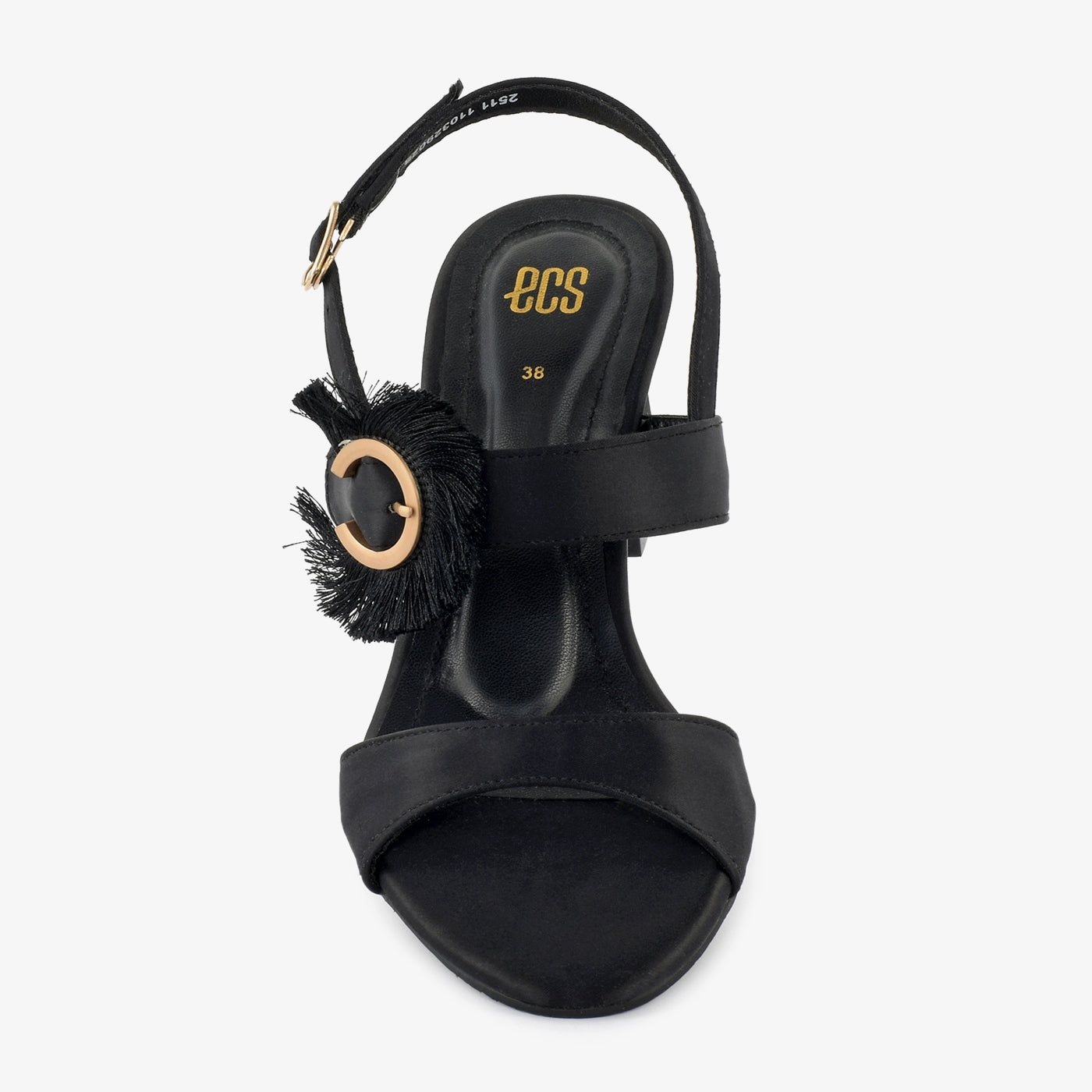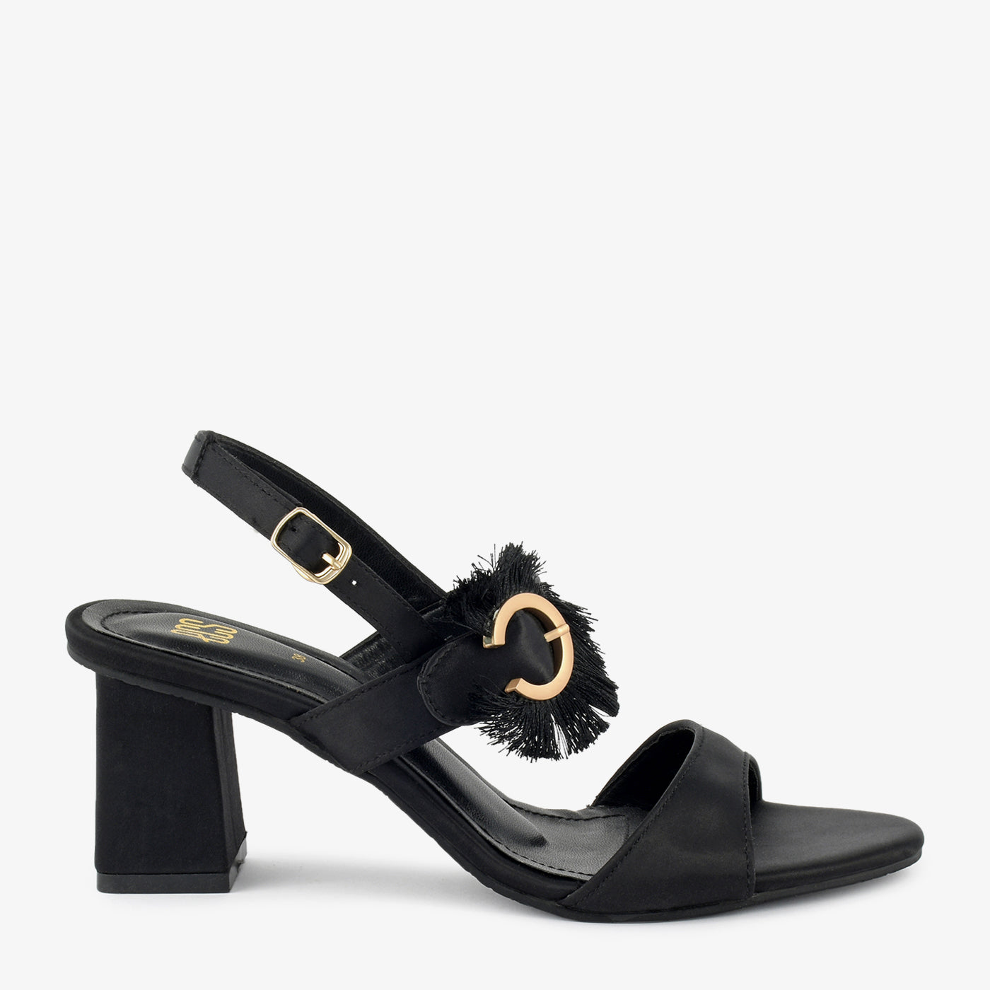 Step into sophisticated style with these black sandals. The block heel offers a comfortable lift, while the tassel detail adds a touch of playful elegance.