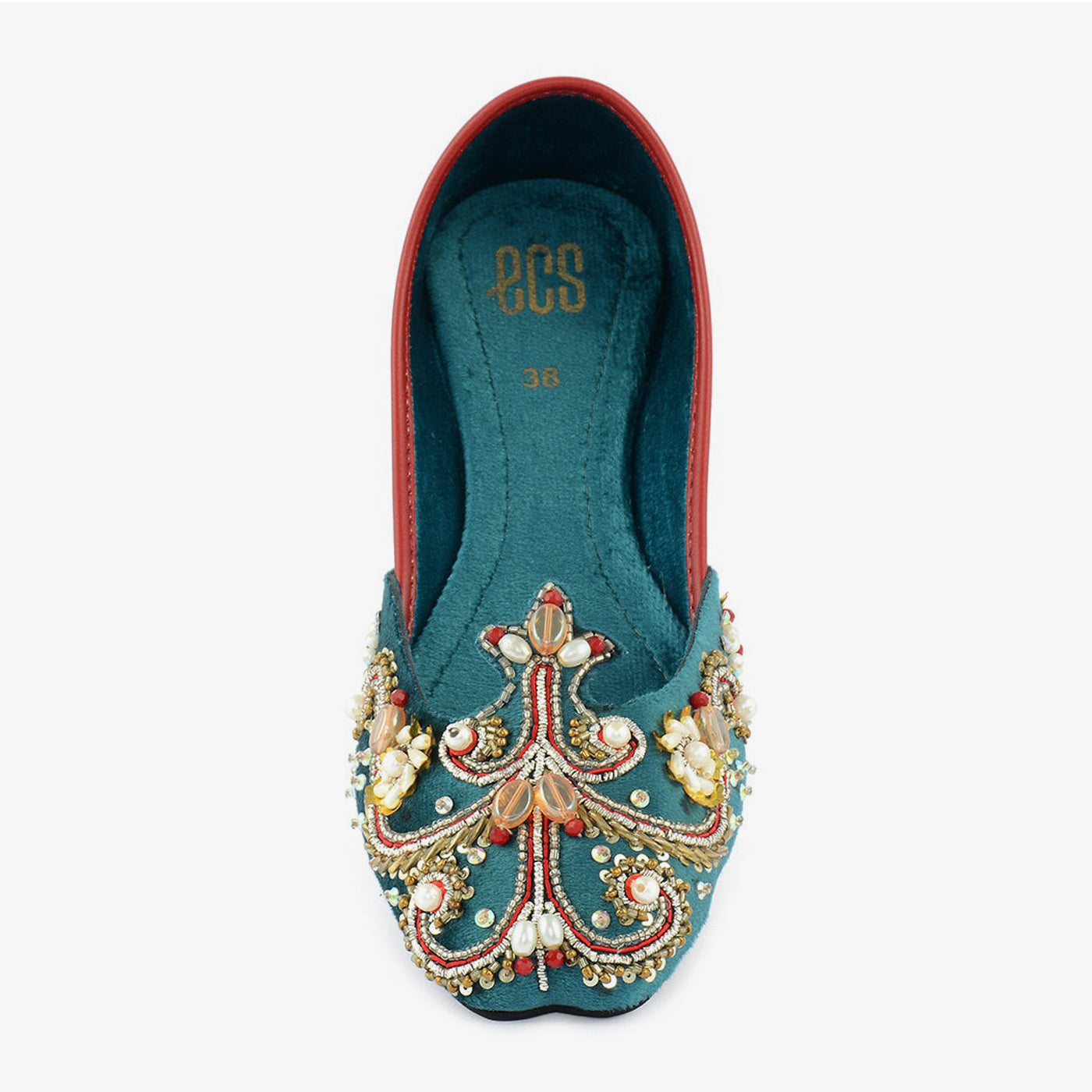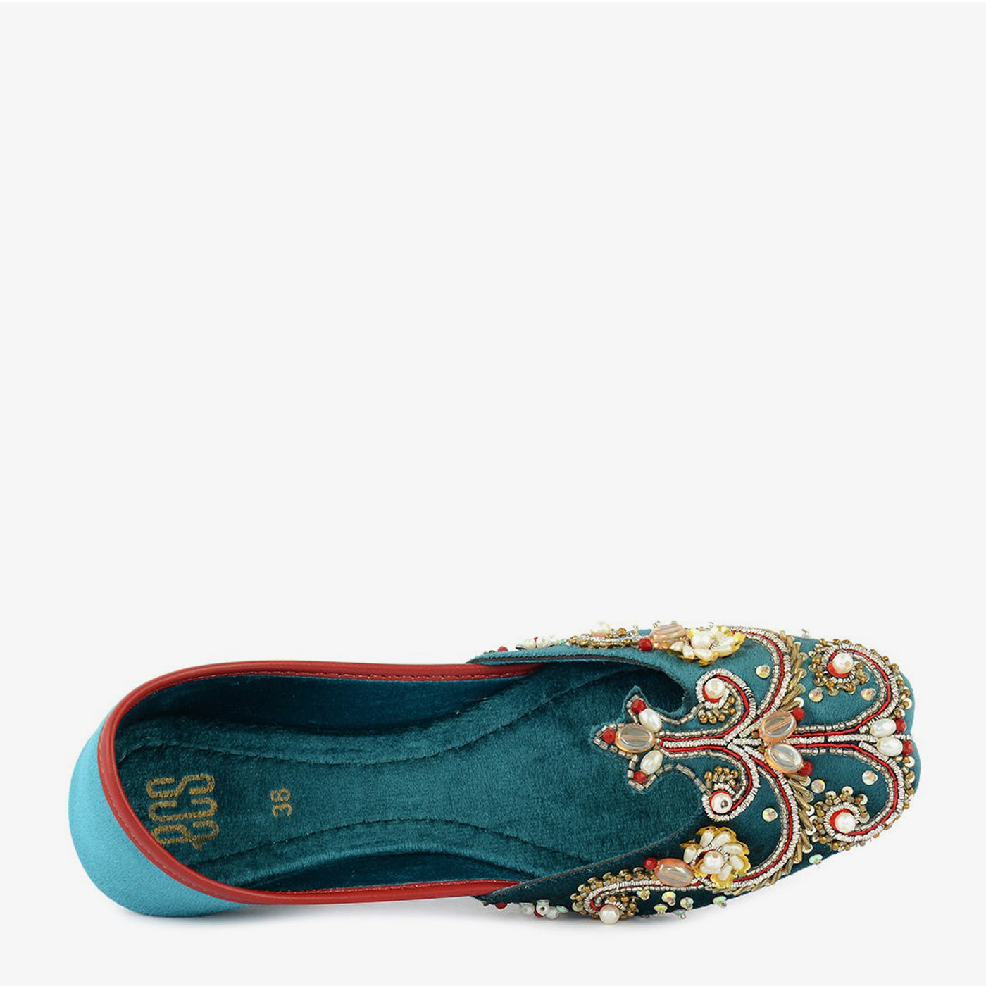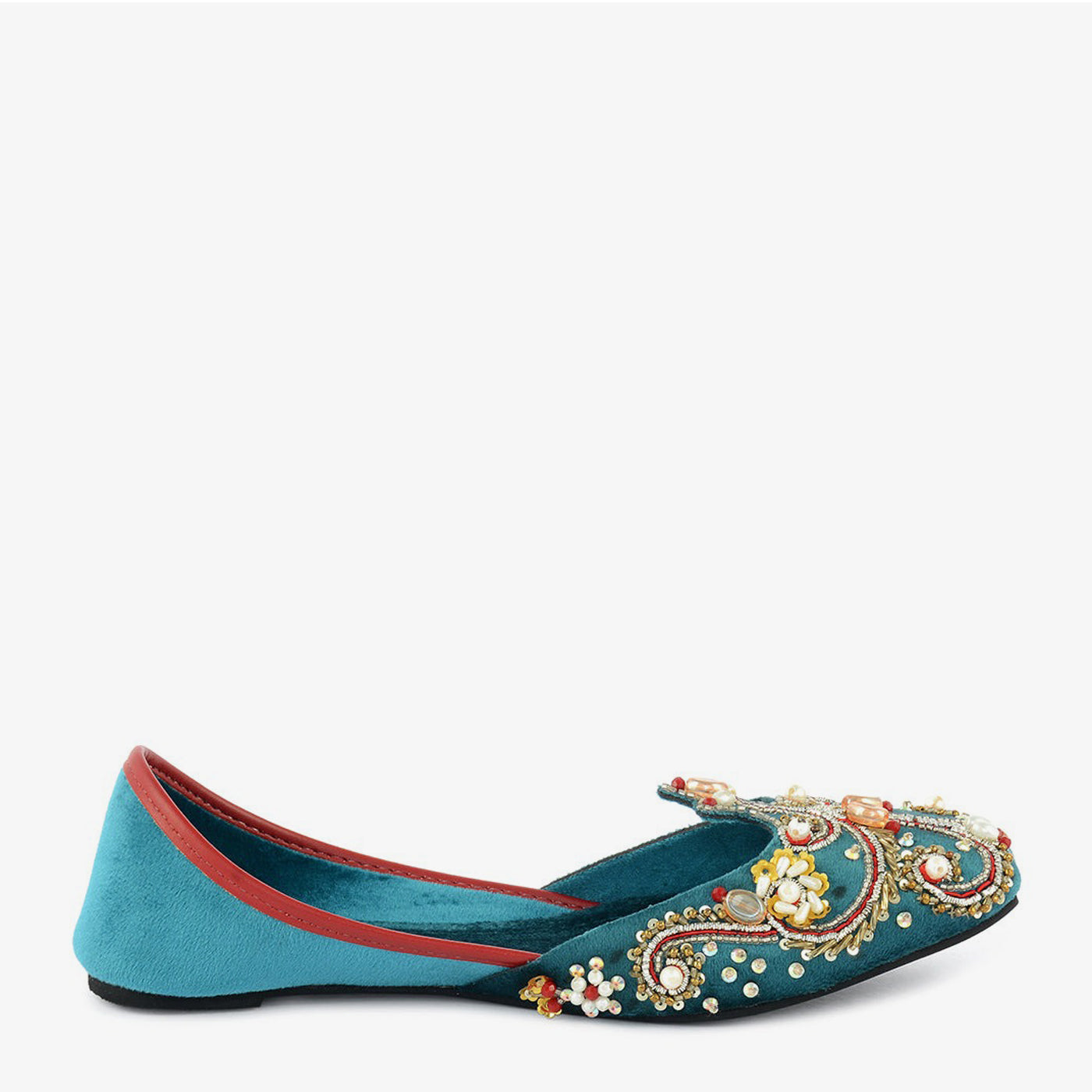 Lavish hand embellishments and beadwork bring this khussa to life, making it perfect for special occasions. The contrast lining adds a bold touch.