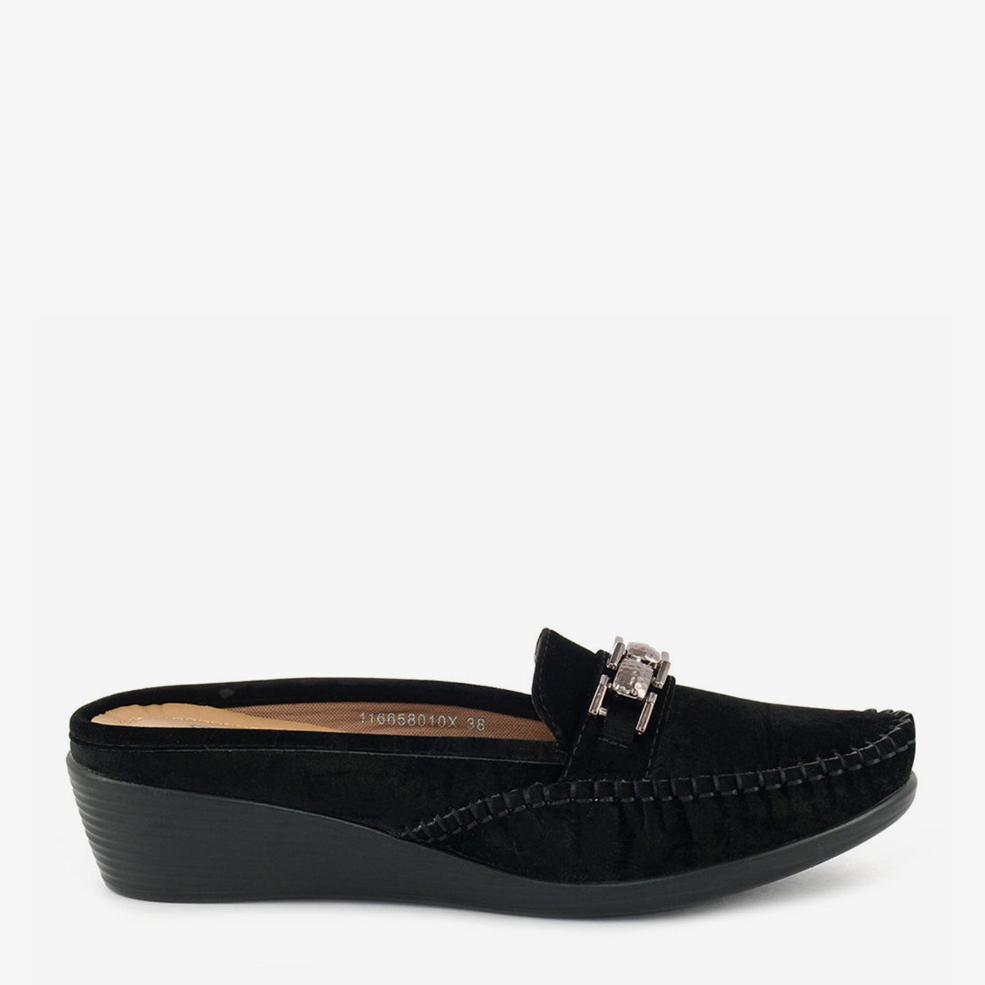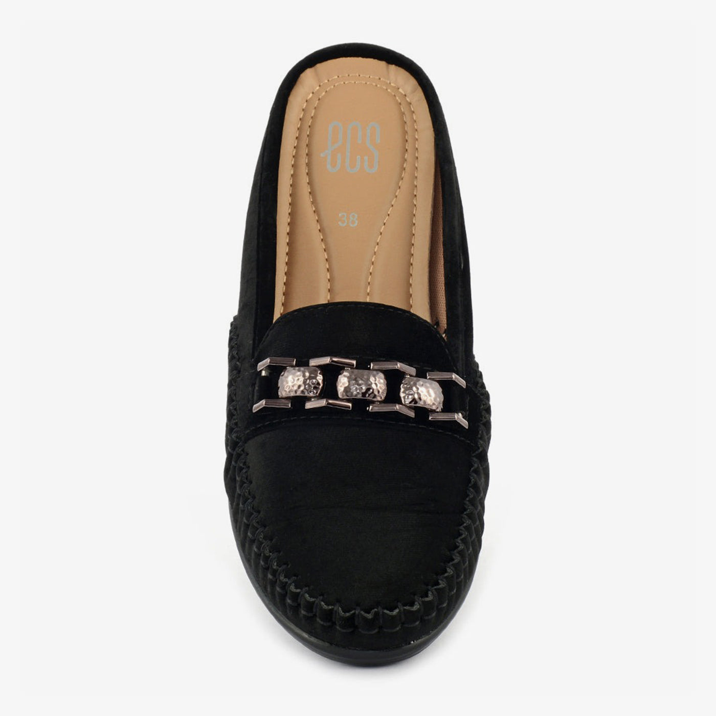 Nora Chain blends comfort with elegance, featuring a velvety finish and a metallic chain accent adorned with stones. This low wedge mule ensures effortless wear and timeless appeal for everyday modest outfits.