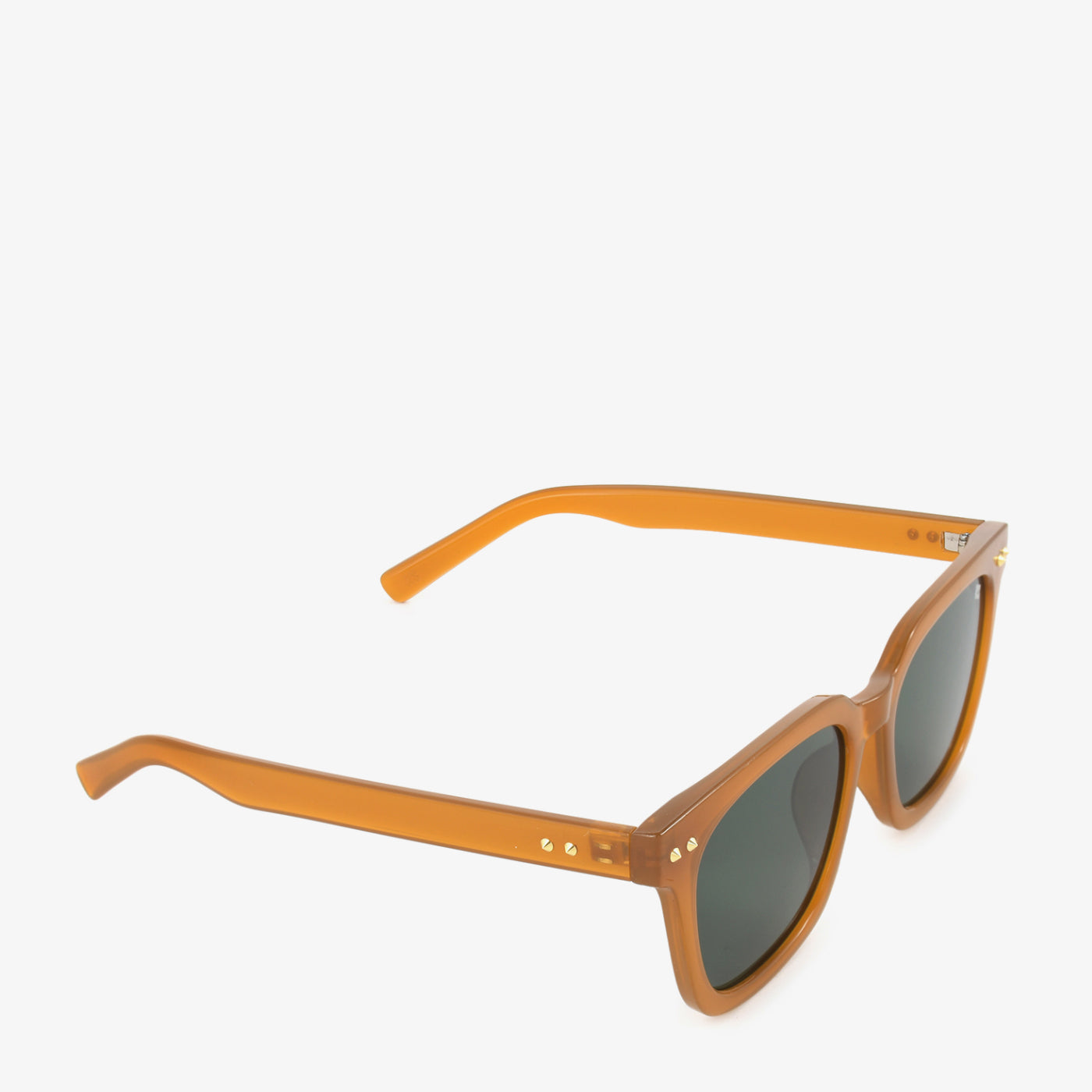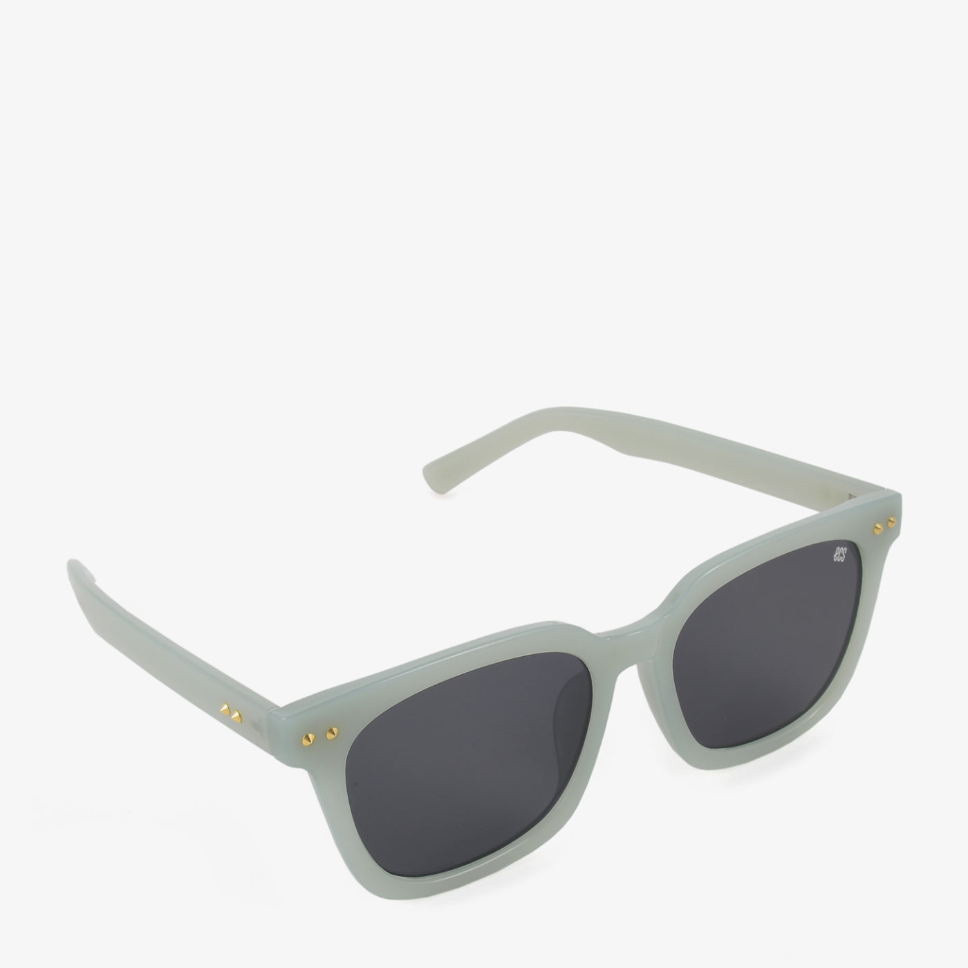 Elevate your style with these versatile sunglasses. They feature a sleek, full-rim frame with subtle pin details on the front, offering a contemporary yet timeless appeal. The dark lenses provide essential sun protection, making them a practical and fashionable accessory for any look.