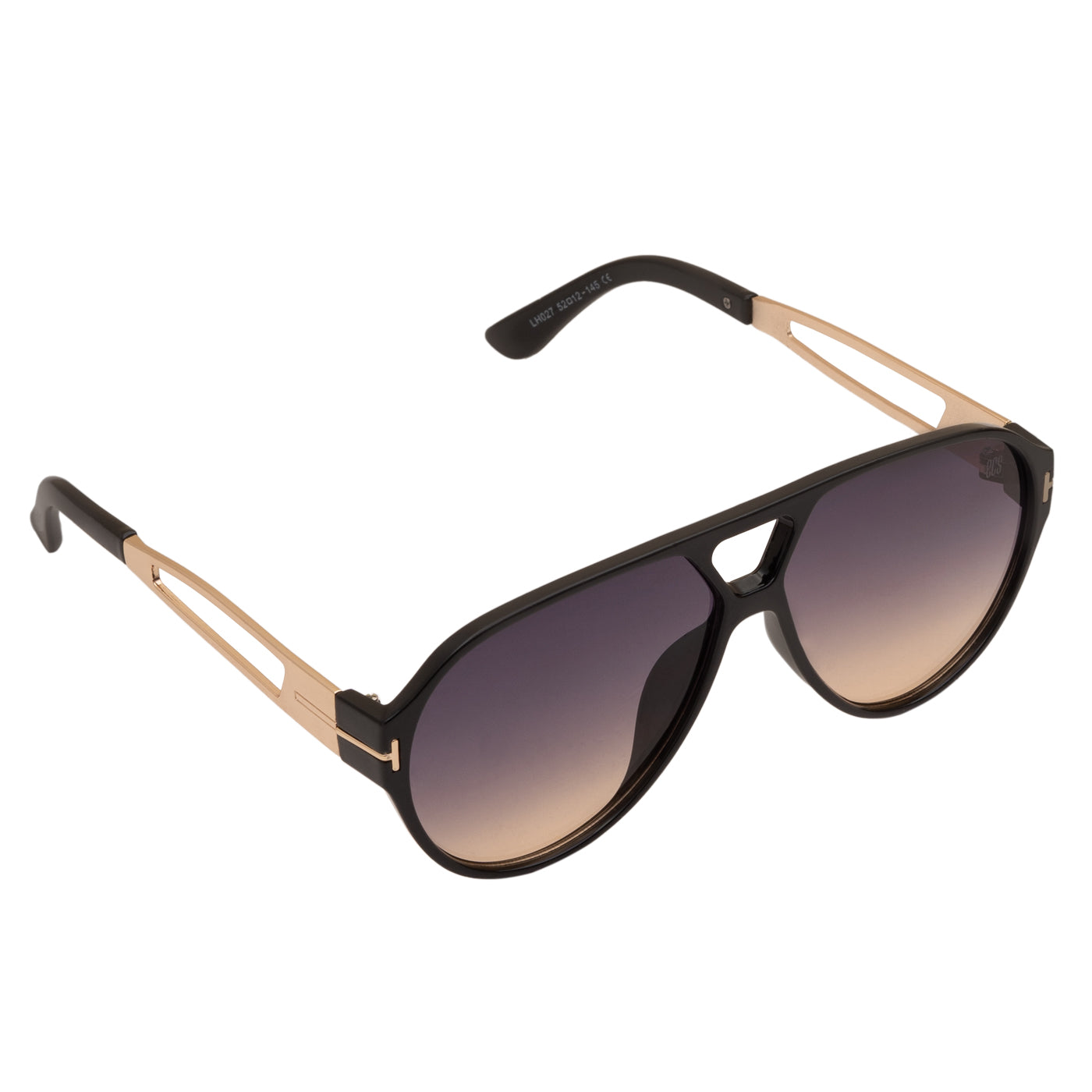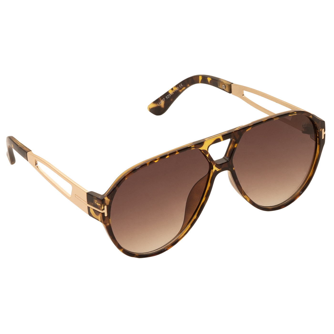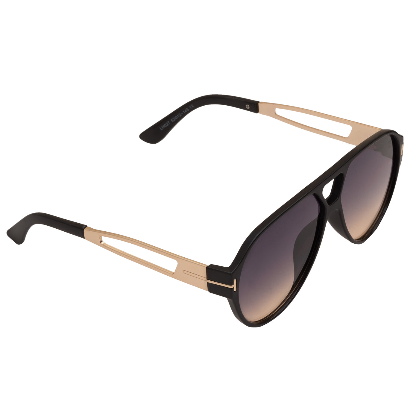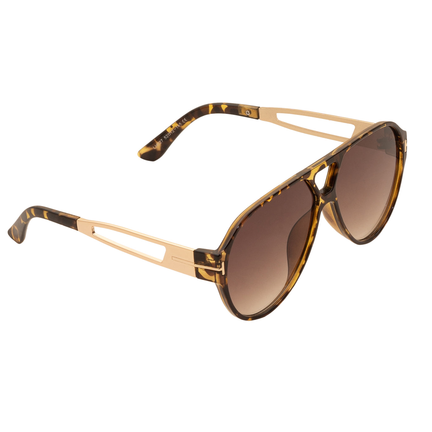 Modernized aviators with a geometric cut-out bridge and sleek gold temples. These sunglasses add a sharp, confident touch to any outfit.