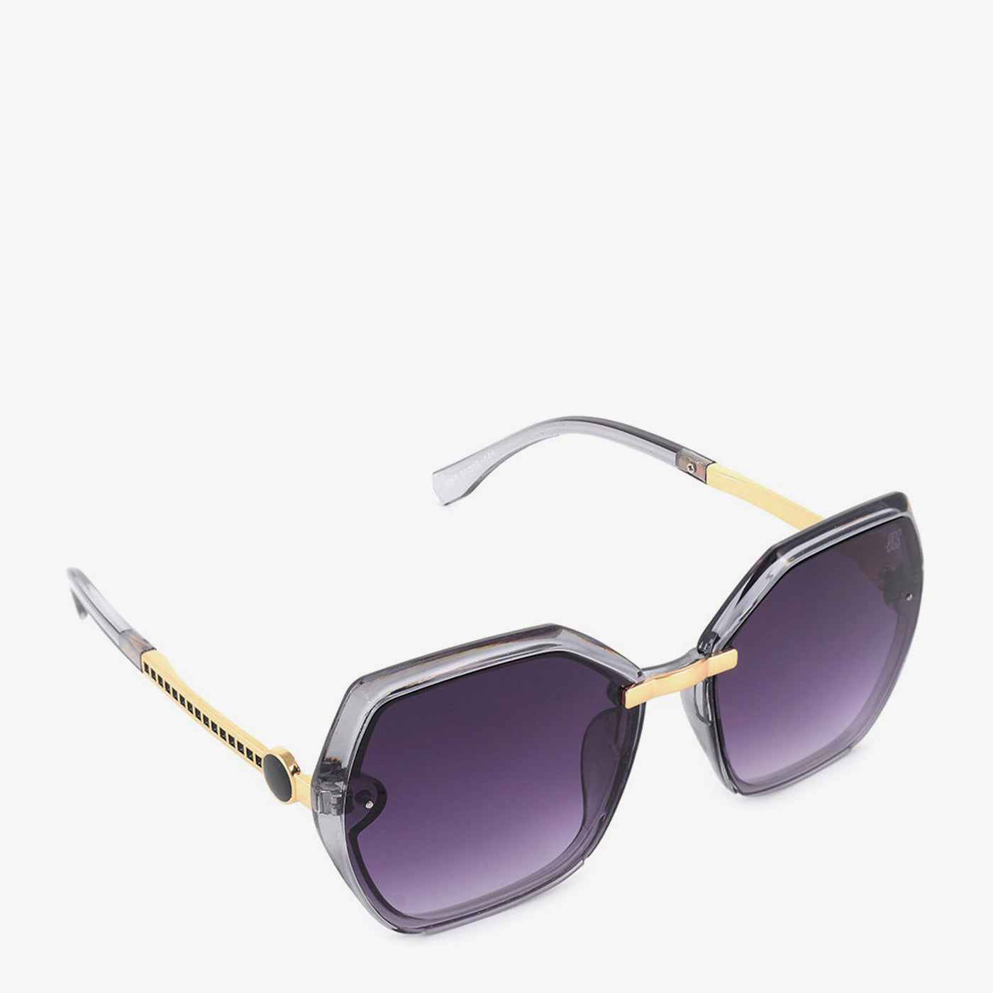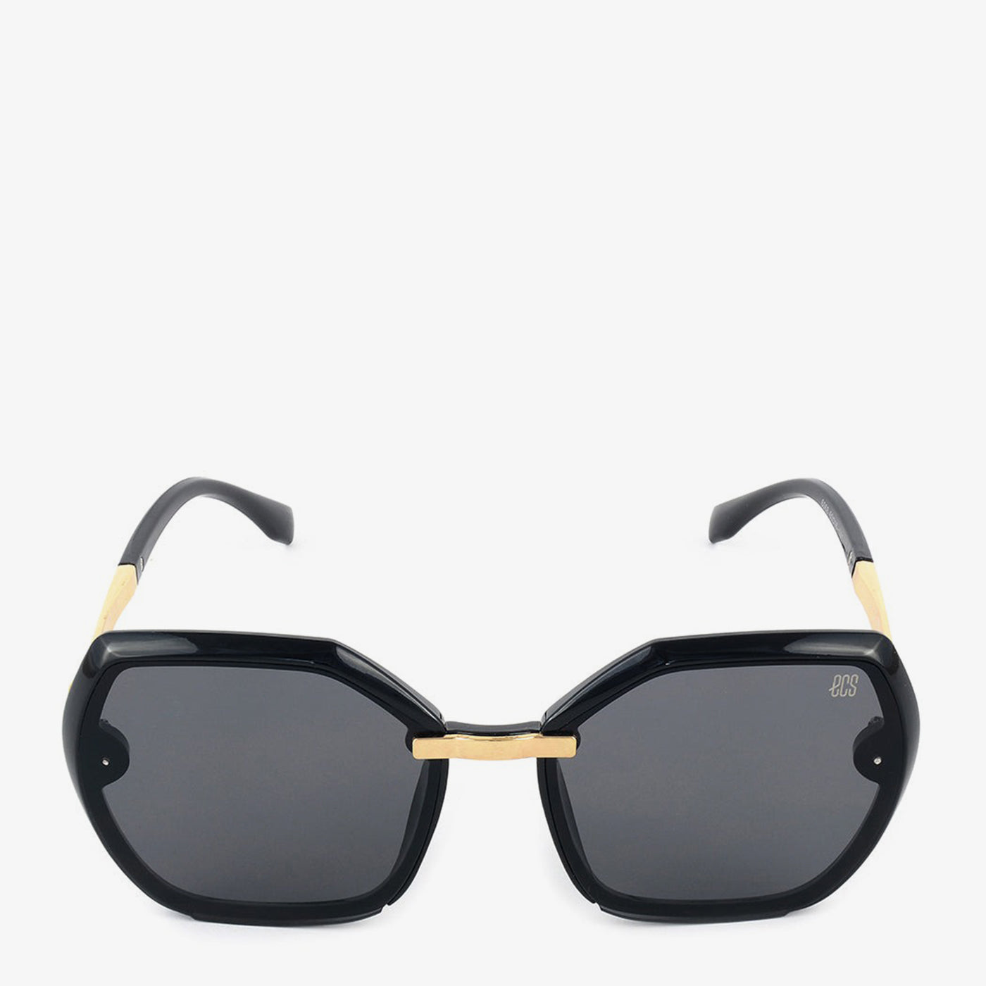 With their geometric structure and gold-accented arms, these sunglasses balance sharpness with sophistication. The oversized lens area offers full coverage with a fashionable edge.