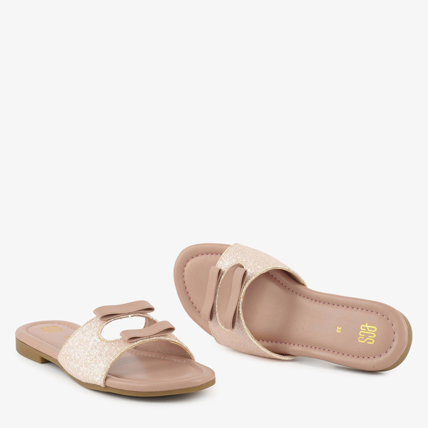 This charming kids chappal features a sparkling textured strap paired with soft decorative bows, creating a delightful blend of comfort and playful elegance. Designed with a smooth cushioned footbed, it offers gentle support for growing feet while ensuring all-day ease. The open-toe slip-on style allows quick wear, and the lightweight flat sole promotes natural movement, making it ideal for daily outings, parties, and festive occasions.