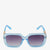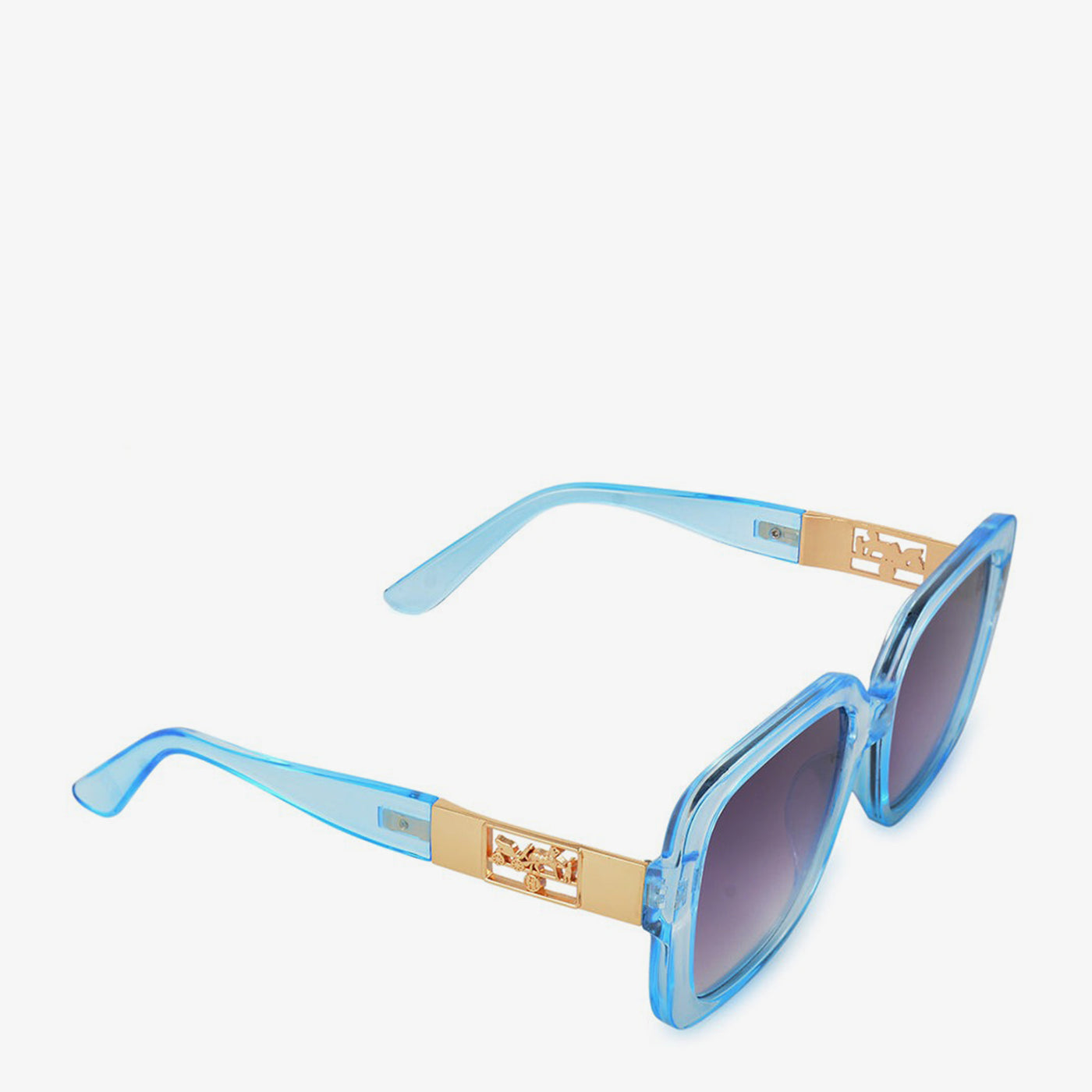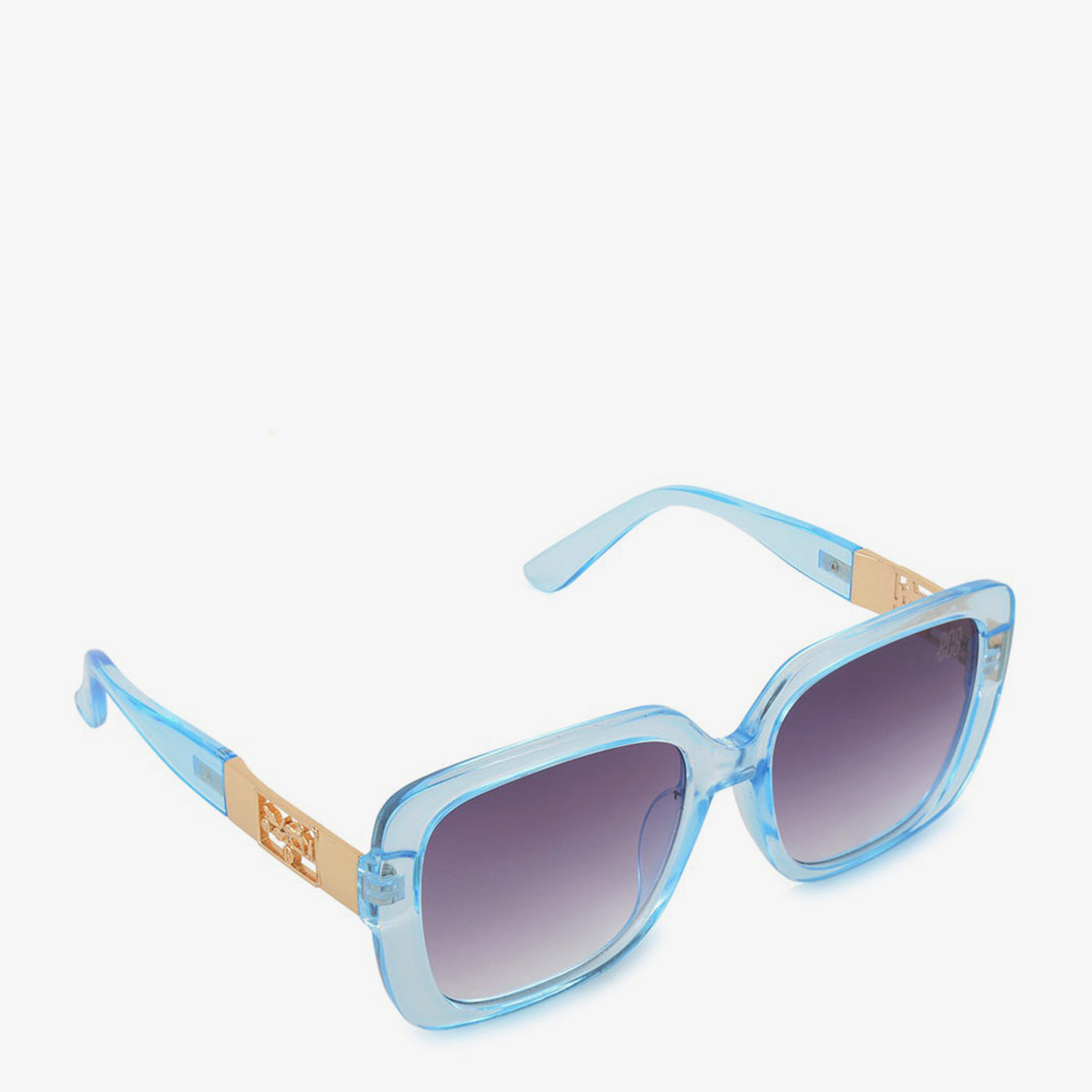 These stylish square sunglasses feature a vibrant blue frame. The lenses have a subtle gradient. A fashionable accessory to add a pop of color to your look.