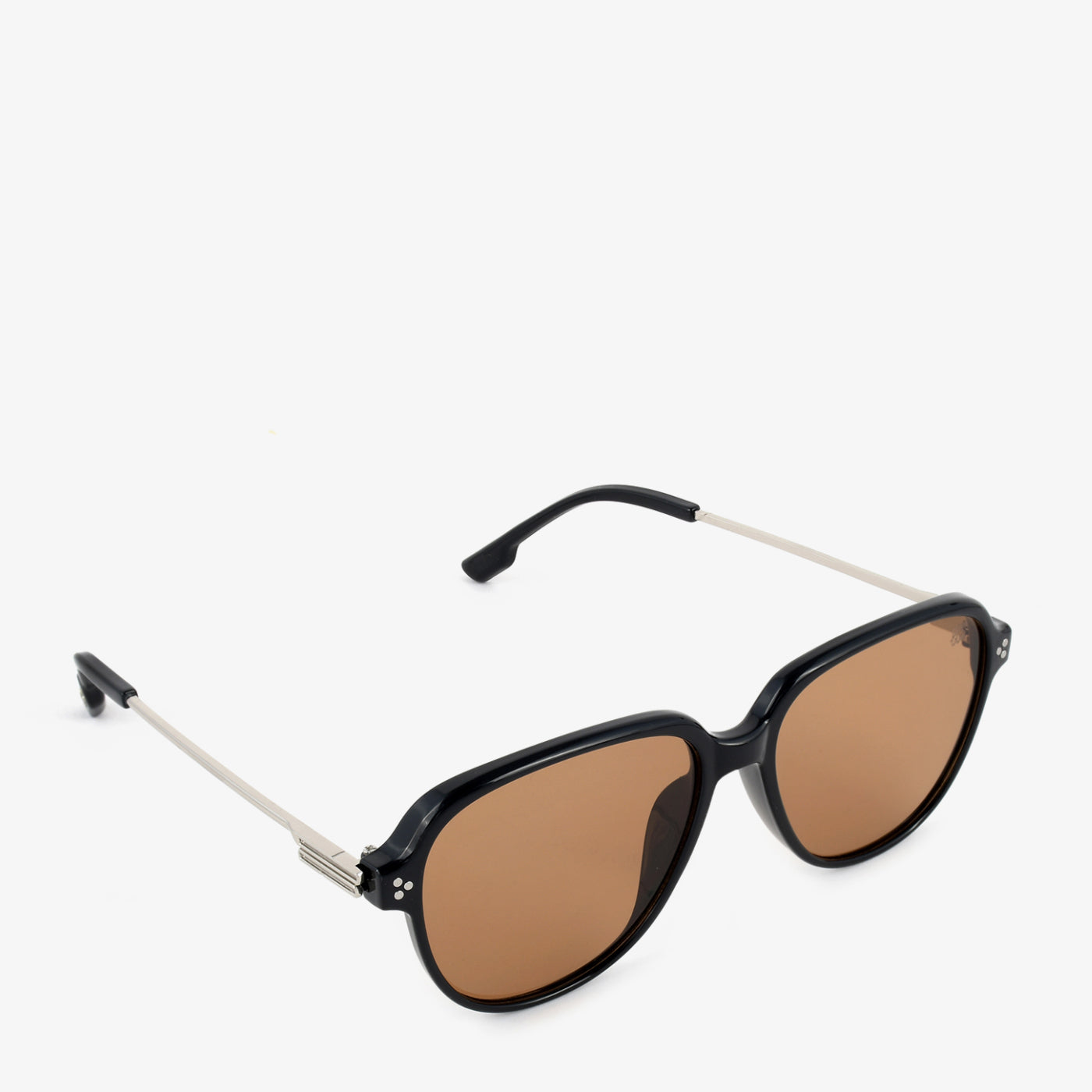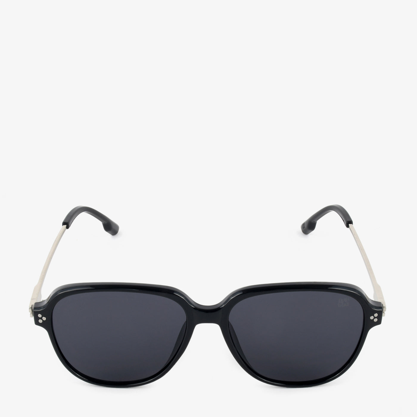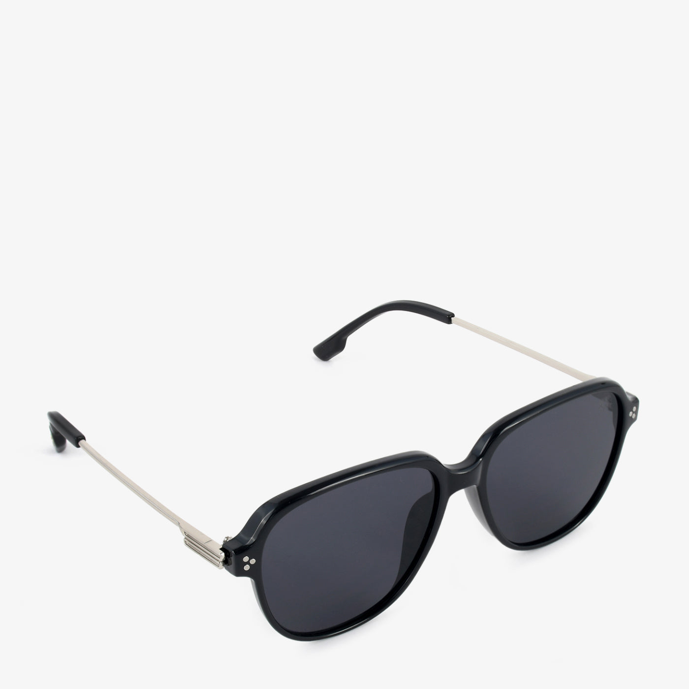 Elevate your everyday style with these classic women's sunglasses. They feature a sleek, dark full-rim frame with subtle pin details on the front. The dark lenses provide essential sun protection, offering a timeless and versatile accessory for any look.