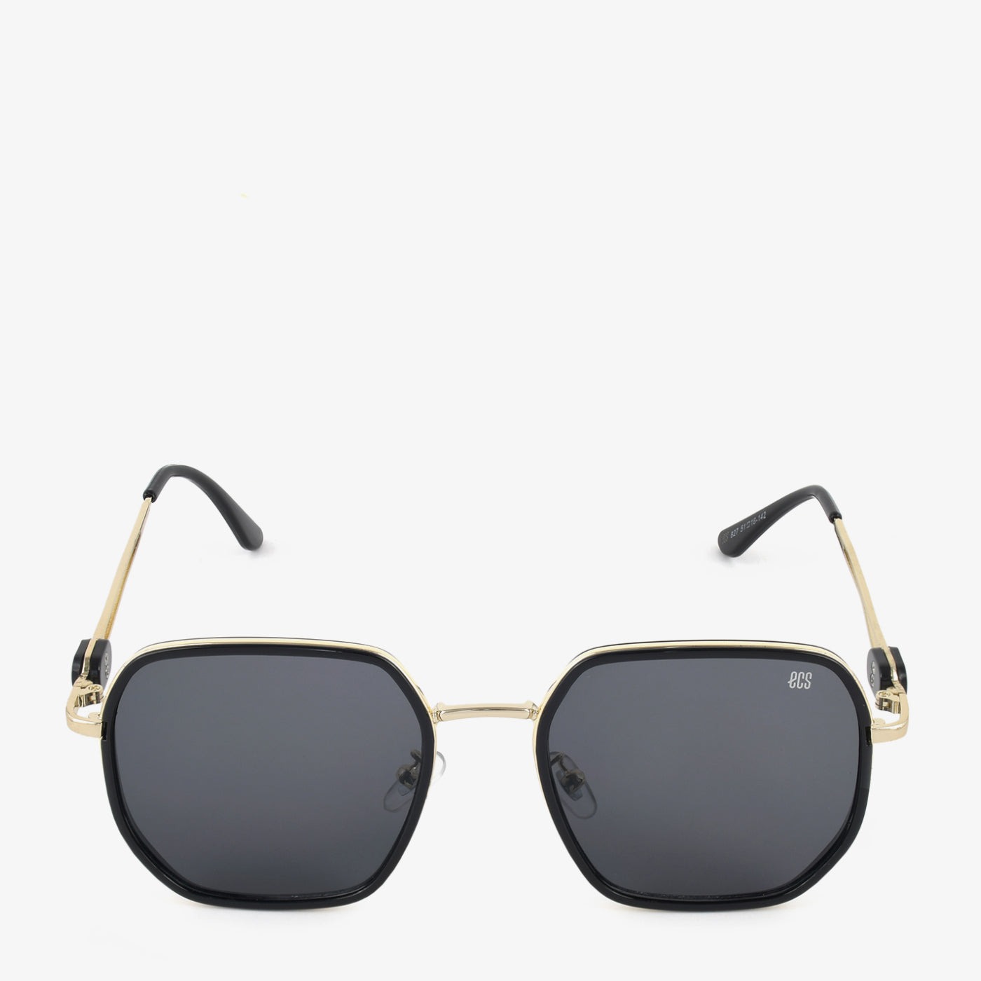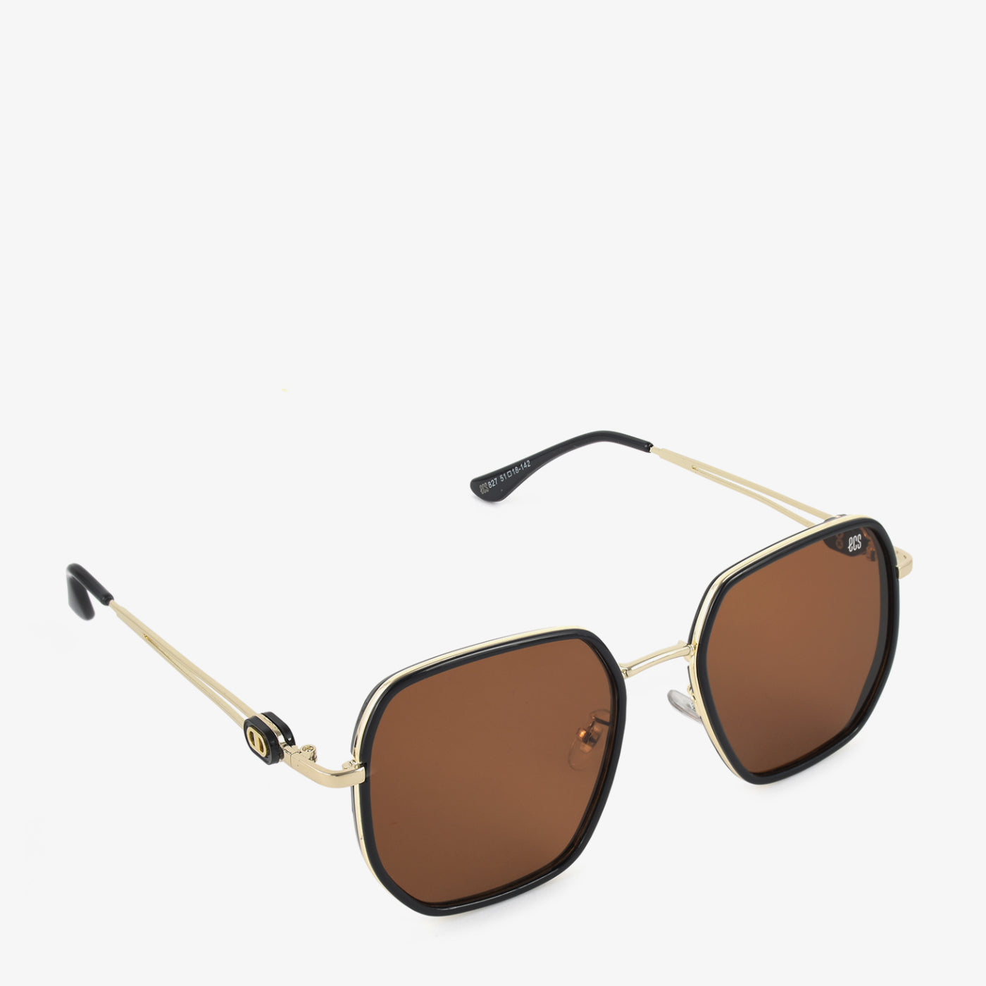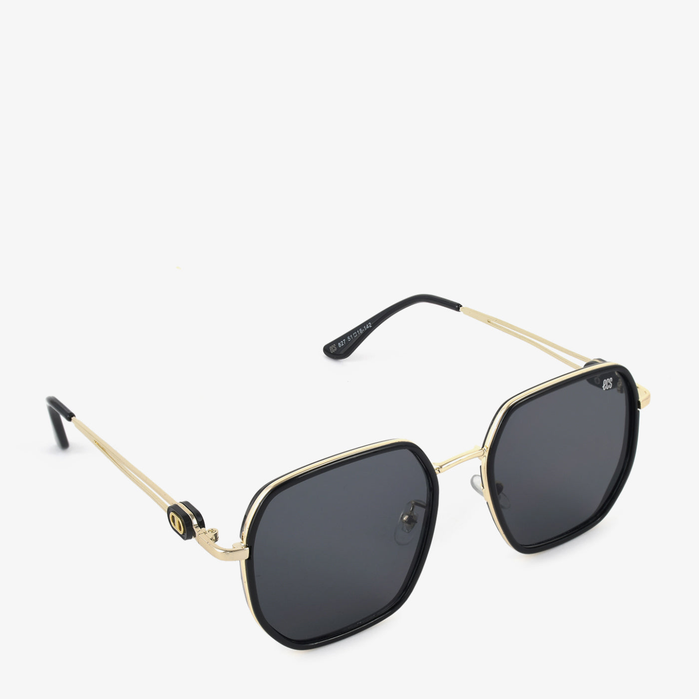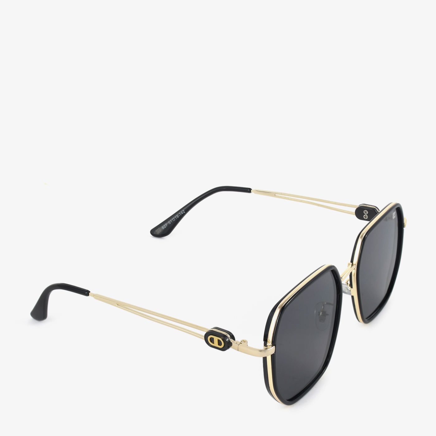 Elevate your style with these chic sunglasses. They feature a bold, black, geometric frame with gold-toned accents, offering a modern and sophisticated look. The dark lenses provide both style and sun protection.