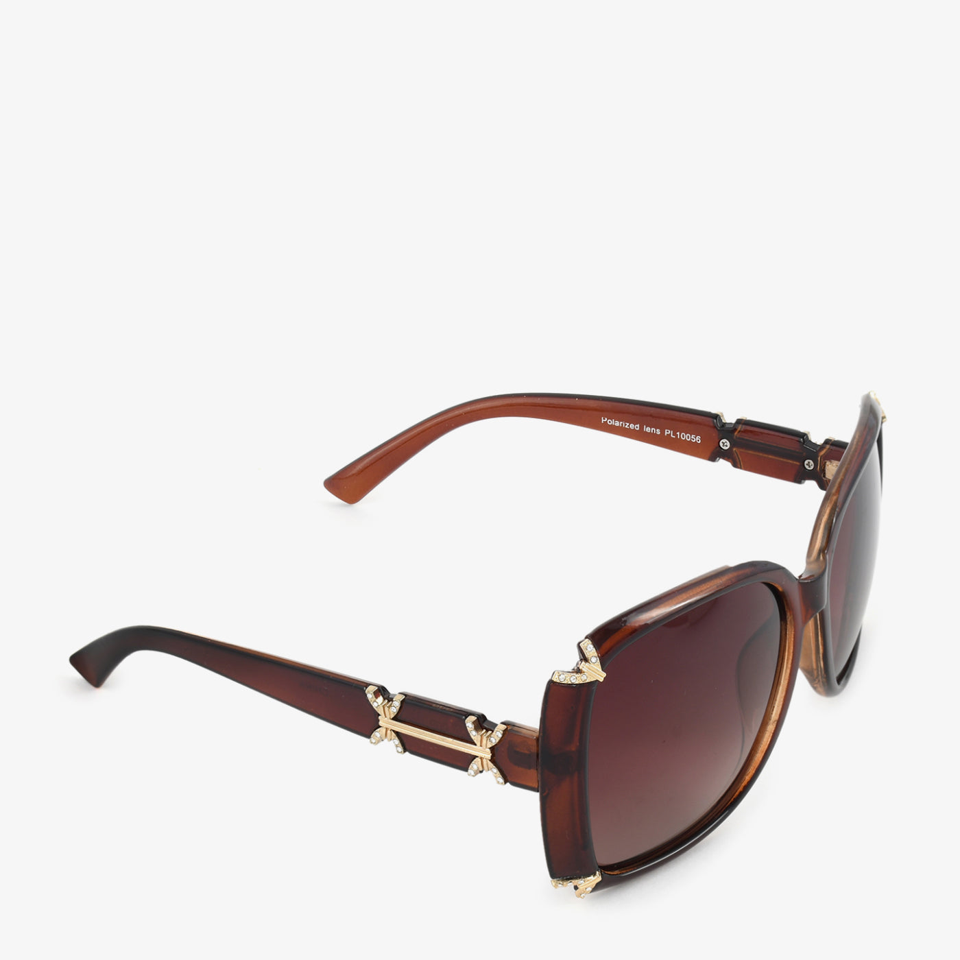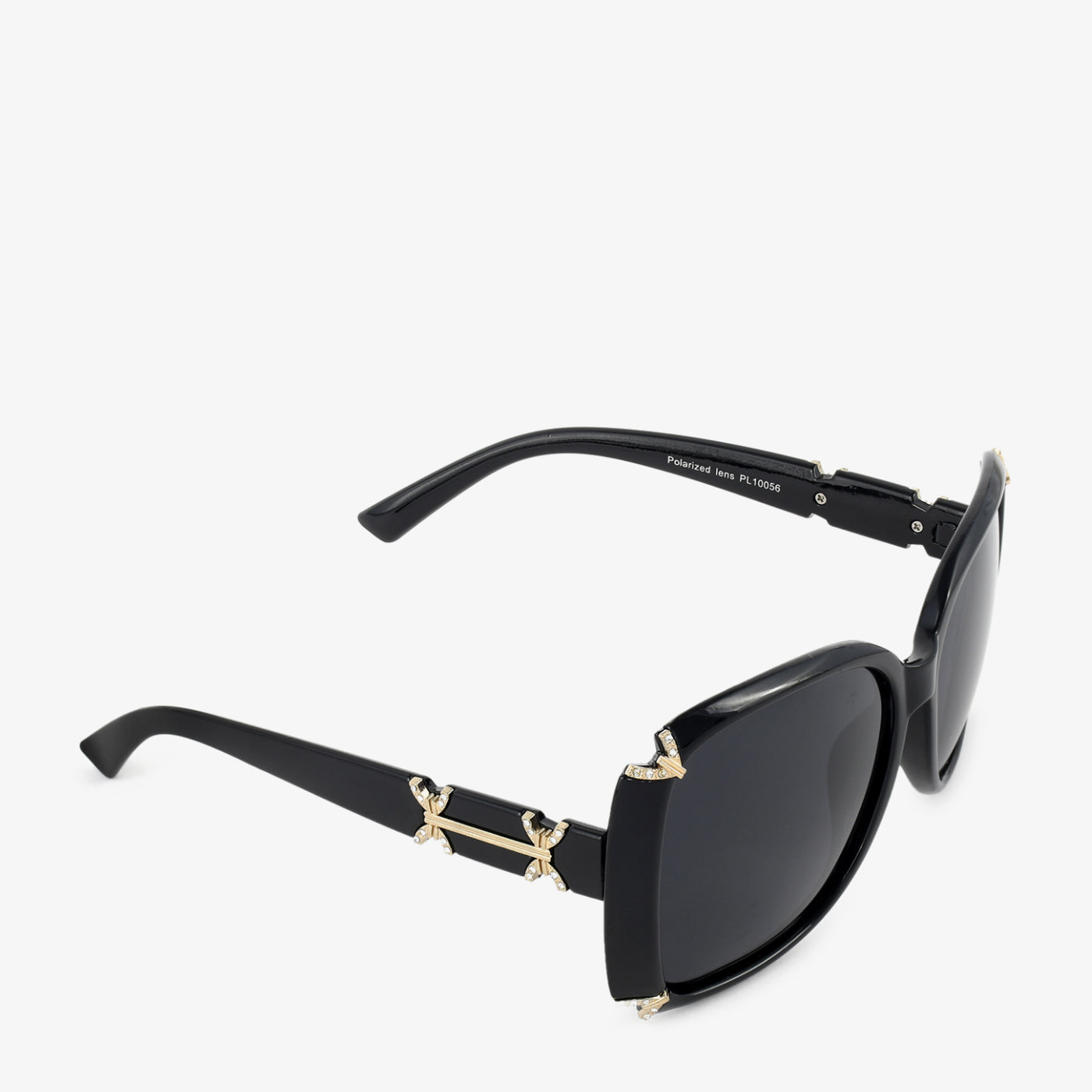 With its polygonal shape and minimal rim, this design combines geometric flair with casual sophistication. The dark tint provides full UV protection in a chic finish.