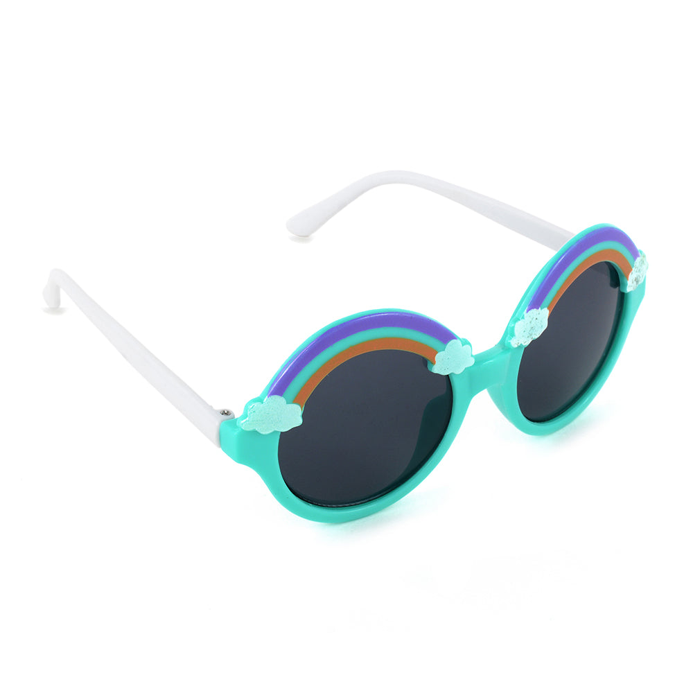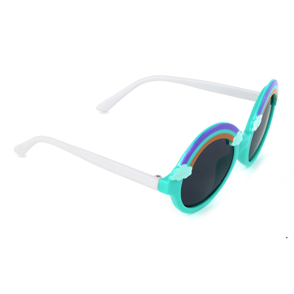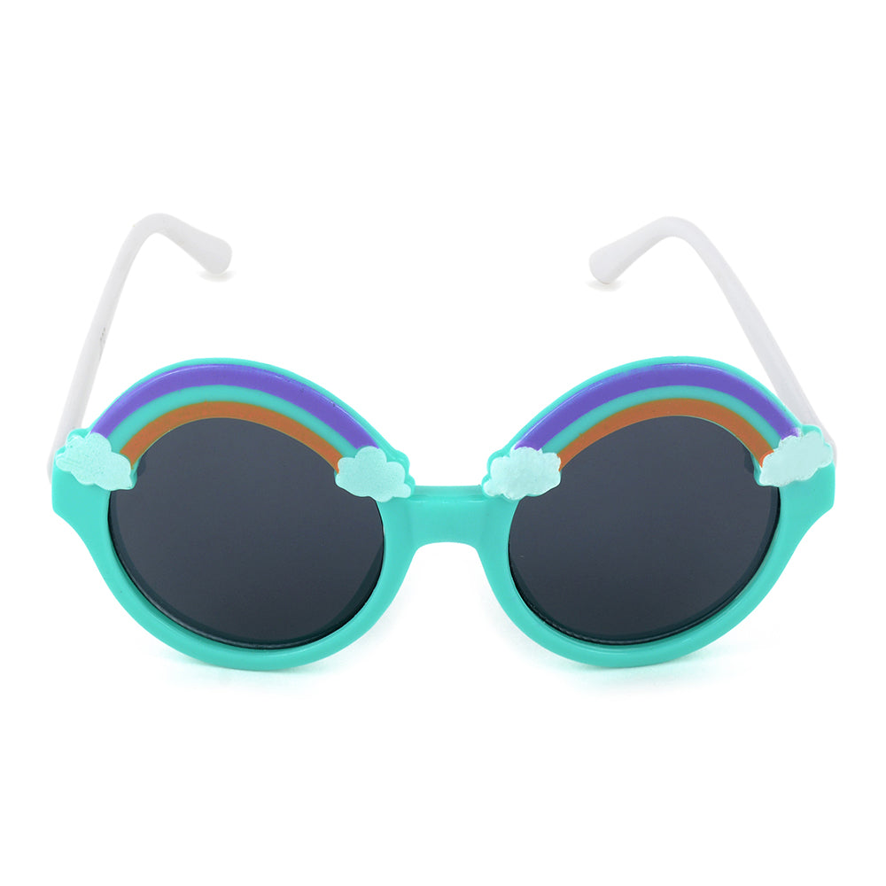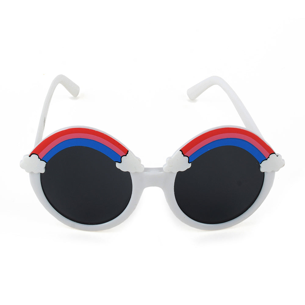 Playful and eye-catching, these round sunglasses feature whimsical rainbow arcs with cloud accents on a bold frame. Designed for kids who love fun accessories.