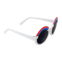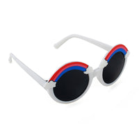 Playful and eye-catching, these round sunglasses feature whimsical rainbow arcs with cloud accents on a bold frame. Designed for kids who love fun accessories.