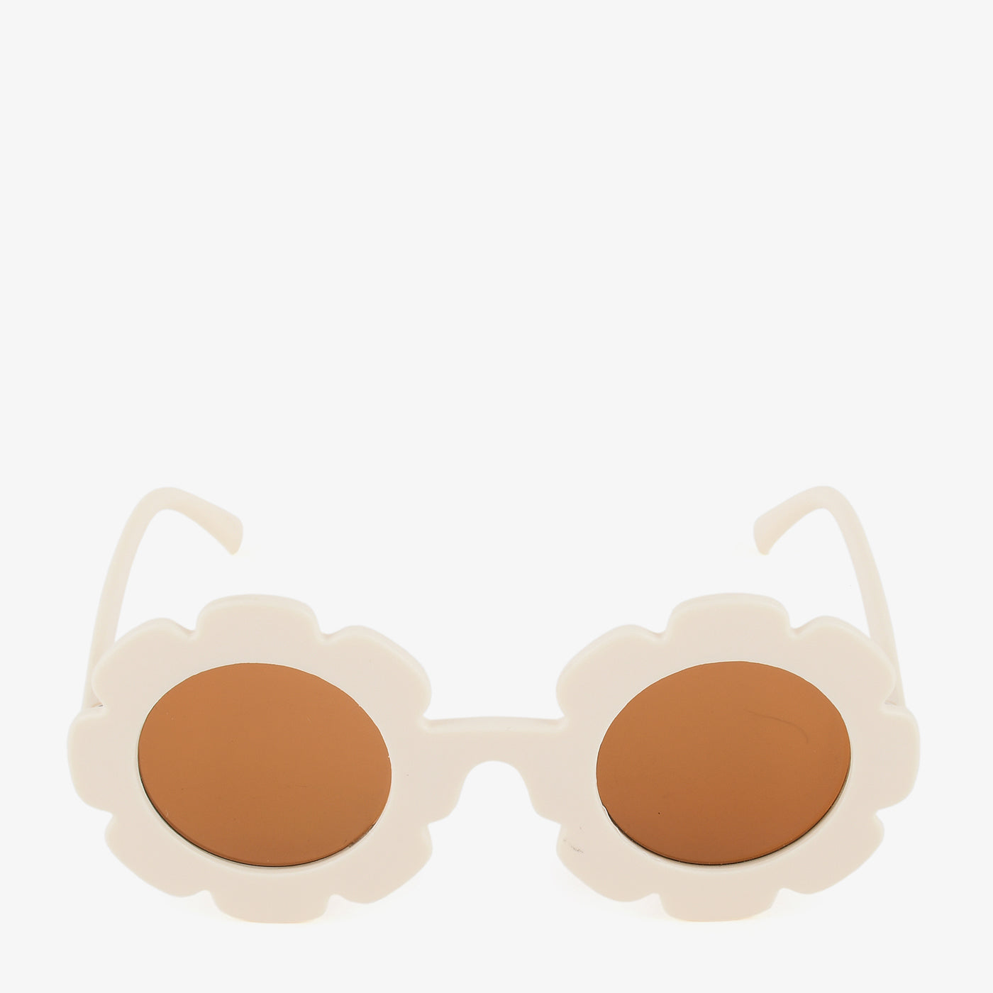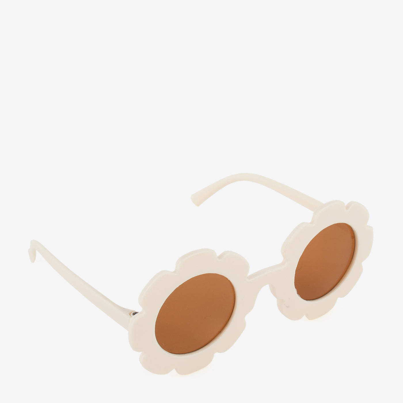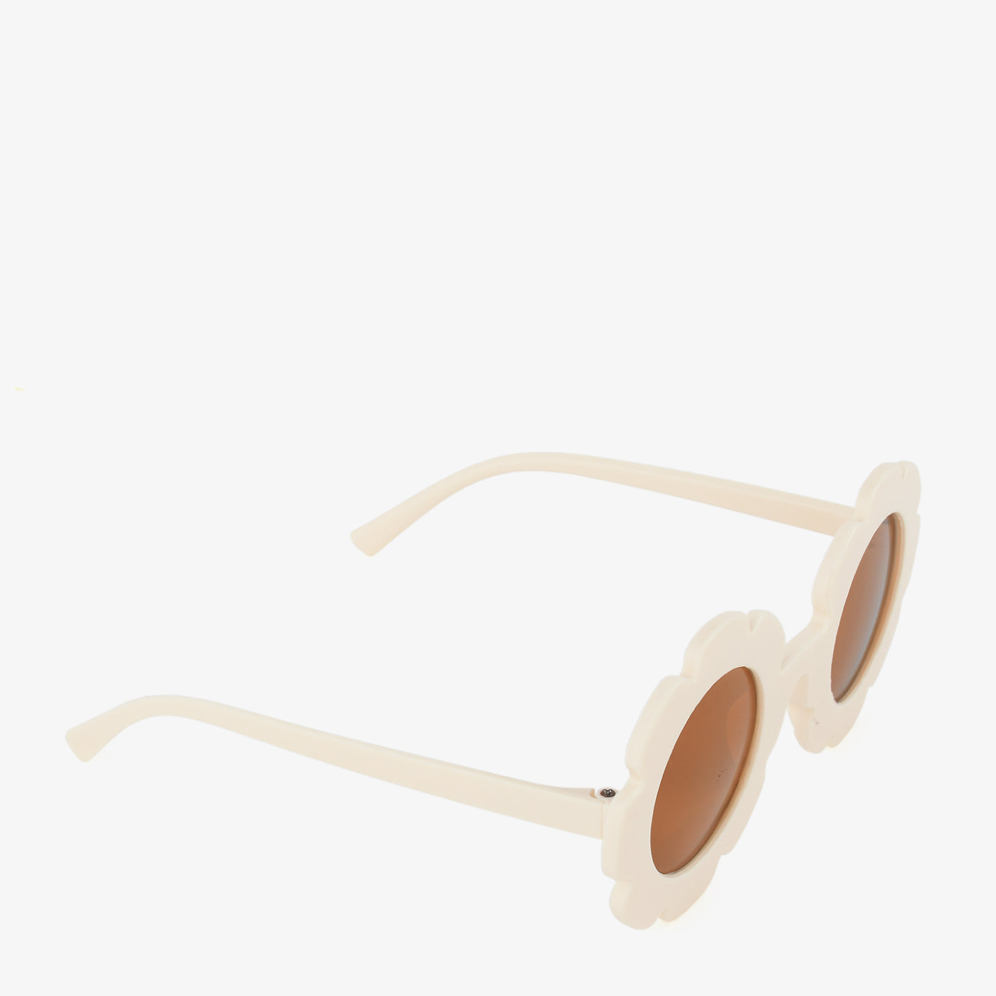 Step into retro charm with the "Daisy Pop Shades." These sunglasses feature a whimsical flower-shaped frame in a creamy tone with round lenses, making them a fun pick for expressive fashion lovers.