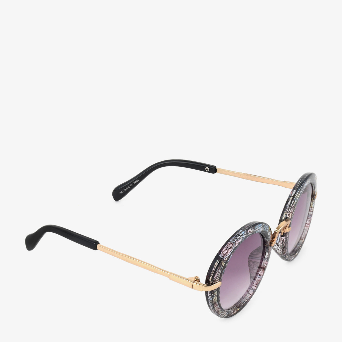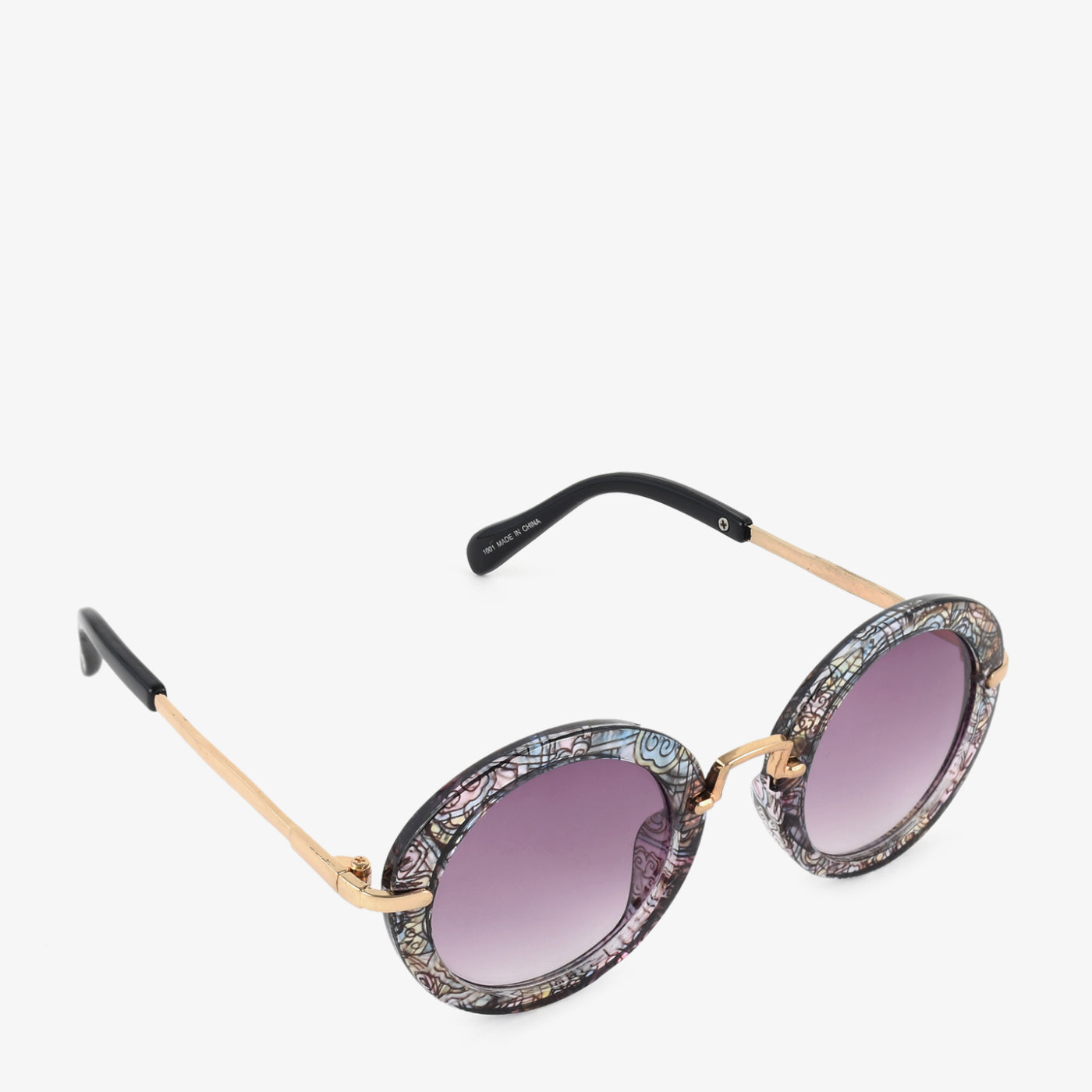 Step out in bold style with these Vintage Mosaic Round Sunglasses. The intricately patterned frame in pastel hues combined with gold metal detailing creates an artistic and fashionable look. The gradient lenses not only protect your eyes but also add a touch of retro glam to your ensemble.