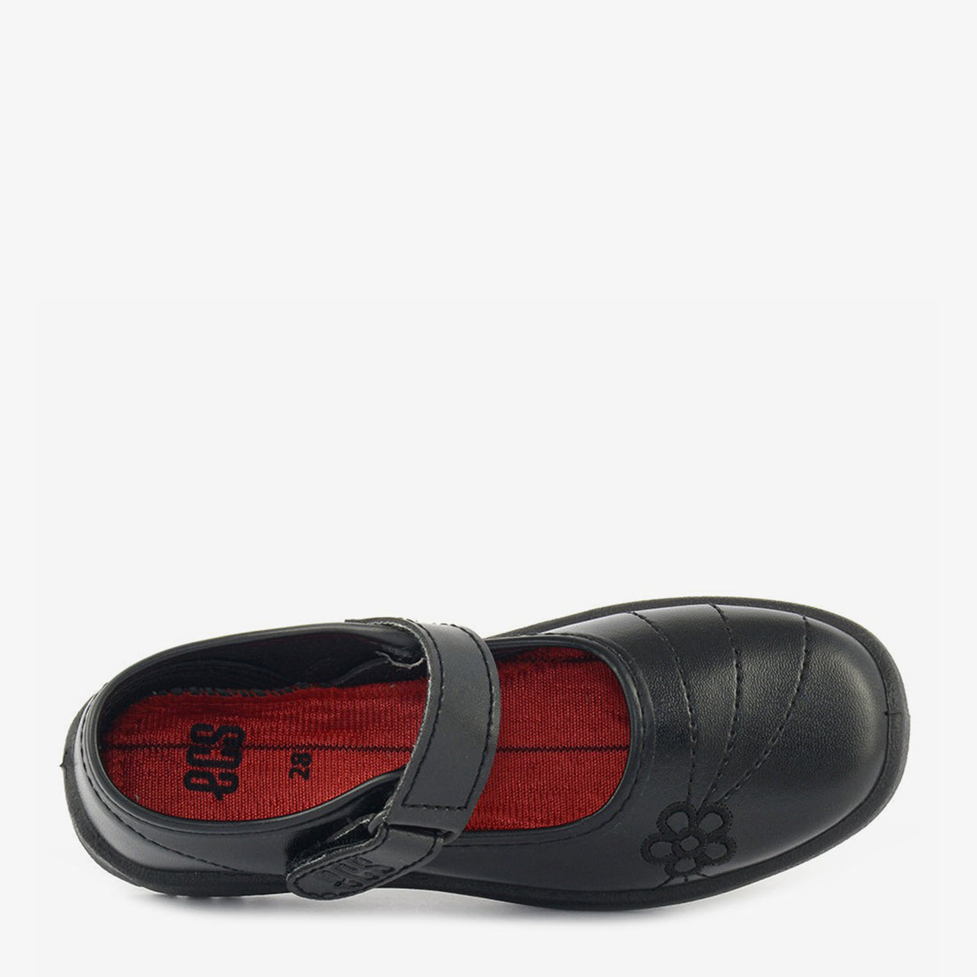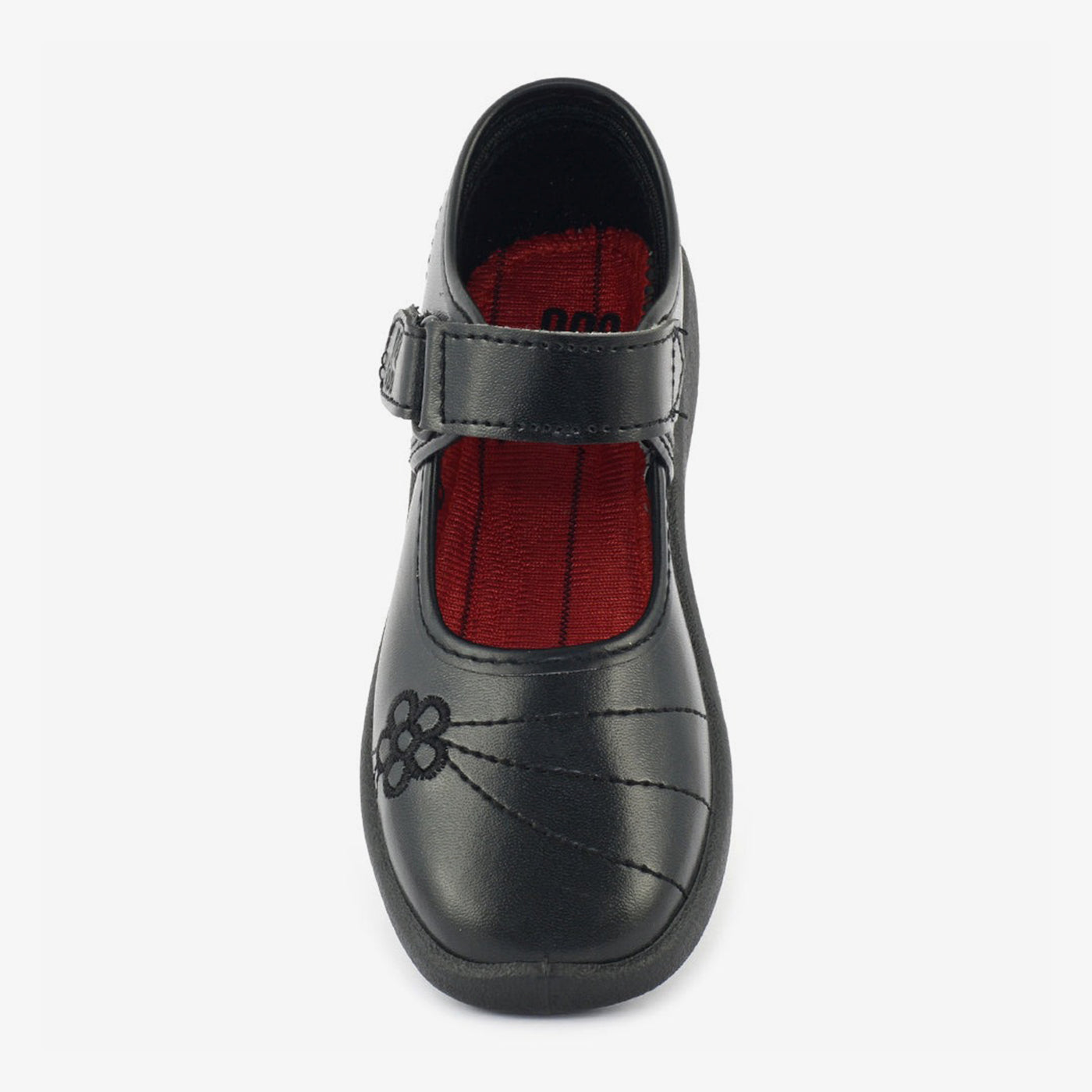 Introducing Flex Guard School Shoes, crafted for comfort and durability. Featuring synthetic materials for both the upper and lining, these shoes ensure a long-lasting and easy-to-maintain design. The round toe shape and 1-inch flat heel provide consistent comfort, while the glossy sole adds a polished touch. With a polishable finish, these shoes stay looking sharp. The Velcro fastening makes them easy to put on and adjust, perfect for everyday school wear.