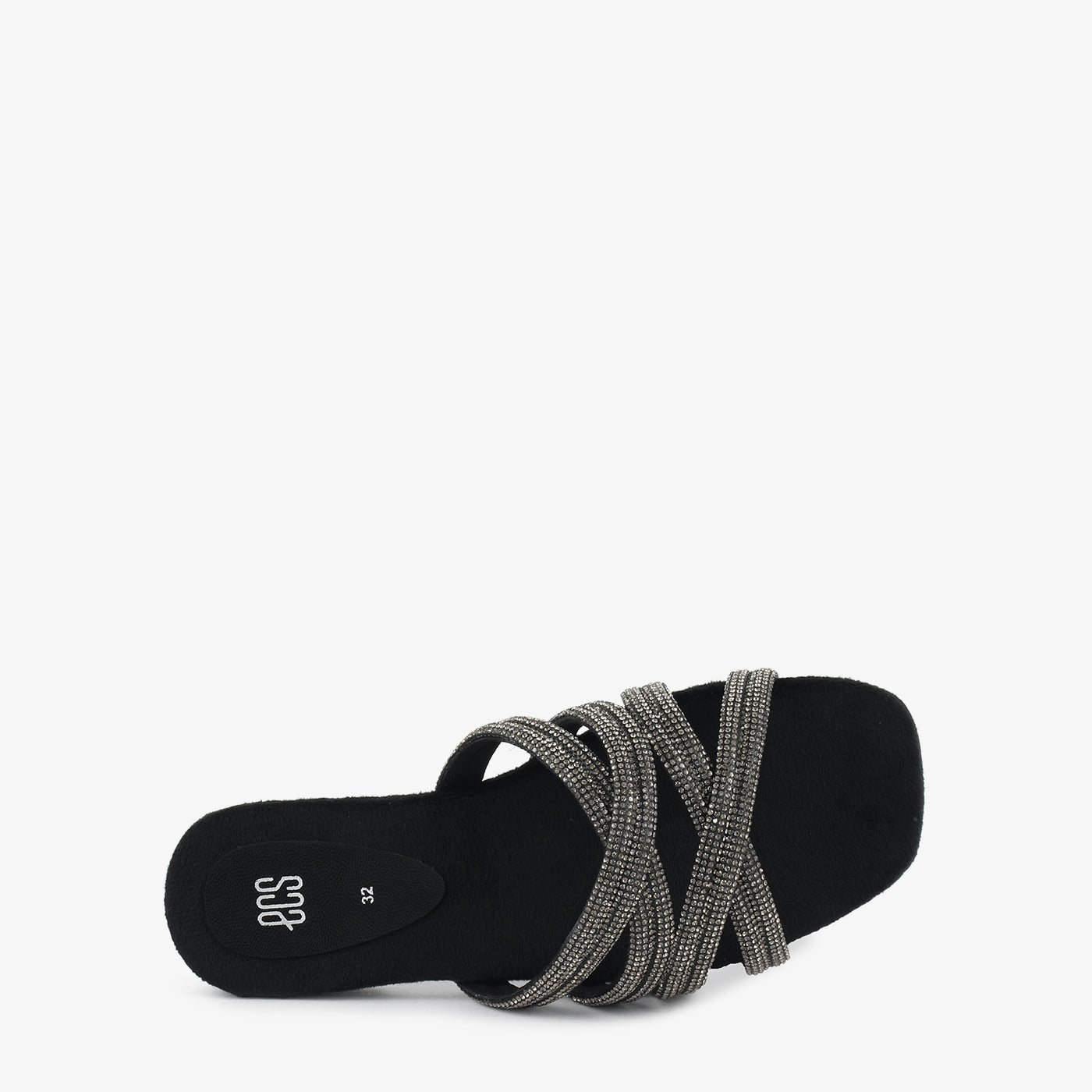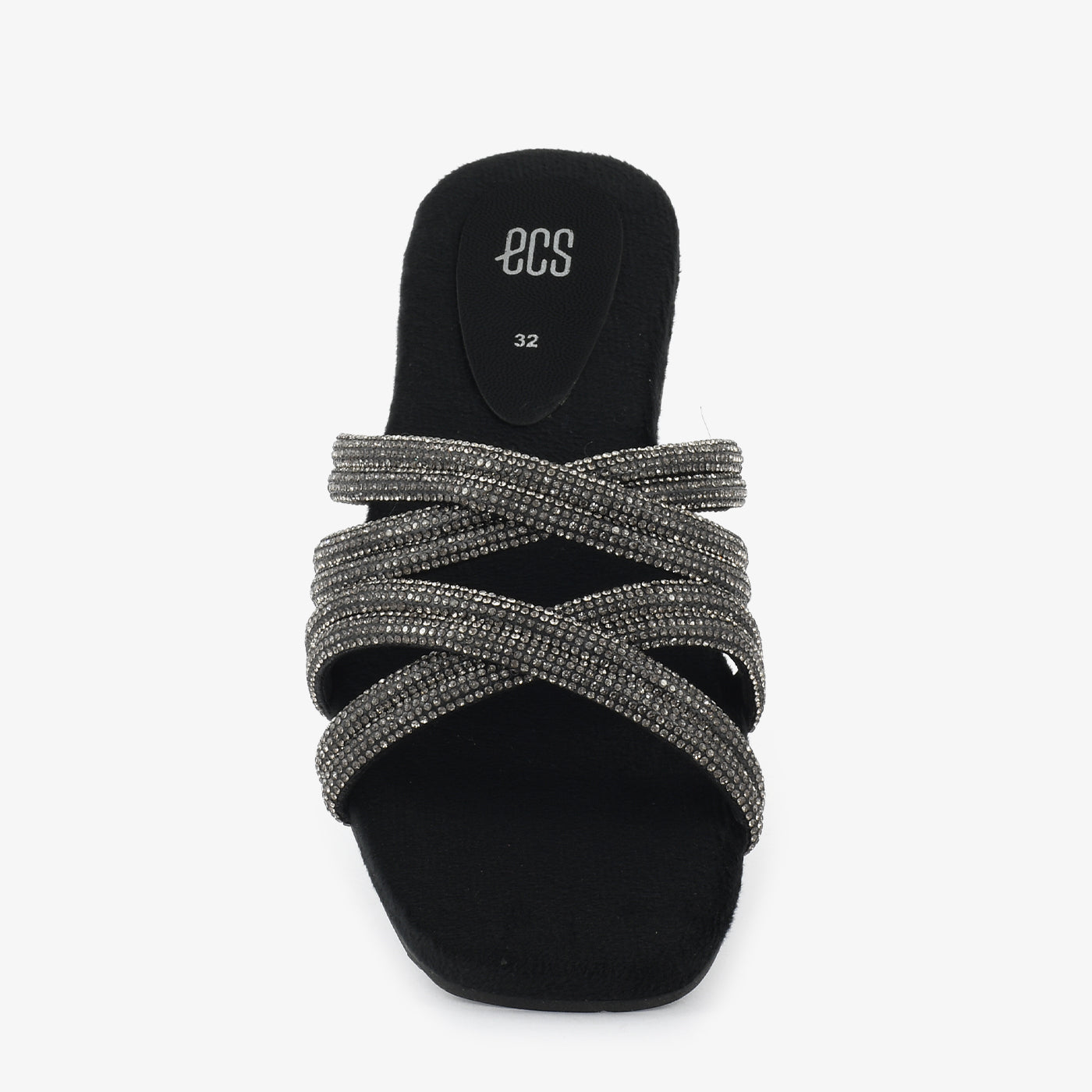 An elegant slip-on crafted with multiple beaded straps for shimmer and stability. Lightweight yet eye-catching.