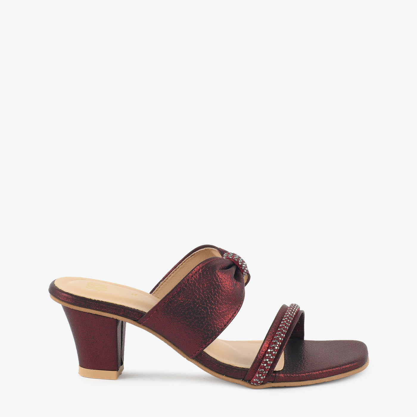 This elegant heel is designed with a graceful elevated sole that adds a refined lift while maintaining stability. The open-toe design enhances comfort and gives a polished appearance. A structured upper provides a secure fit, while delicate embellishment on the straps adds a touch of sparkle. The cushioned insole supports ease of wear for longer occasions. The balanced heel height offers both elegance and confidence. Perfect for festive events and formal gatherings.