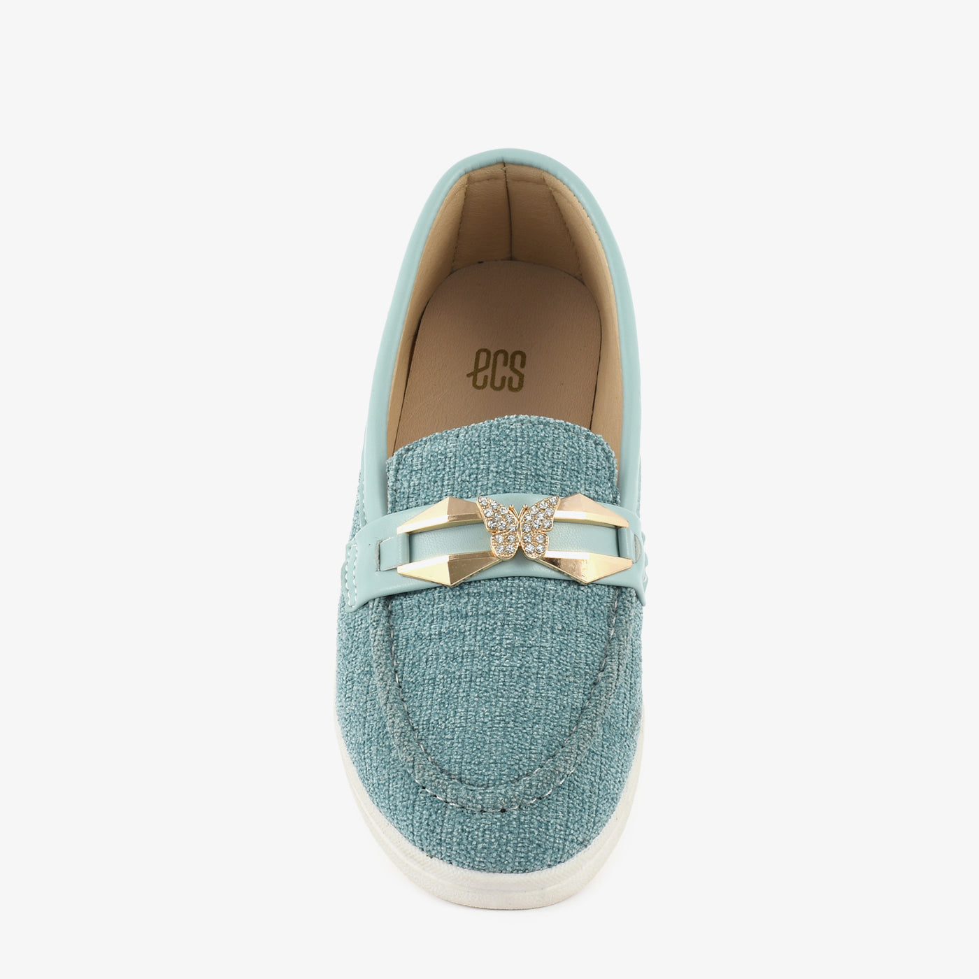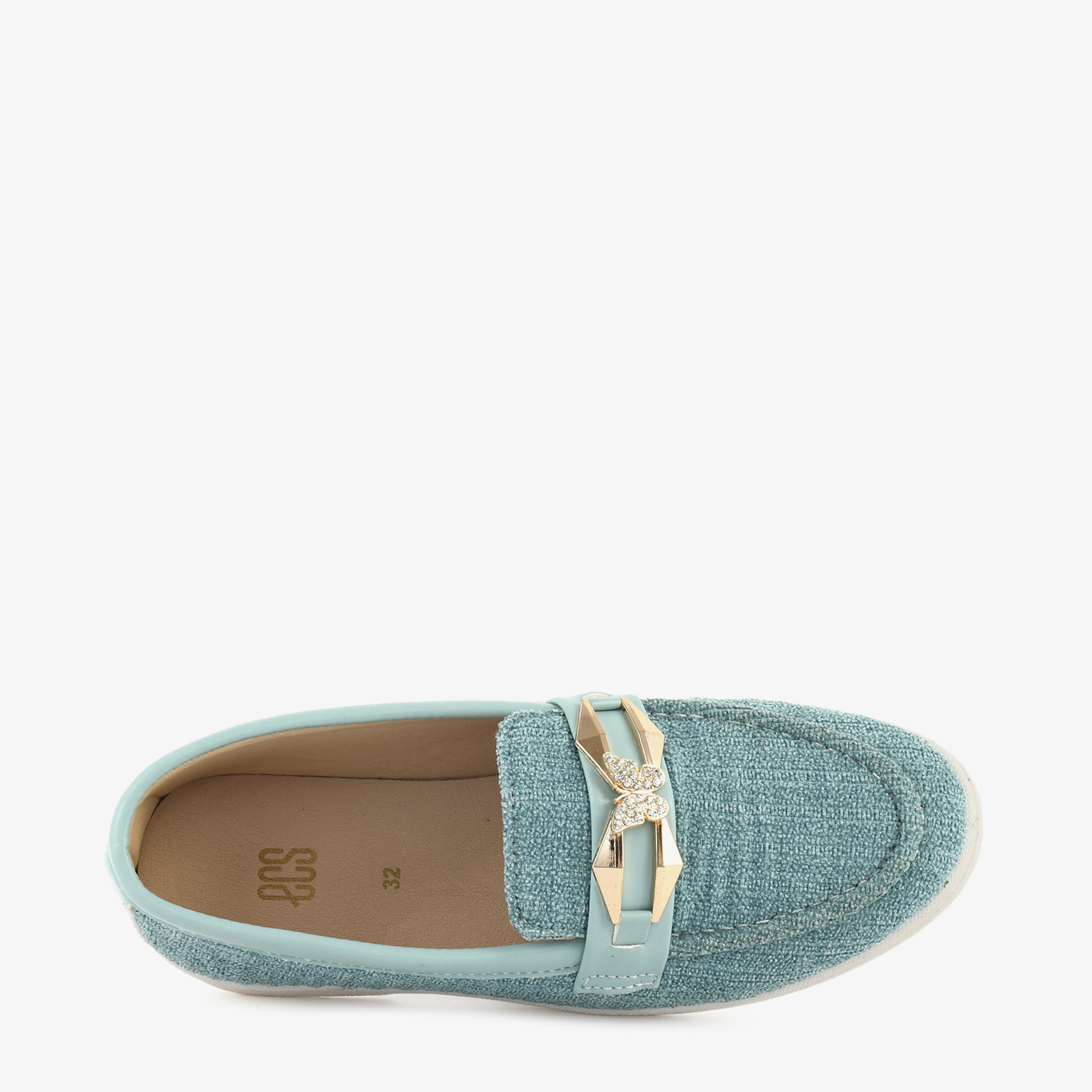 A stylish loafer crafted in textured fabric with glossy edging and a charming embellished bow. Soft inside and secure outside, it’s ideal for school functions, gatherings, and playdates. Blends comfort with sparkle to match your child's cheerful vibe.