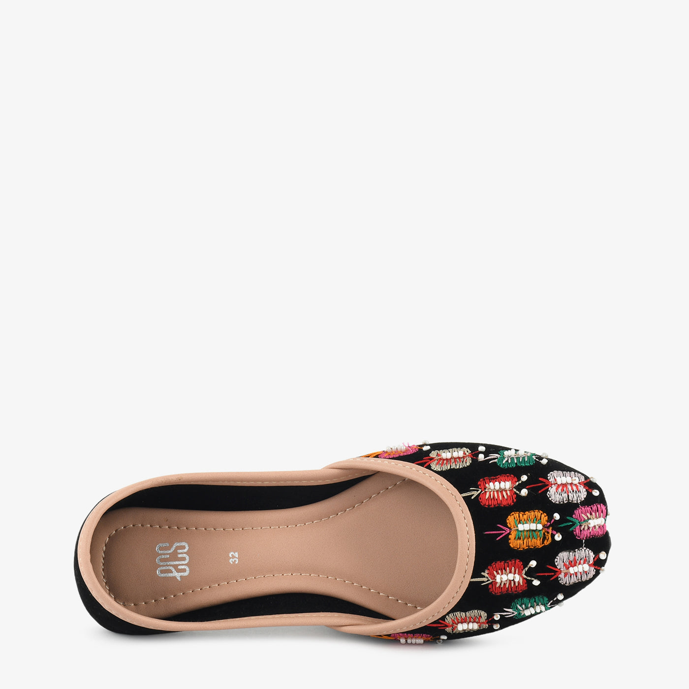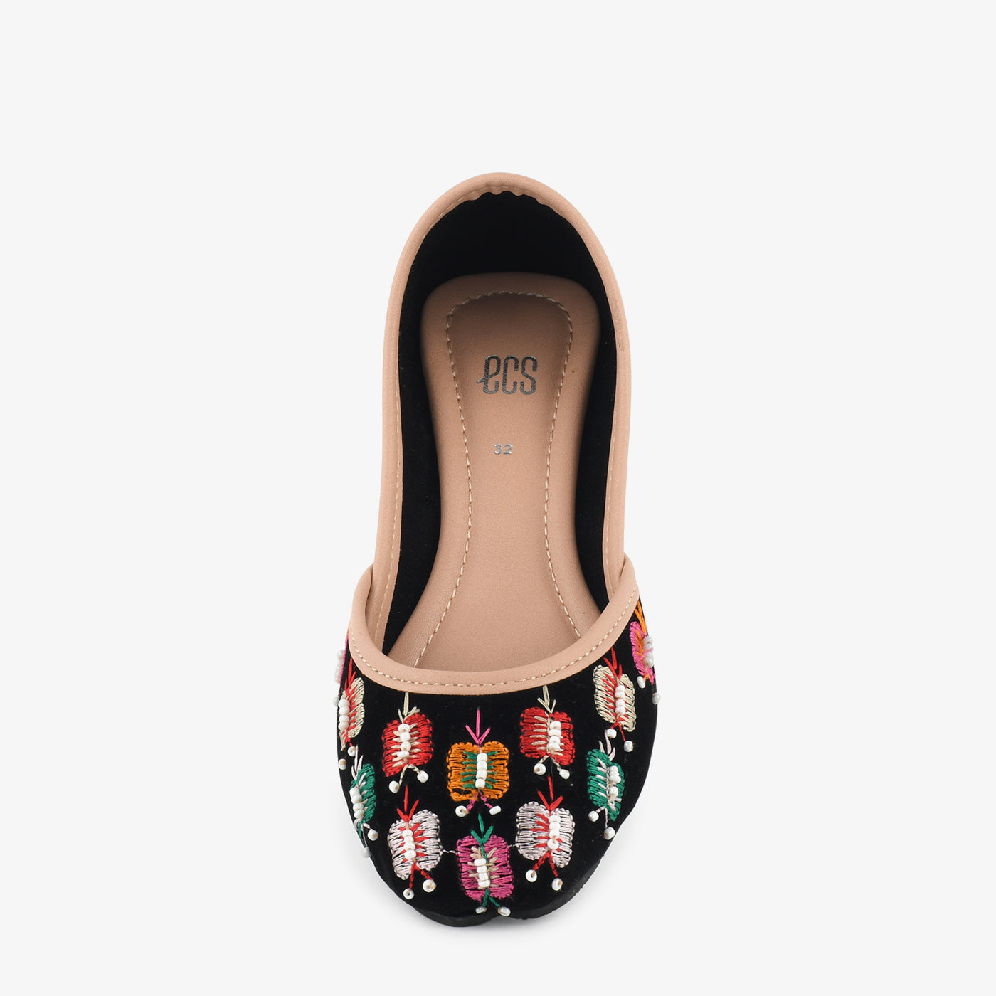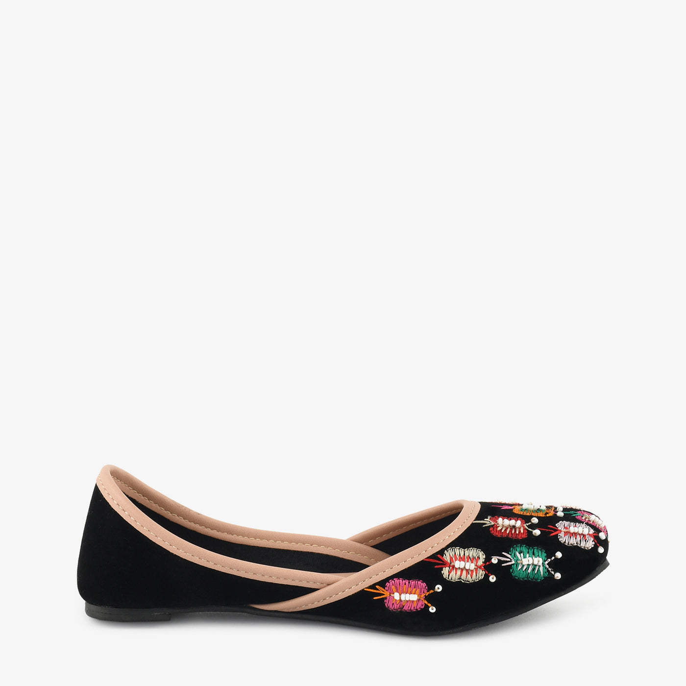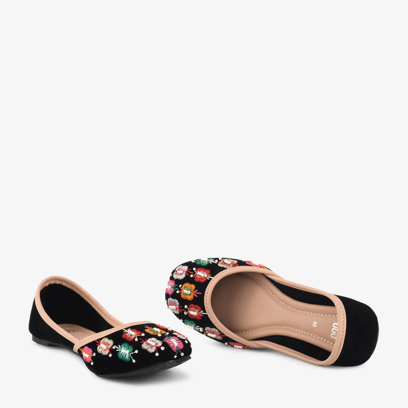 - Design: Embroidered floral detailing with rounded toe