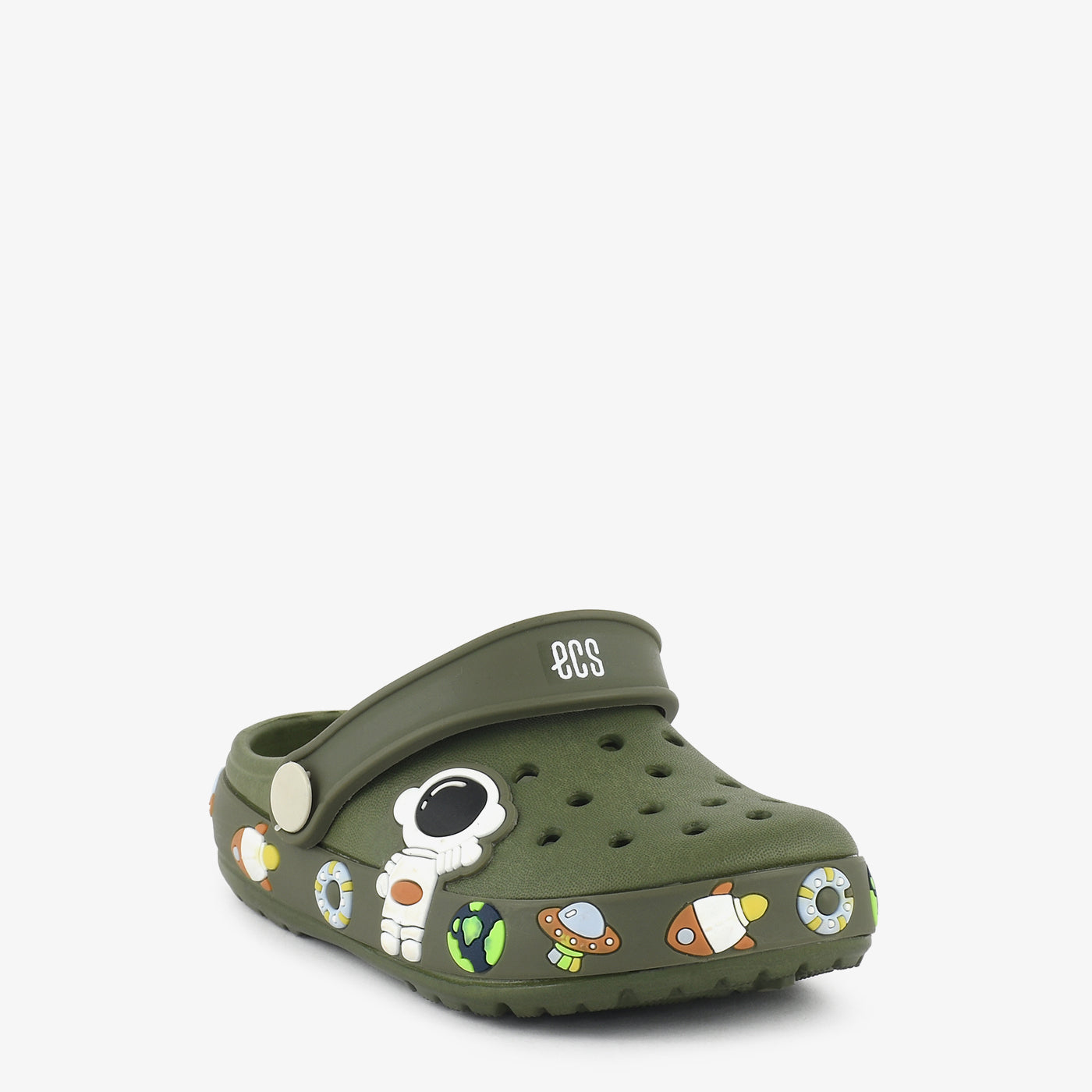 A fun and comfy clog designed for little adventurers. Featuring playful space-themed charms and breathable perforations, this pair keeps tiny feet fresh and happy all day. The cushioned sole and supportive back strap offer secure, easy wearing — perfect for active kids with big imaginations.