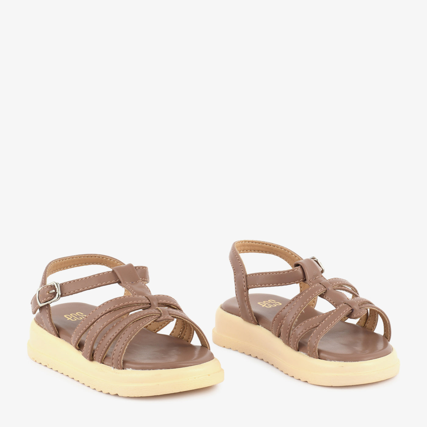 • Design: Kids open-toe sandal with woven knot vamp straps, ankle strap and chunky EVA sole