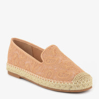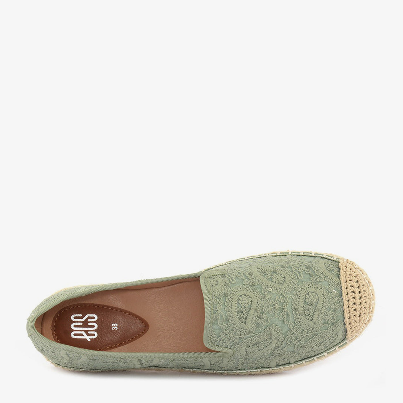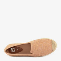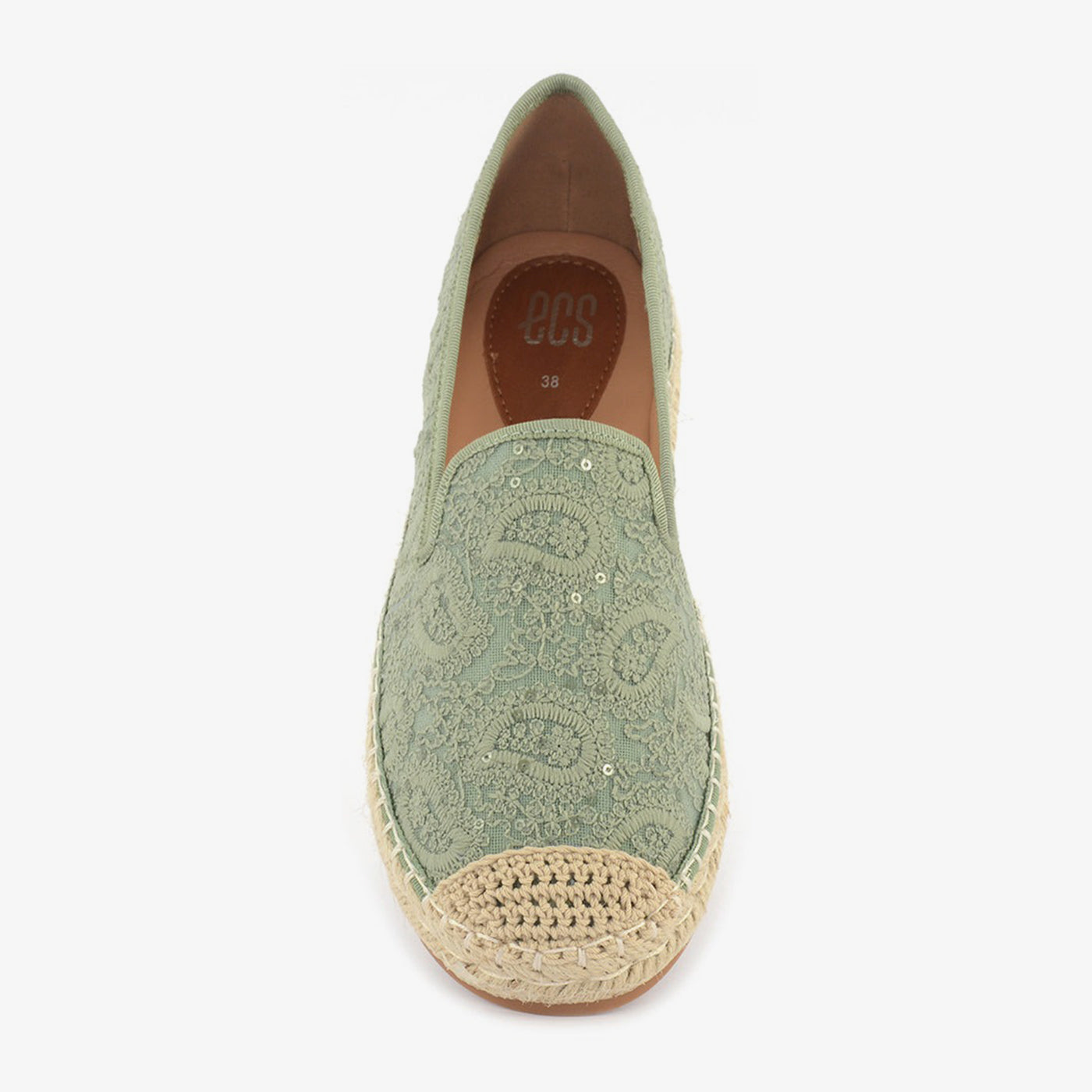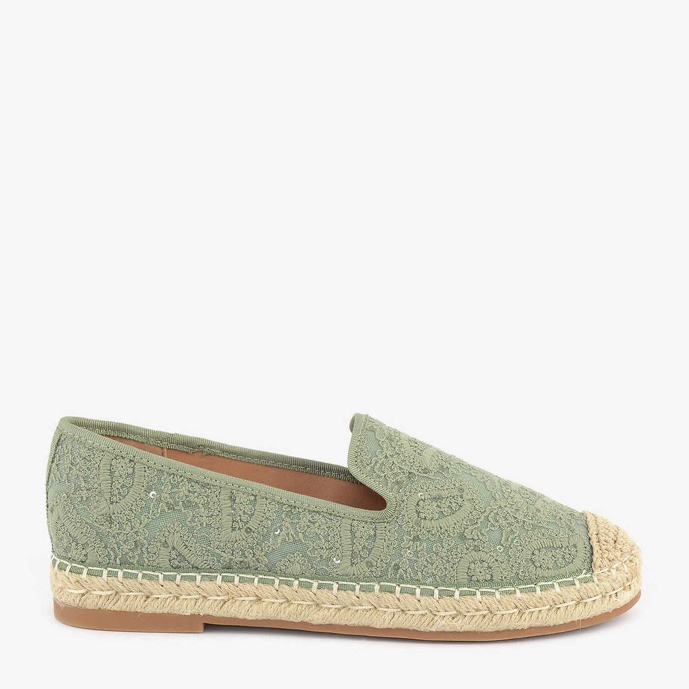 A slip-on pump with a rounded toe and a traditional espadrille sole. The upper is covered in a delicate lace pattern. A light and airy option for a midday in Lahore.