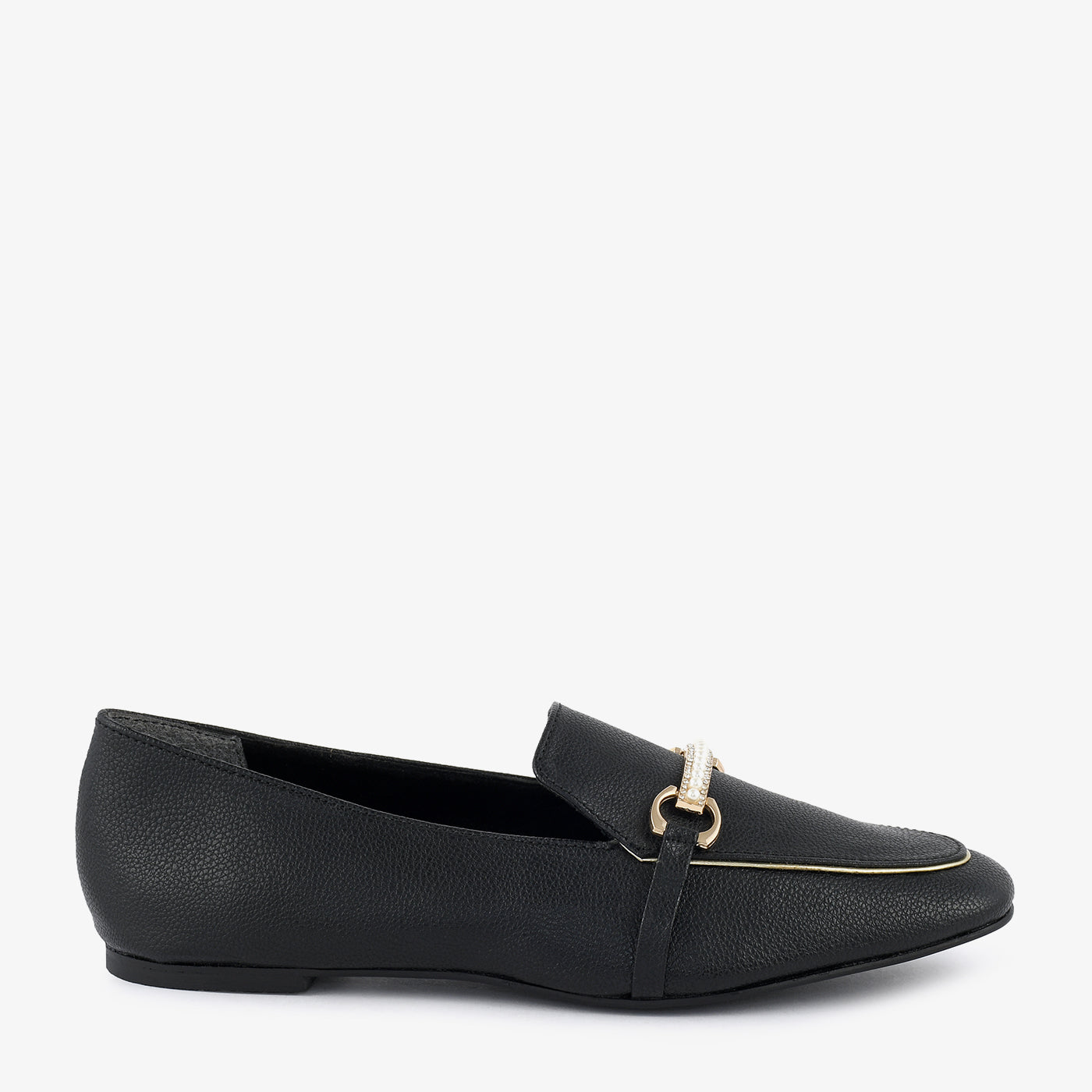 This elegant loafer combines a refined silhouette with a lustrous pearl buckle detail. Its smooth exterior and padded interior promise both sophistication and comfort. Ideal for office wear or evening...