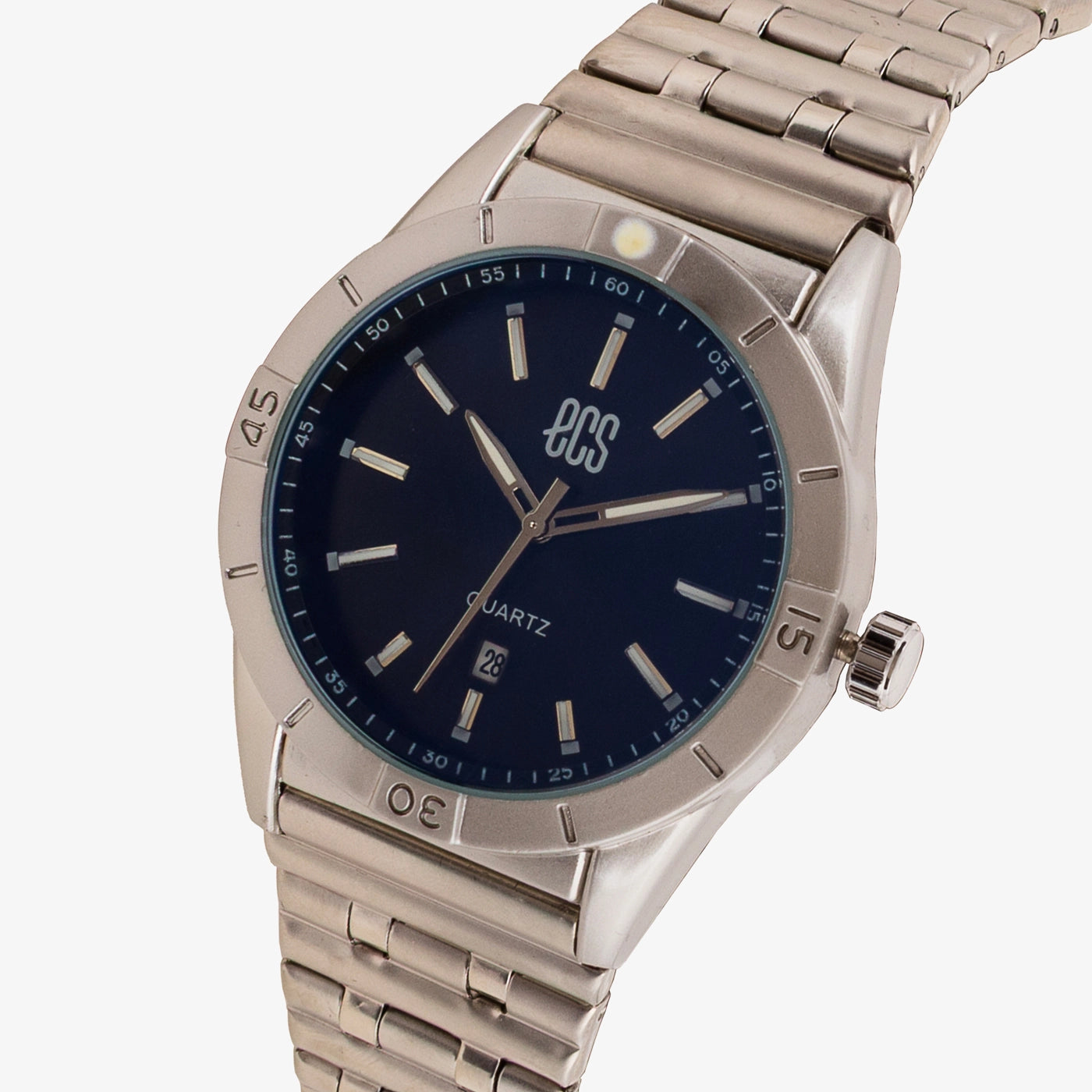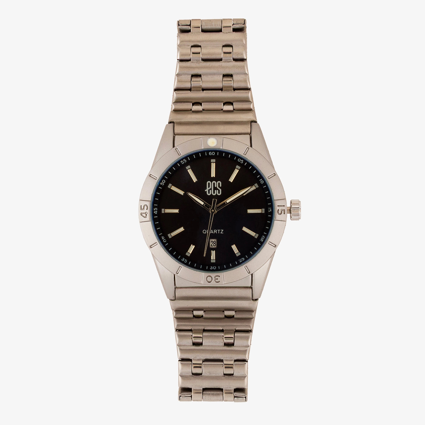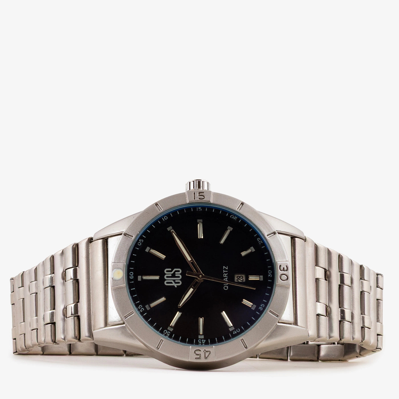 - Design: Round dial with sleek markers and date window