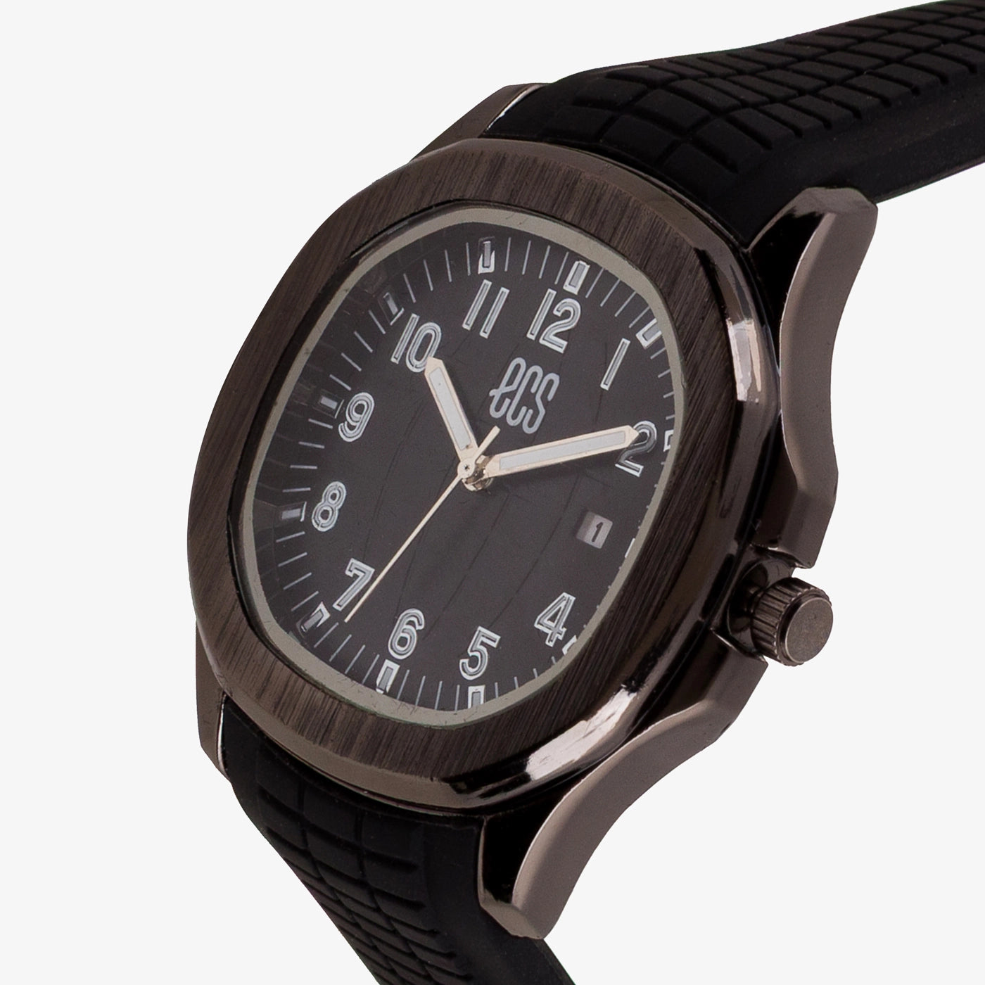 This stylish men’s wristwatch is crafted for everyday strength and modern appeal. The bold round dial features clear numeric markers and a convenient date display, ensuring easy time reading at a glance. A textured strap offers a secure and comfortable fit, while the sturdy case adds durability for daily use. Powered by a precise quartz movement, this watch is a reliable companion for both casual routines and active days.