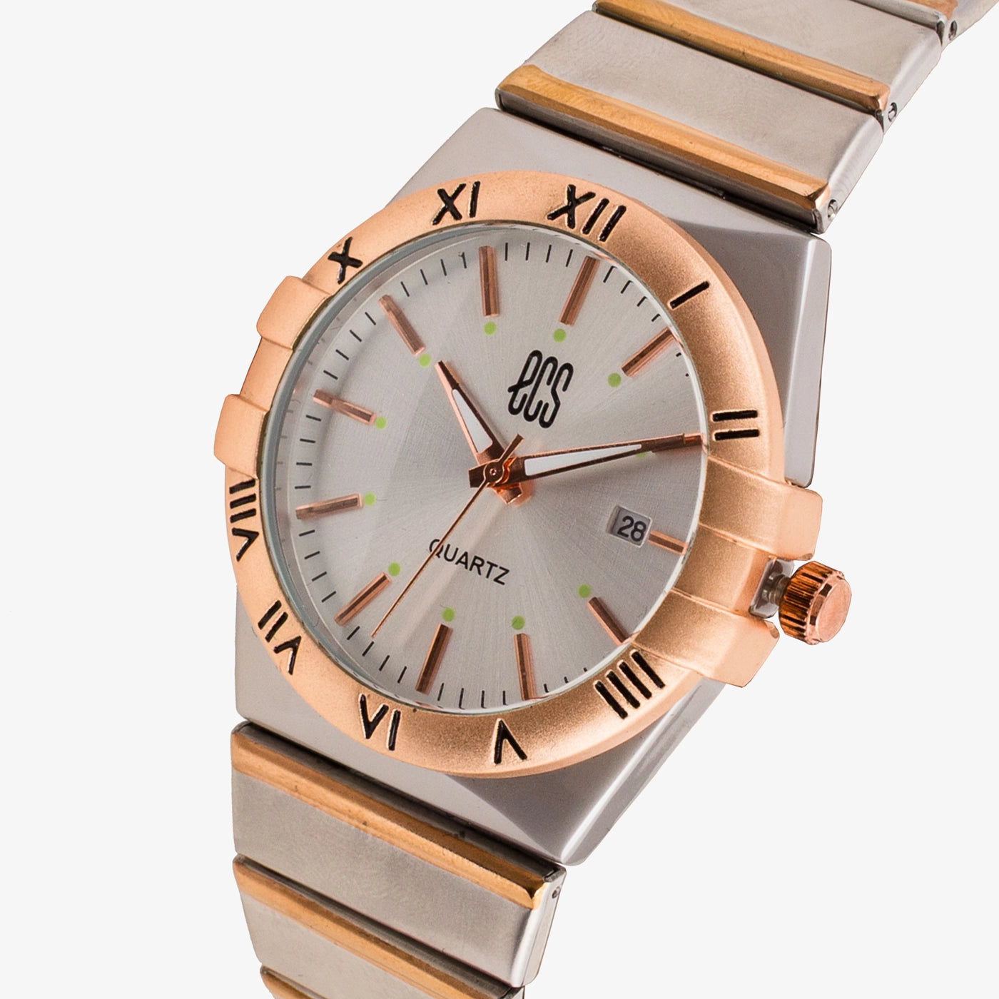 This refined men’s wristwatch is designed to deliver a perfect balance of functionality and everyday sophistication. The clean round dial features clear hour markers with subtle luminous points, allowing easy time reading in different lighting conditions. A built-in date window adds practical convenience, while the sturdy linked strap ensures a secure and comfortable fit throughout the day. Powered by reliable quartz movement, this watch is ideal for regular wear with lasting performance.