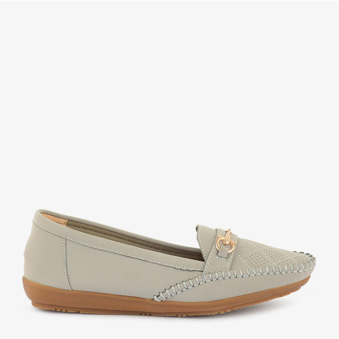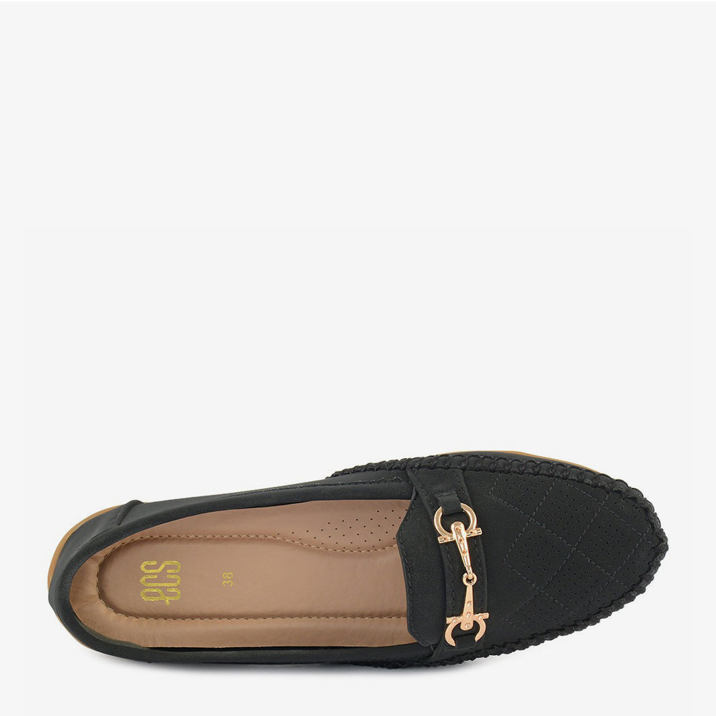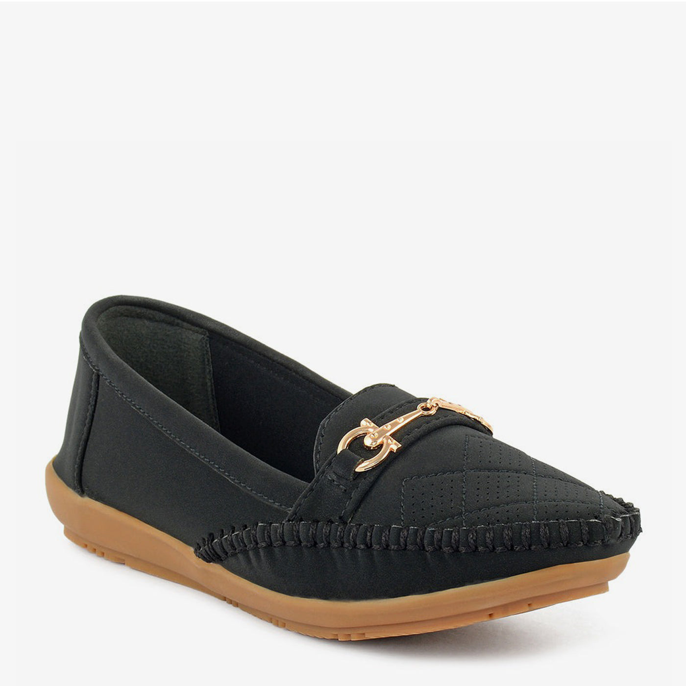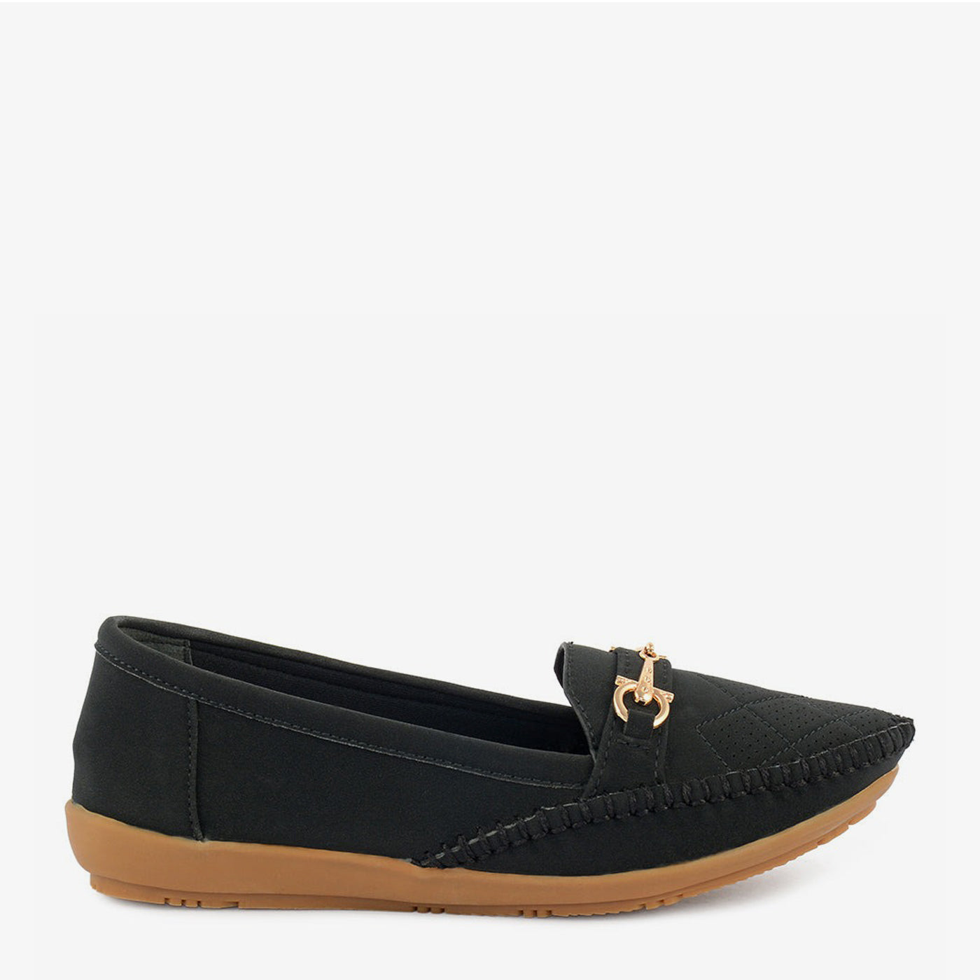 Indulge in effortless chic with Sole Serenity's "Classic Charm" loafers. Crafted with a premium synthetic leather and adorned with a gold-toned buckle, these loafers exude sophistication. The slip-on style and comfortable sole make them perfect for everyday wear.