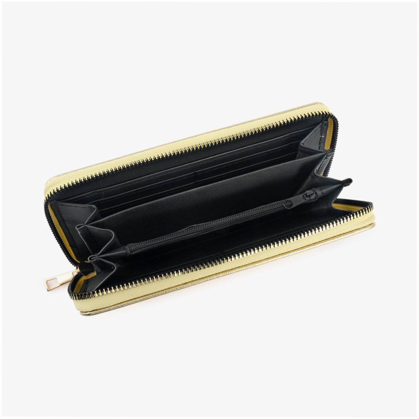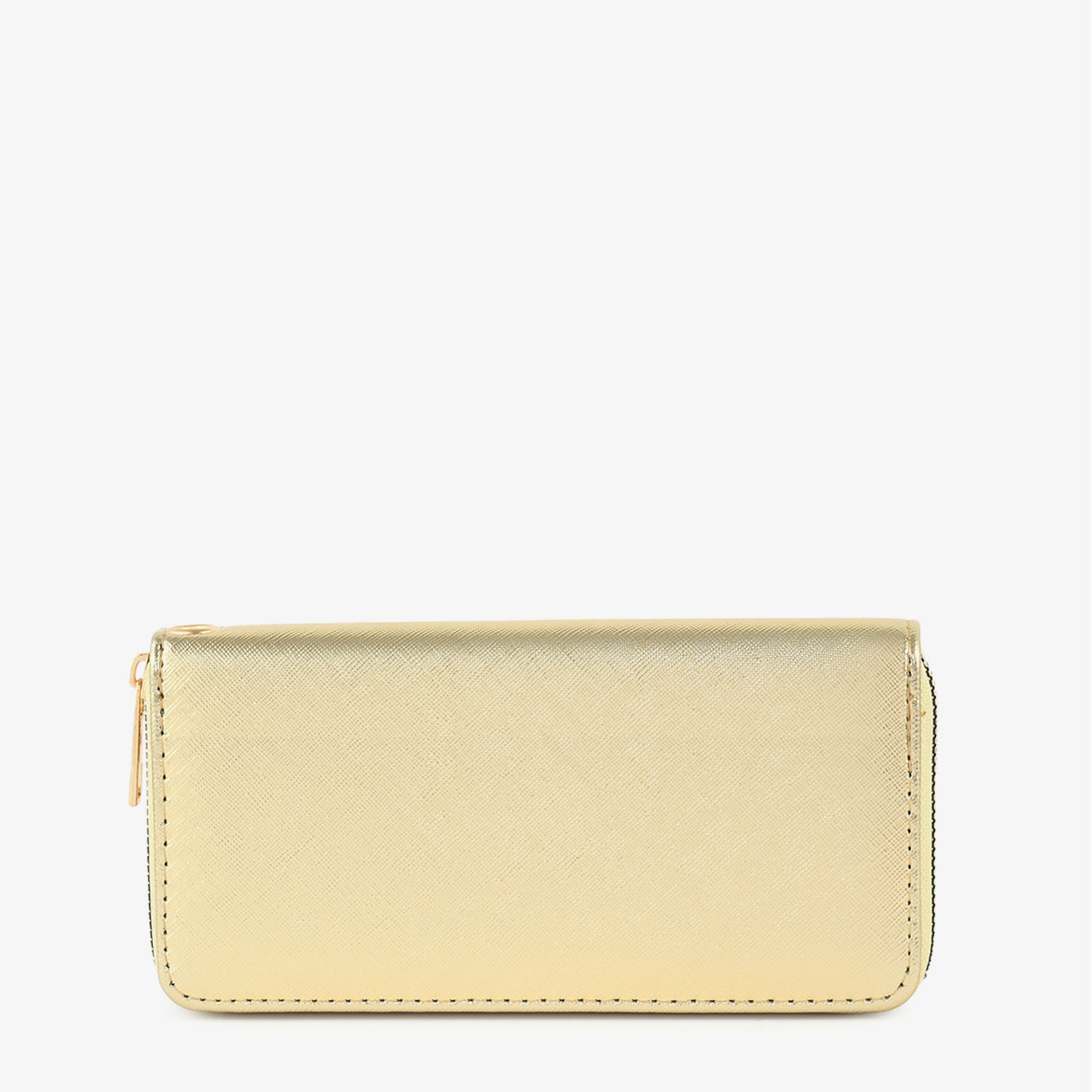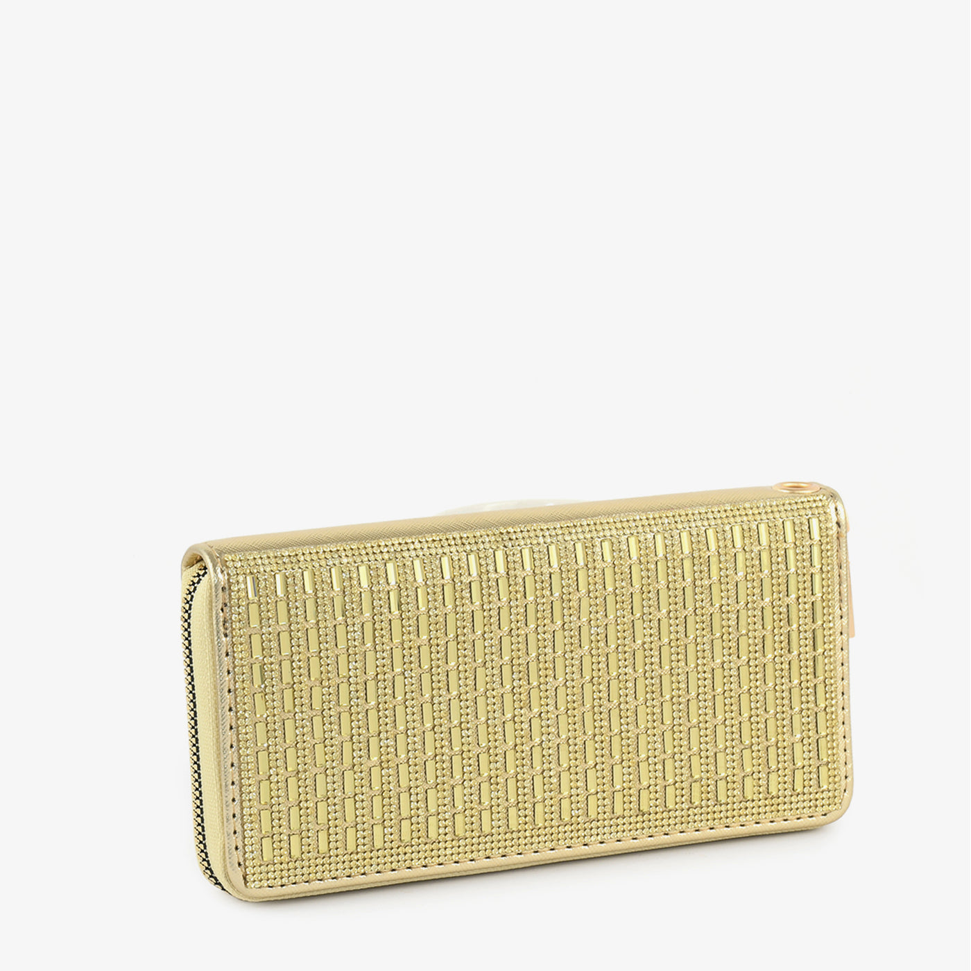 A statement wallet with a glittering surface for festive occasions. The wristlet strap adds practicality to the glamorous design.