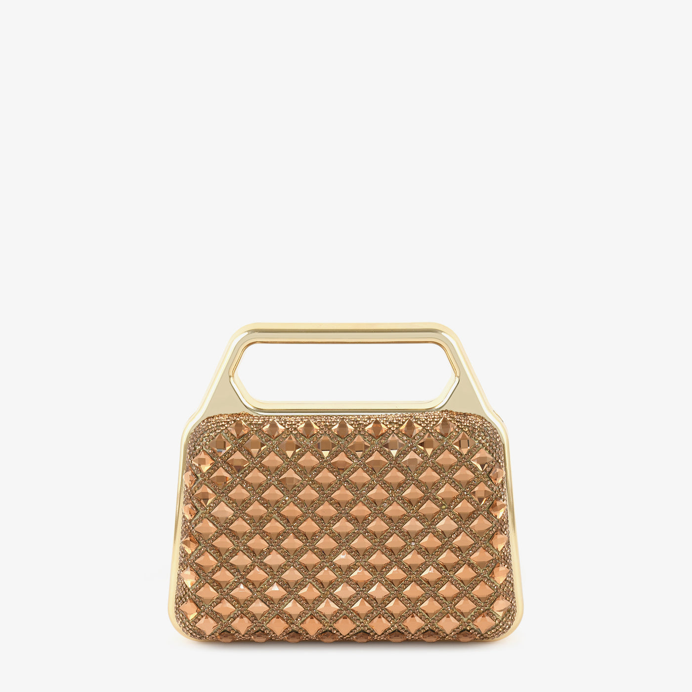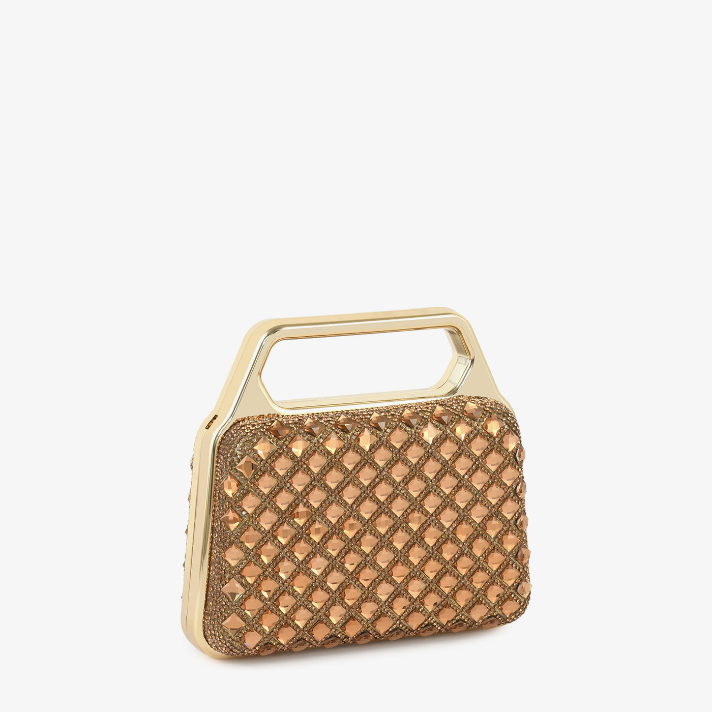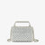 Evening clutch with reflective pattern and pearl embellishments throughout the design. The curved top handle offers a modern carrying option for formal occasions. Features a detachable chain strap that provides versatility for crossbody or shoulder wear. The secure closure protects essentials while maintaining a refined silhouette. Perfect for celebrations and gatherings that require a statement accessory. A versatile piece that elevates formal ensembles with sophisticated detailing.