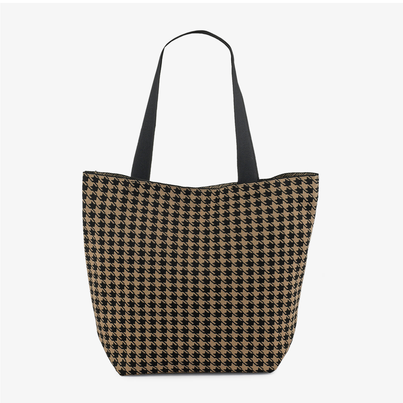 A classic tote with a timeless houndstooth pattern, balancing sophistication with everyday ease. Spacious and practical, it’s a wardrobe essential.