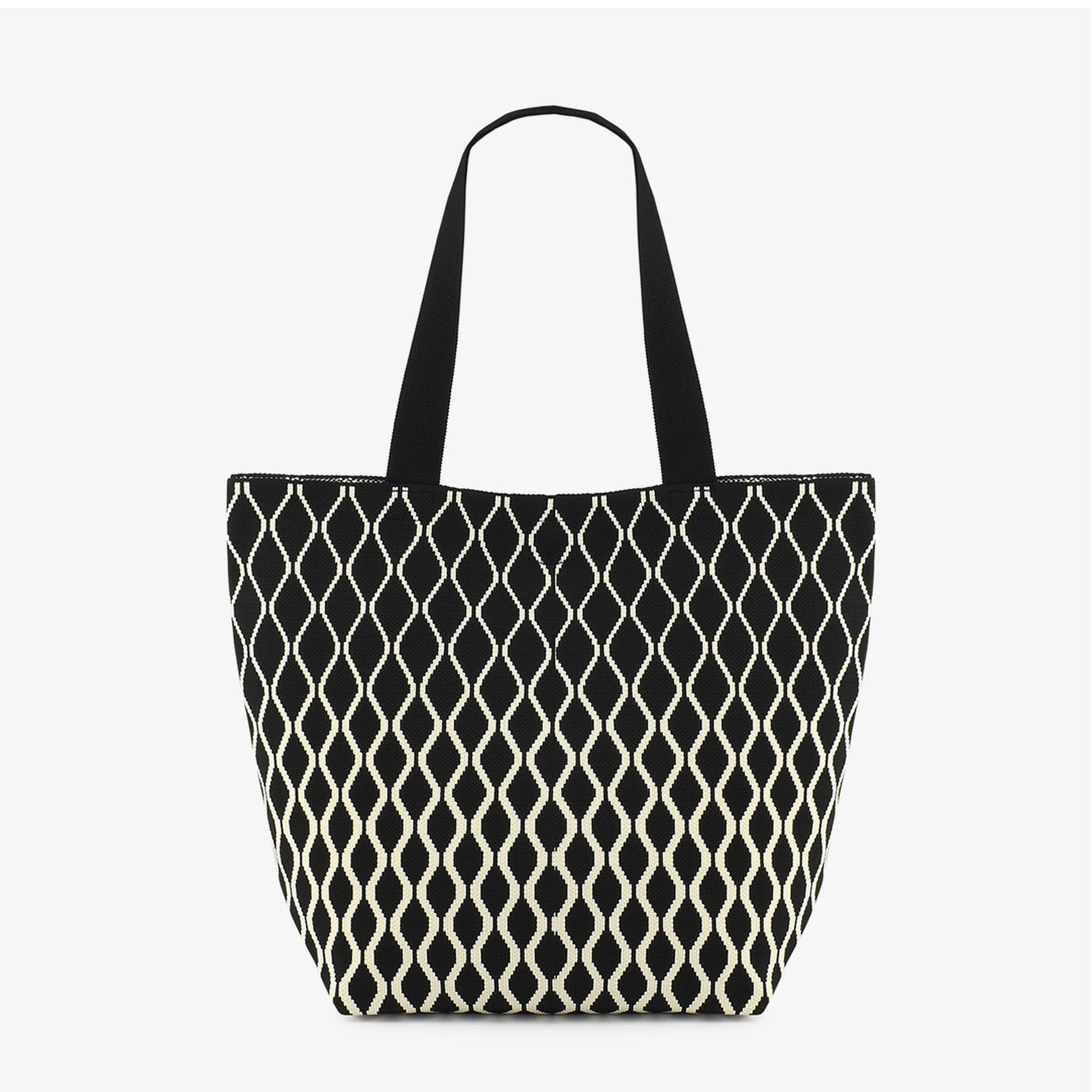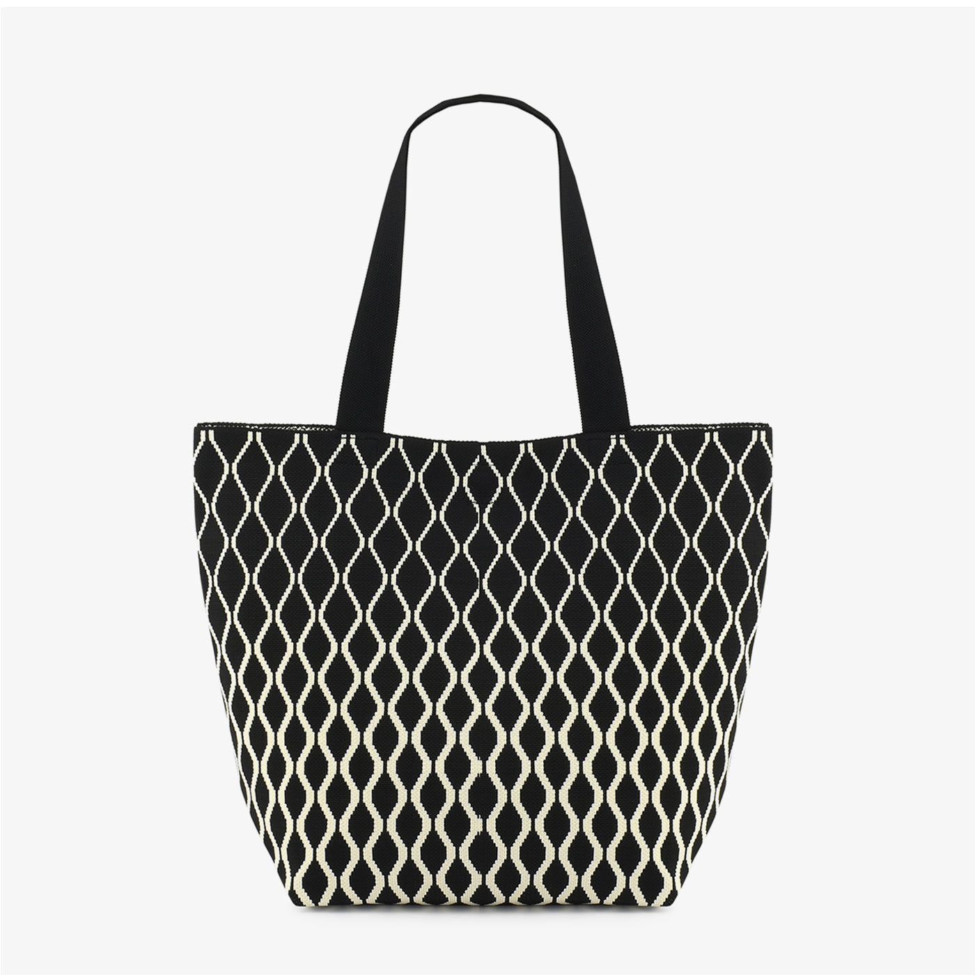 A sleek tote designed with a flowing wave-like pattern, giving it a modern yet elegant appeal. Lightweight and roomy, it’s perfect for all-day use.