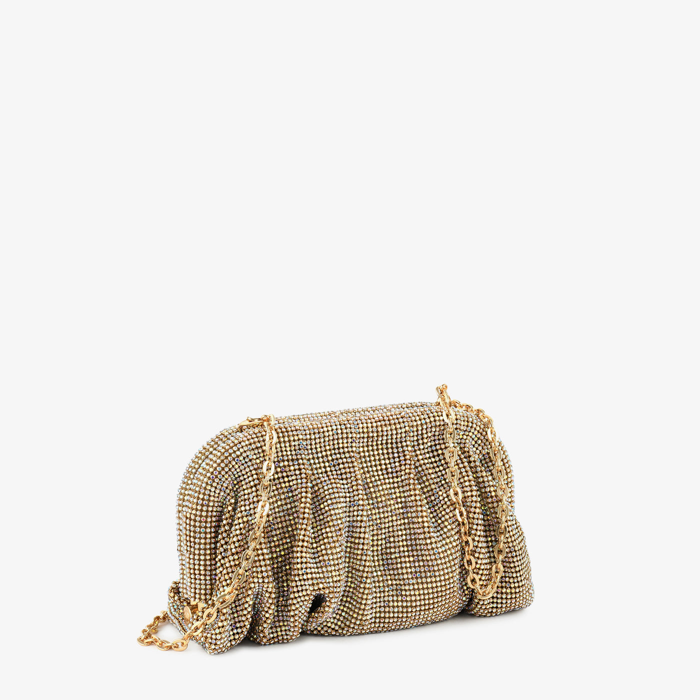 A beautifully gathered clutch that exudes understated glamour. The soft draping paired with a metallic chain strap offers both elegance and practicality, making it a must-have for any evening wardrobe.