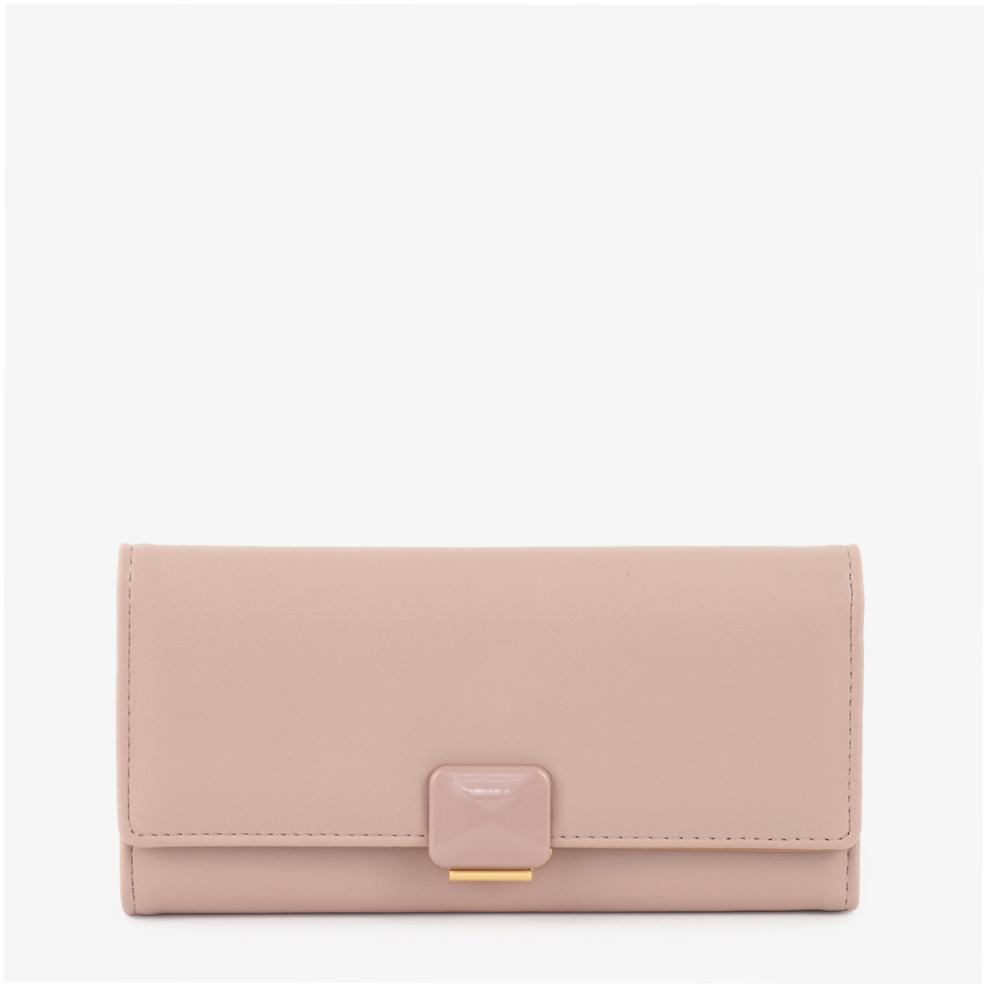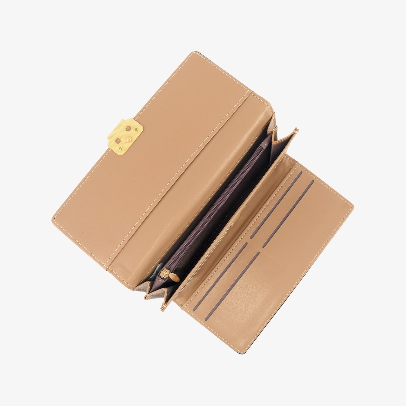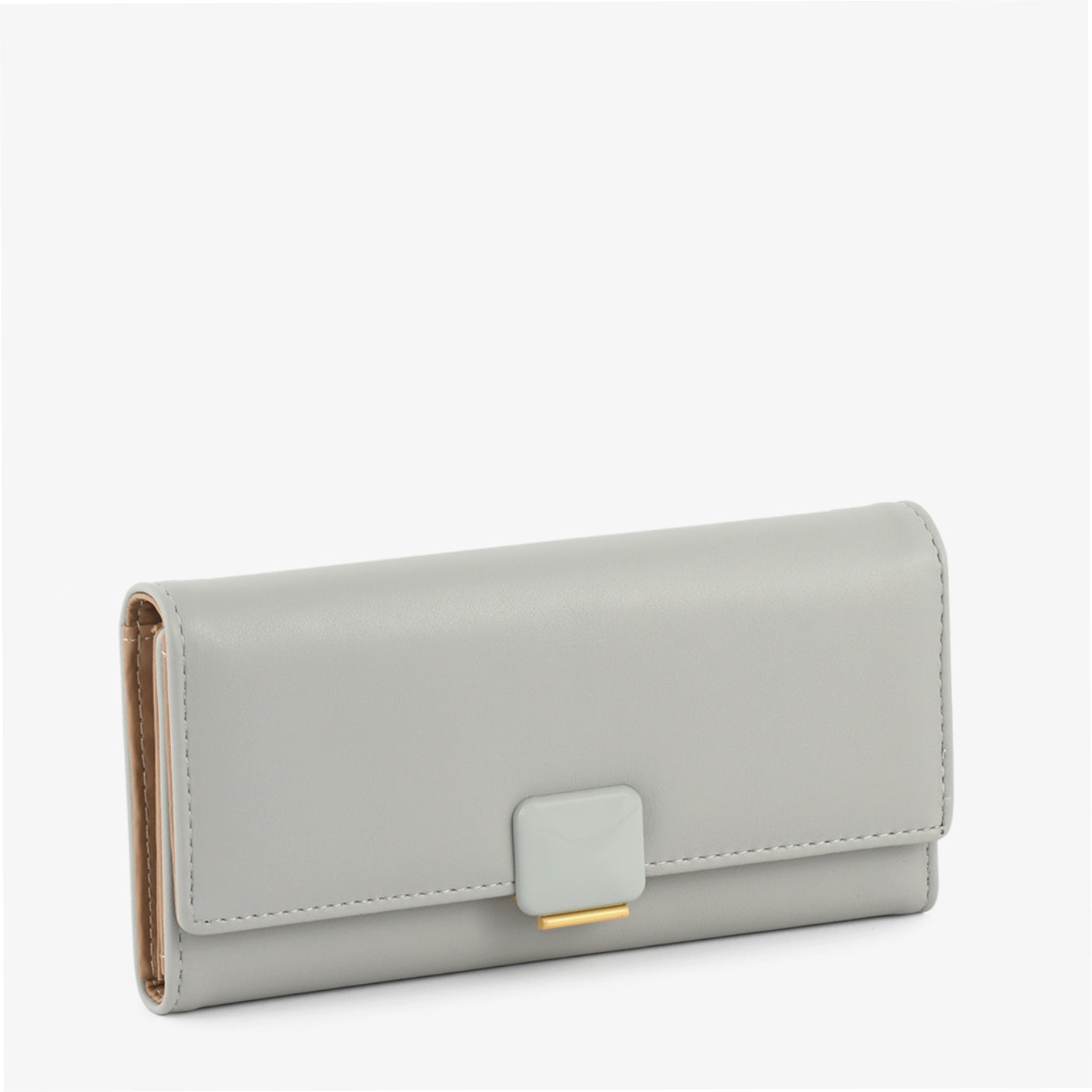 A refined wallet with a smooth exterior and square clasp closure. Designed for modern women who value simplicity and elegance.