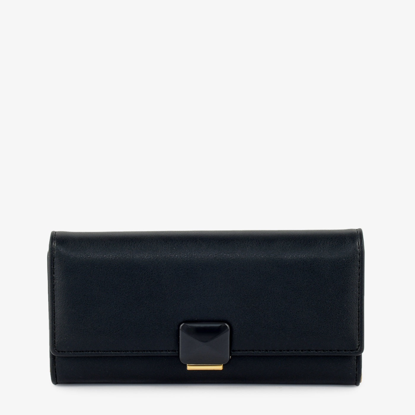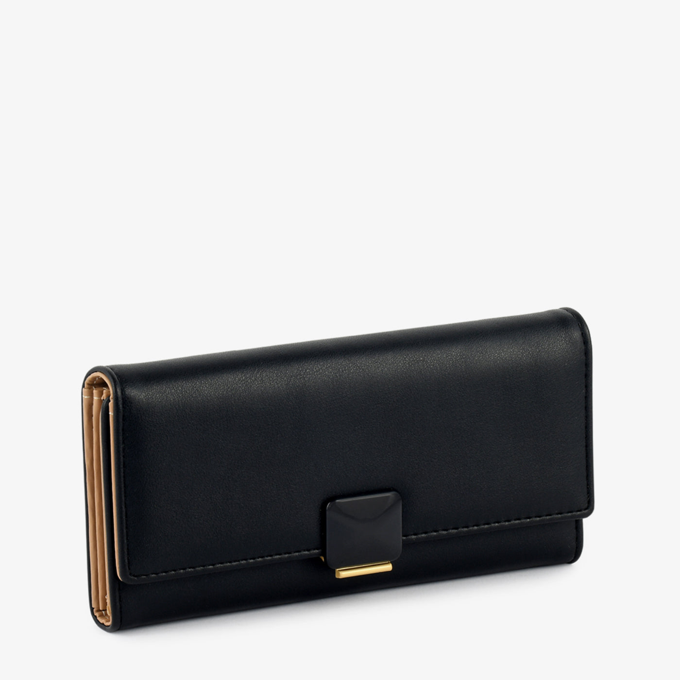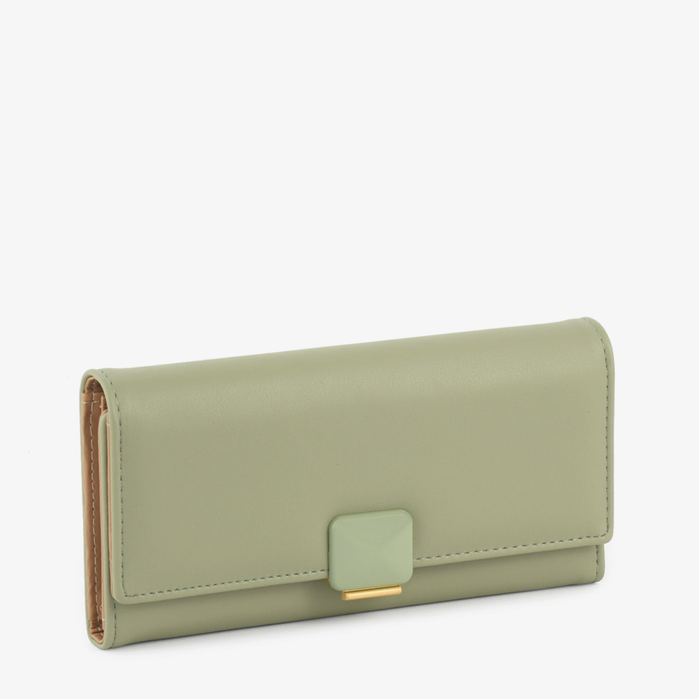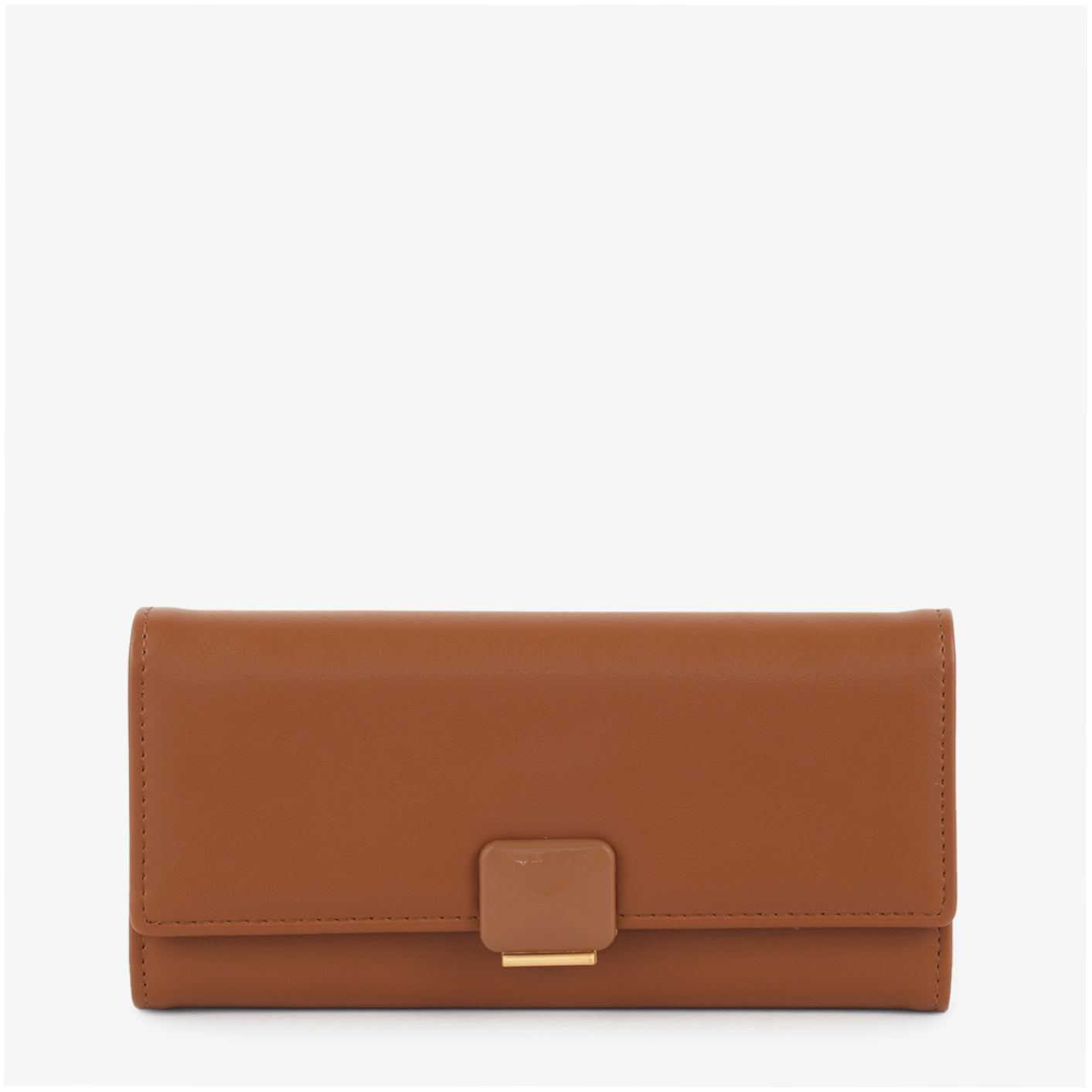 A refined wallet with a smooth exterior and square clasp closure. Designed for modern women who value simplicity and elegance.
