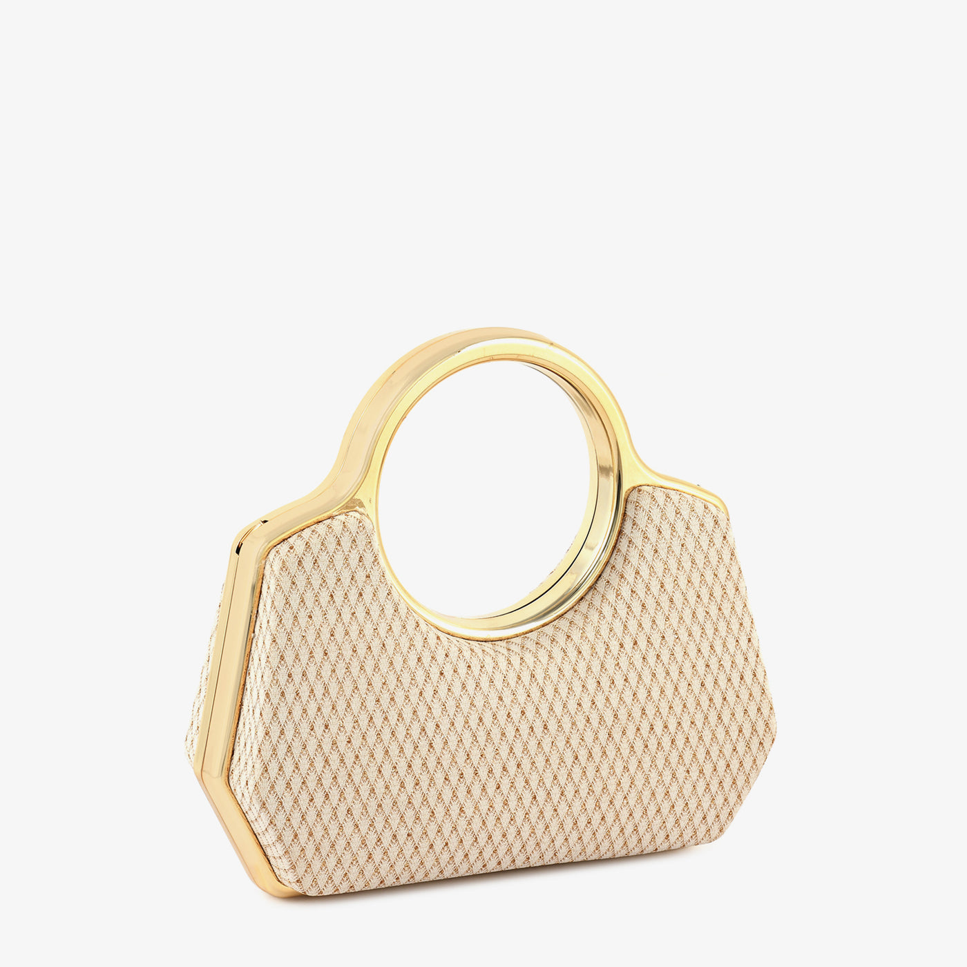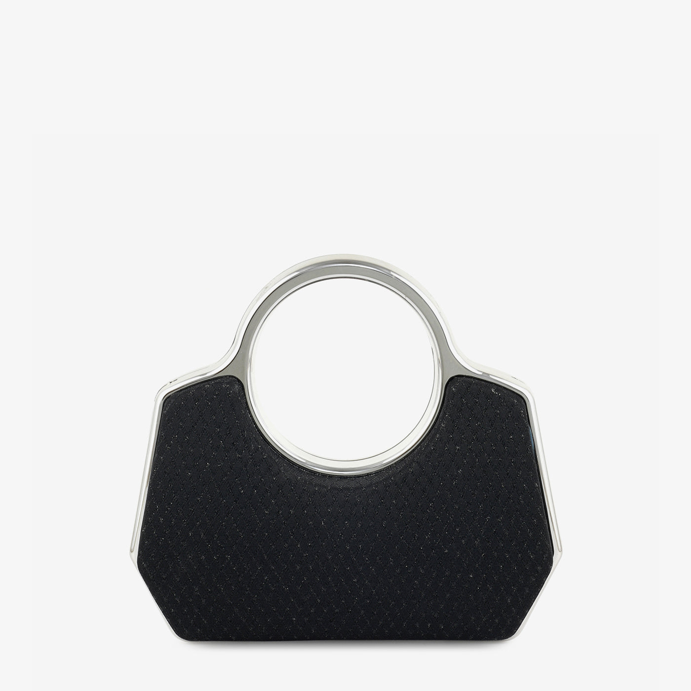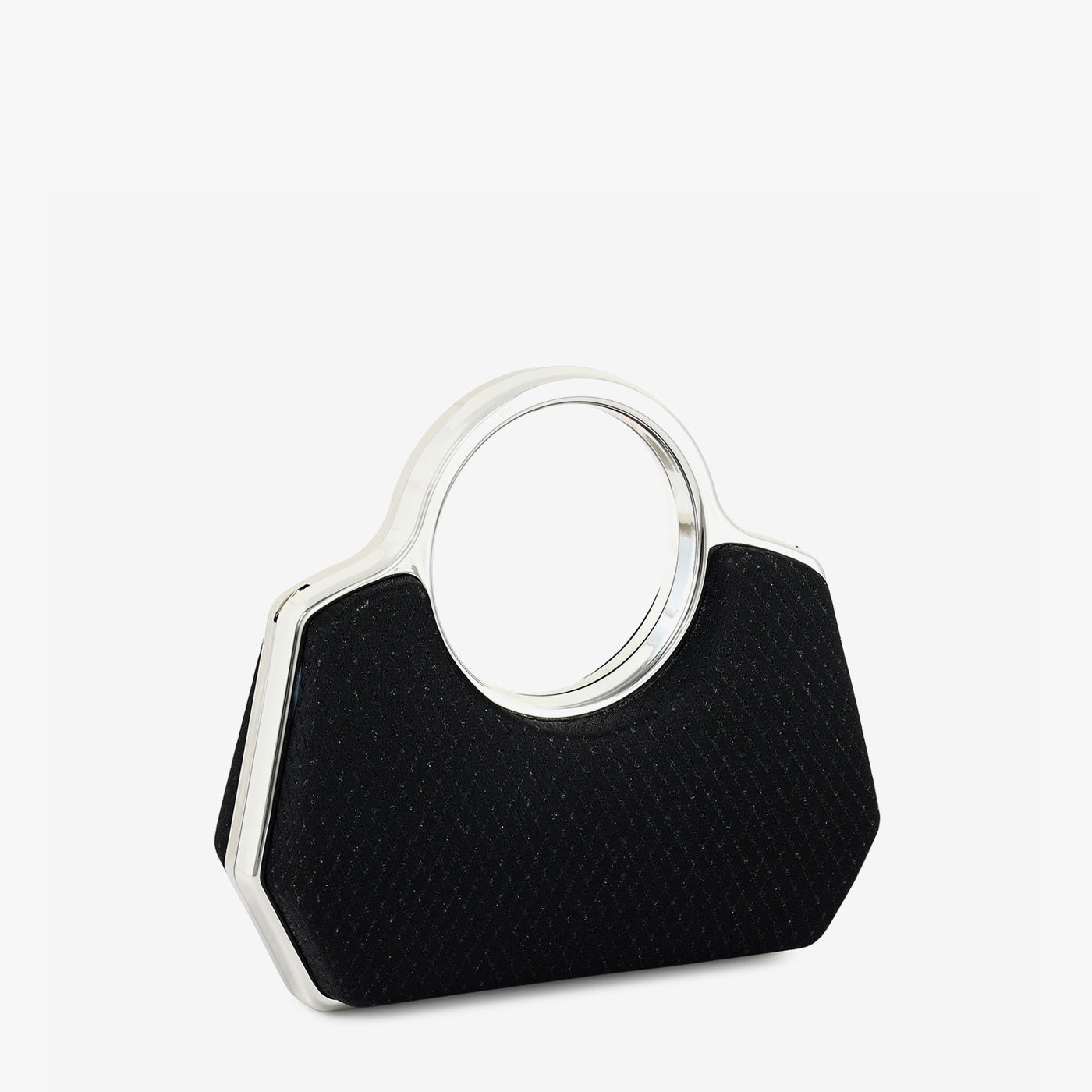 - Design: Structured clutch with metallic ring handle