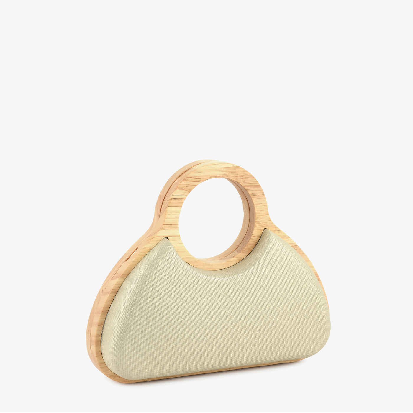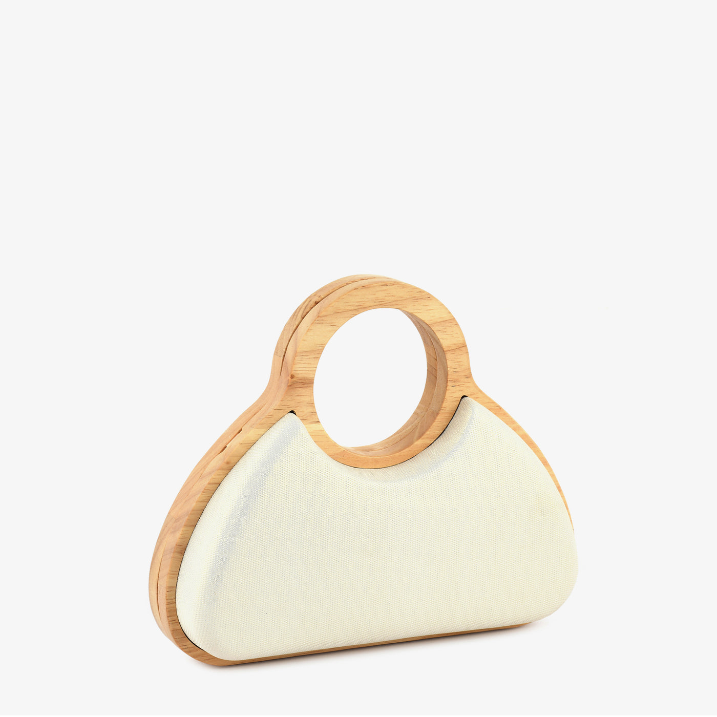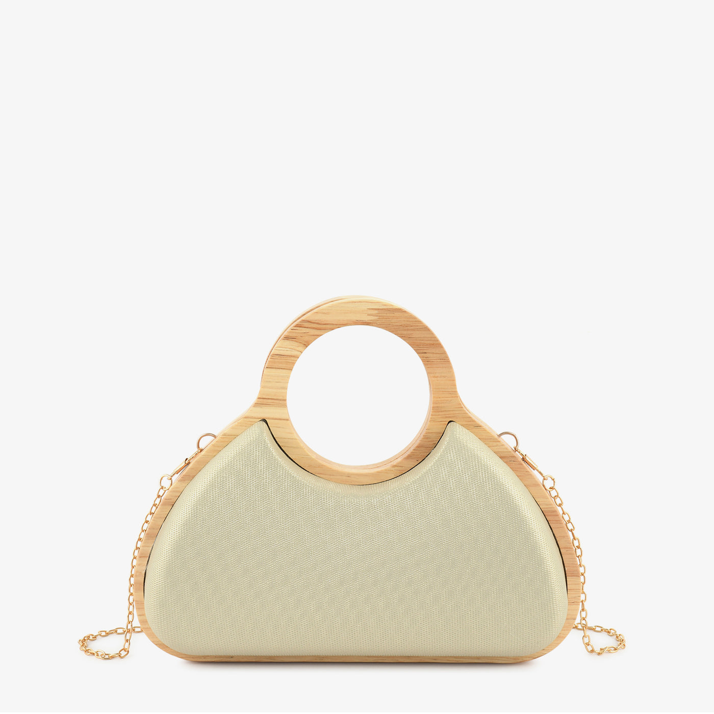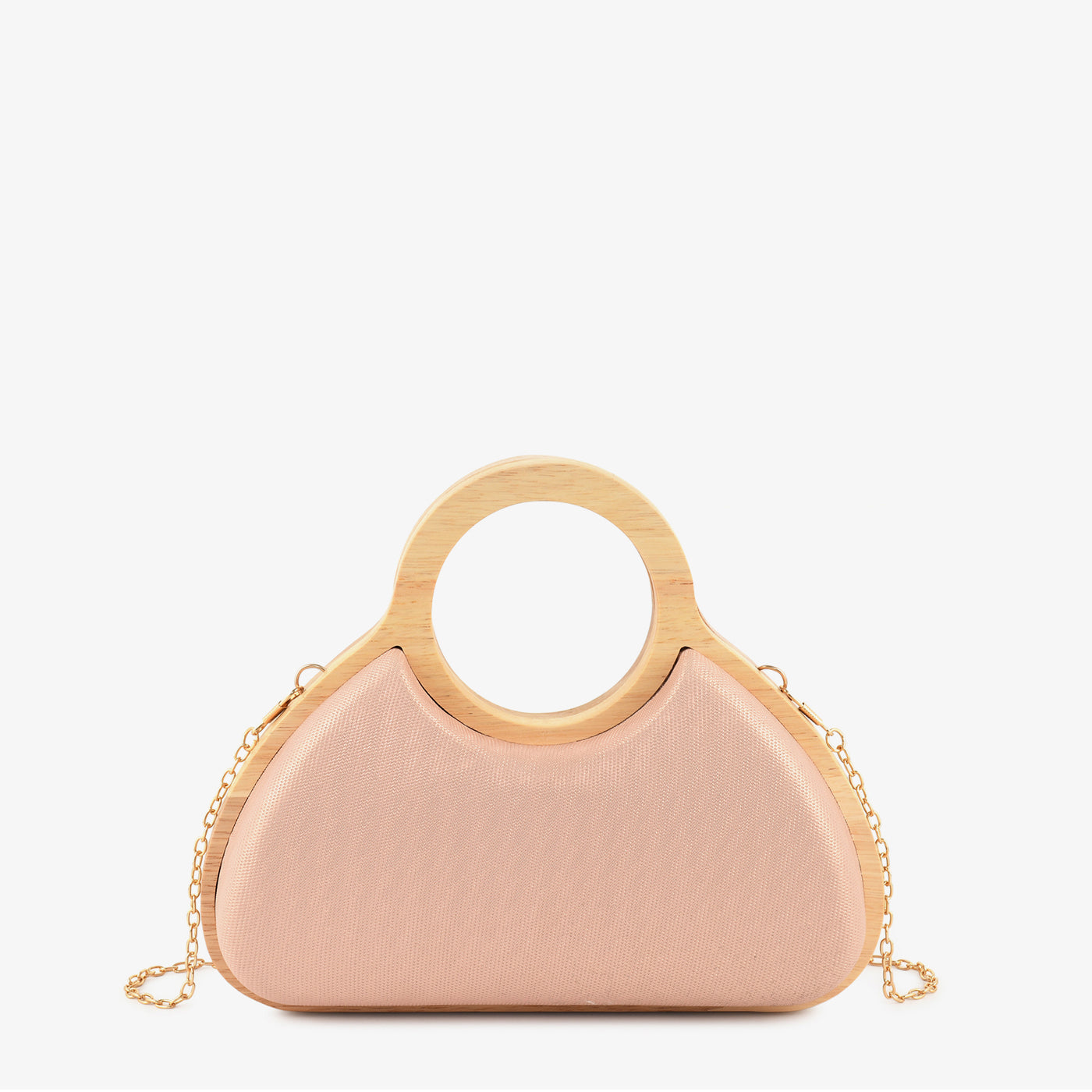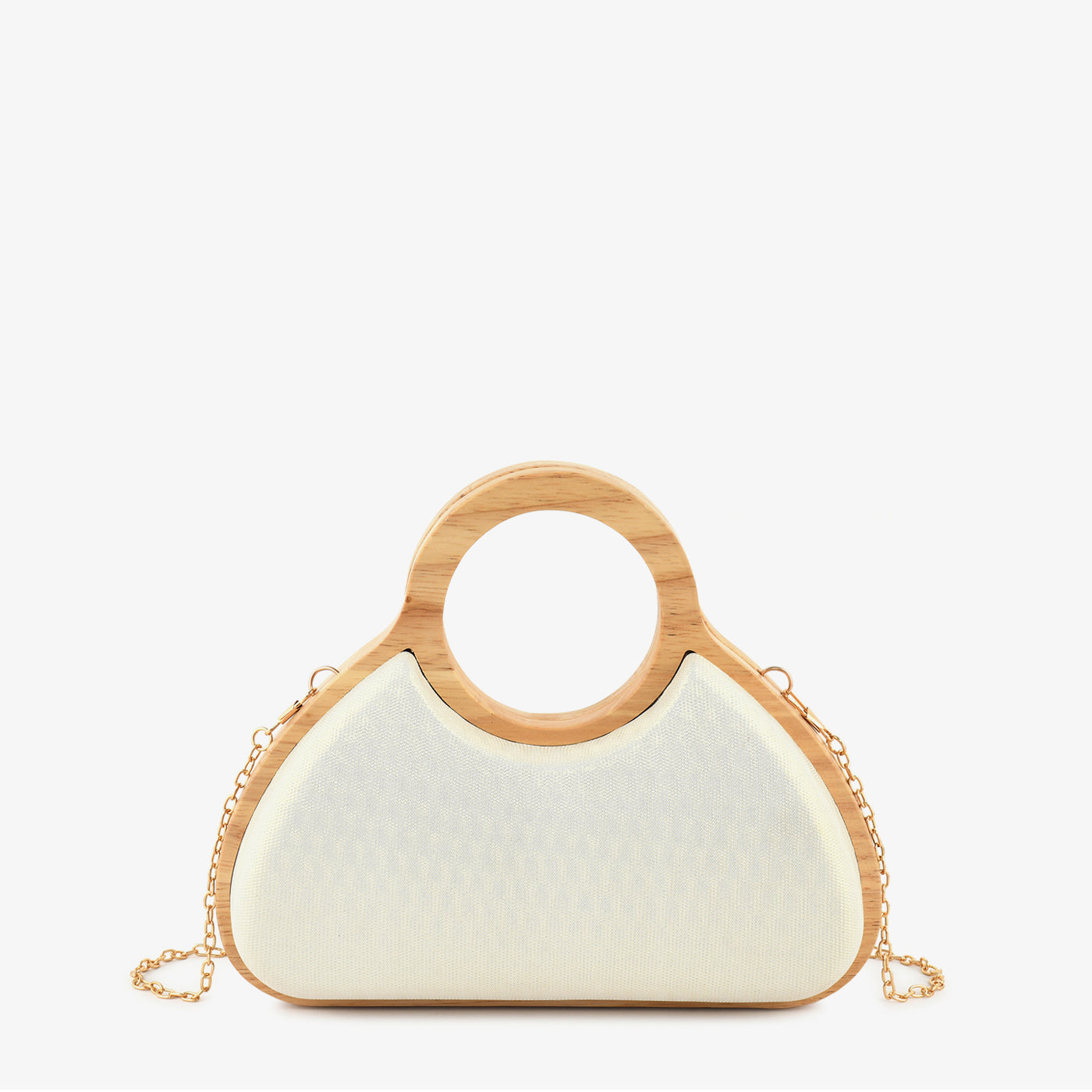 This stylish handheld bag features a graceful curved silhouette complemented by a smooth textured finish for a refined look. Designed with a unique circular handle, it offers both comfort and modern elegance. The compact yet spacious interior allows you to carry your essentials with ease and organization. A detachable chain strap provides versatile carrying options for added convenience. Crafted with attention to detail, it ensures durability and long-lasting appeal. Lightweight and easy to carry, it is perfect for special occasions and casual outings alike.